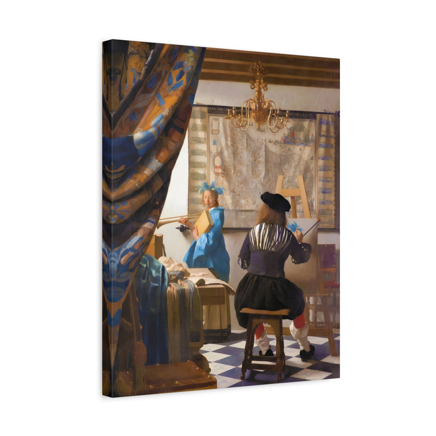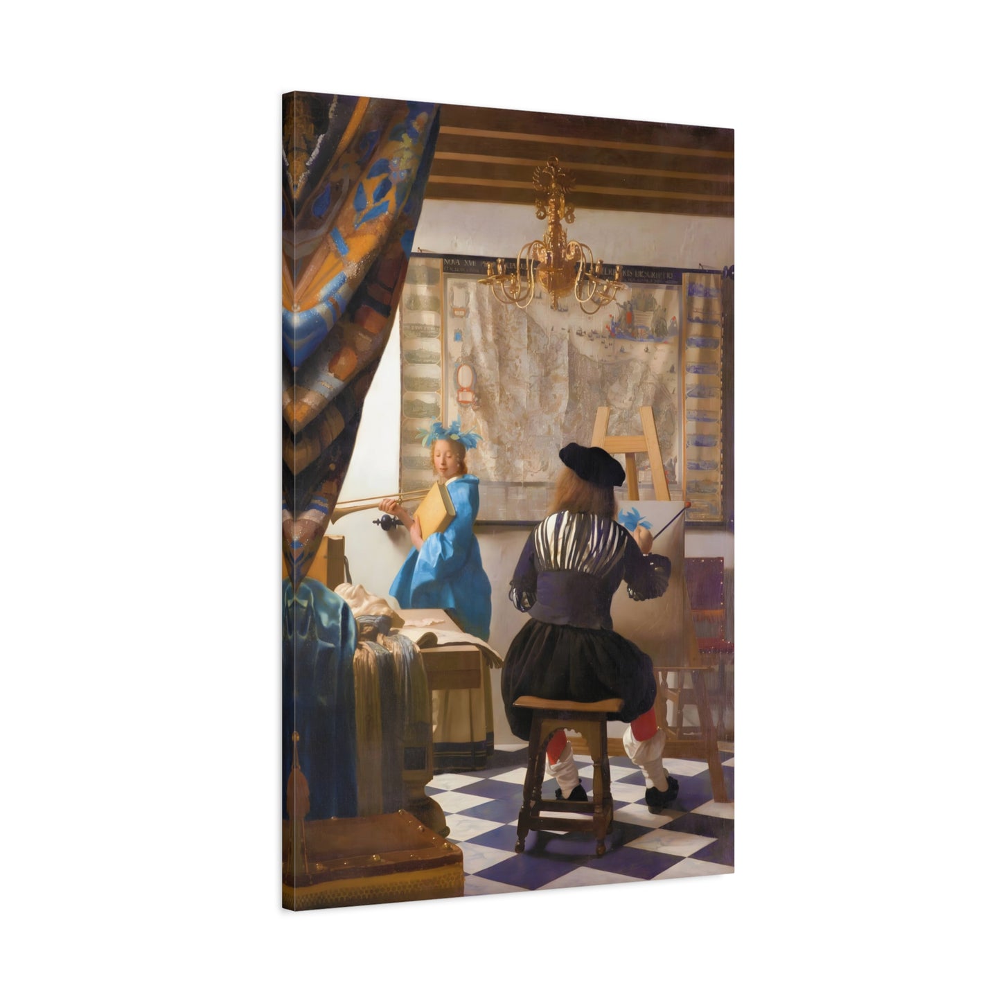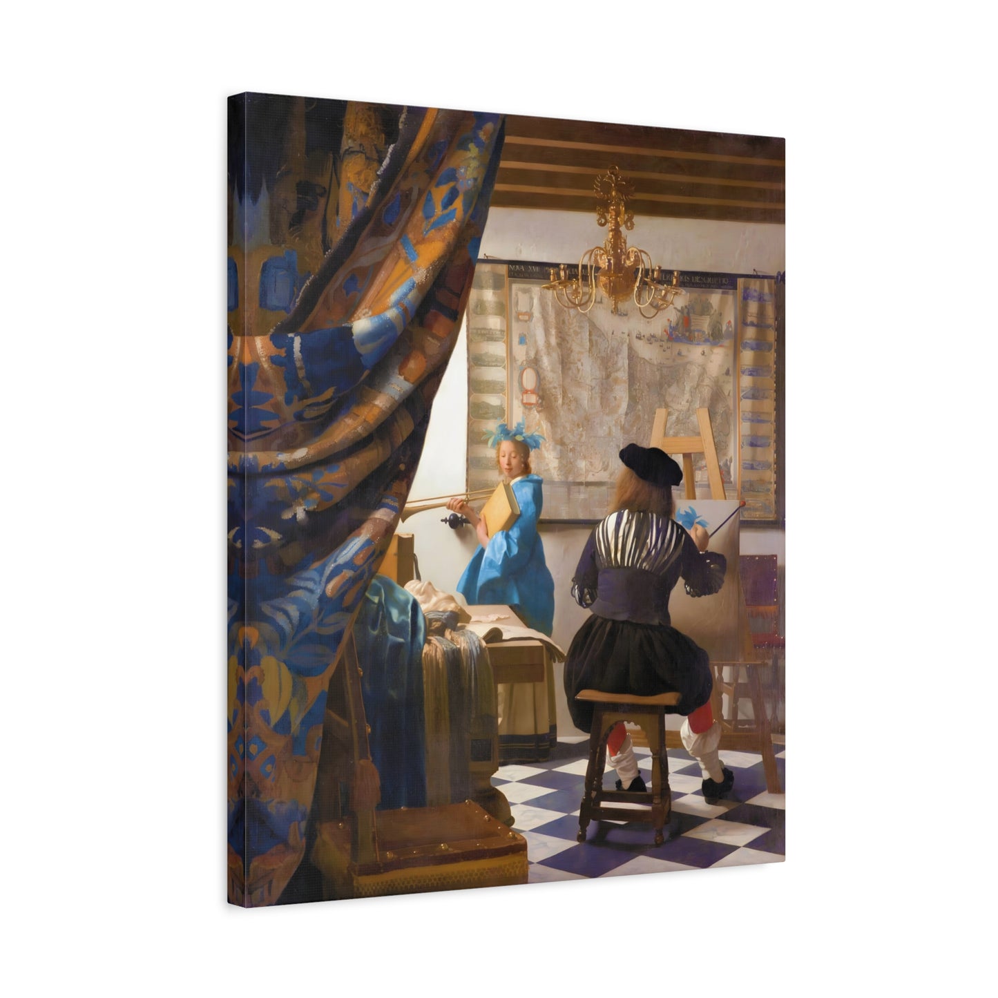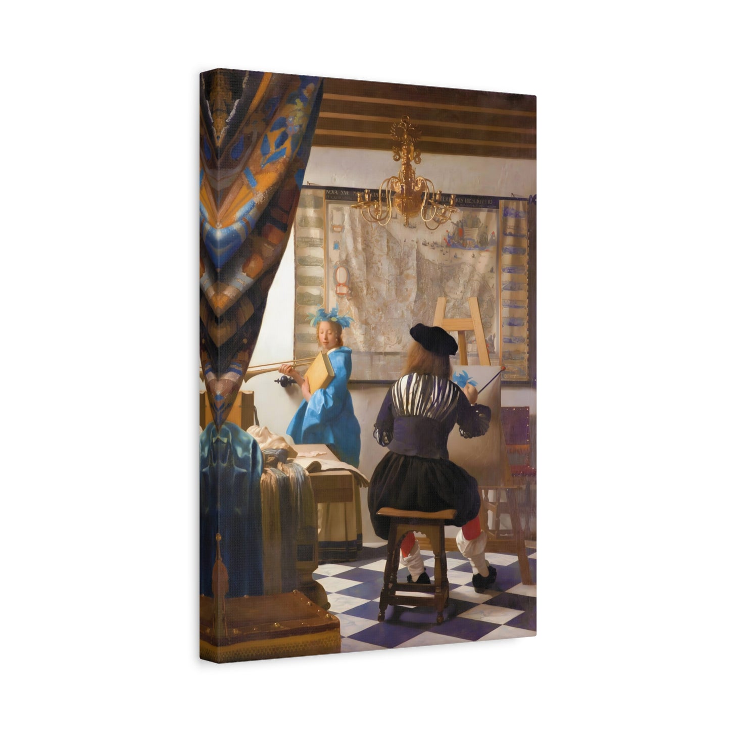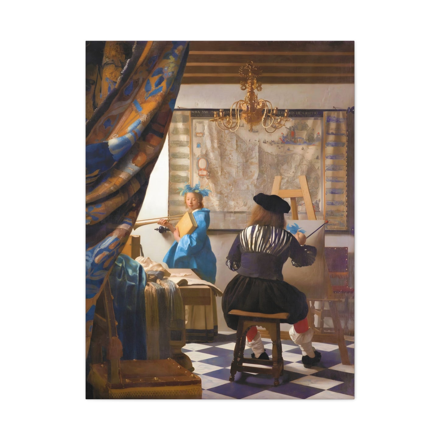 Step into a world of artistic mastery with The Art of Painting by Johannes Vermeer, a masterpiece created in 1666. This exquisite artwork captures the essence of the creative process, with Vermeer himself depicted at his easel, immersed in the act of painting. The rich colors, meticulous details, and masterful use of light transport you to a bygone era of artistic brilliance. Our meticulously replicated canvas art allows you to bring this captivating scene into your own home, infusing your space with the beauty and sophistication of Vermeer's genius. Embrace the allure of this renowned painting and let it inspire your own artistic journey.