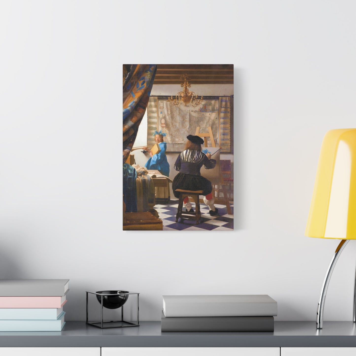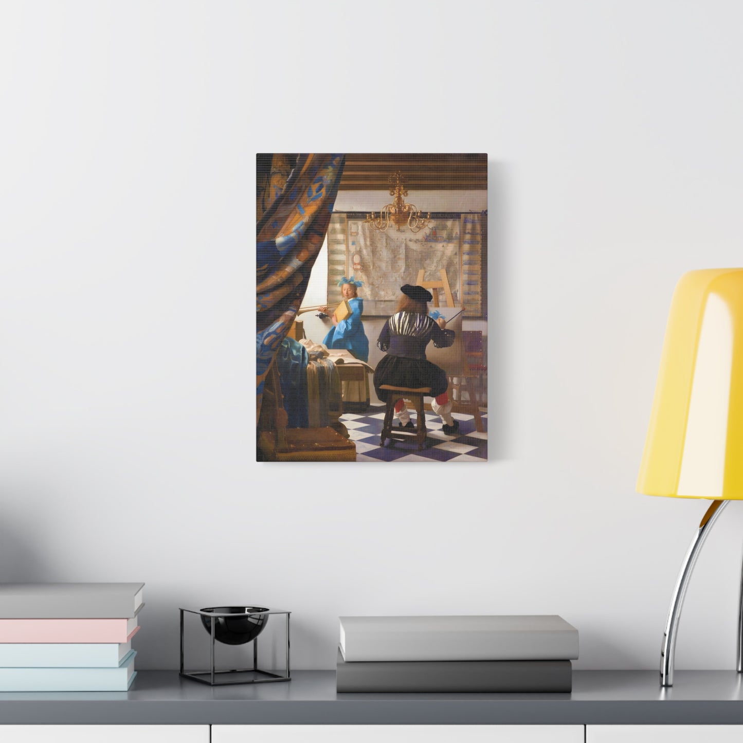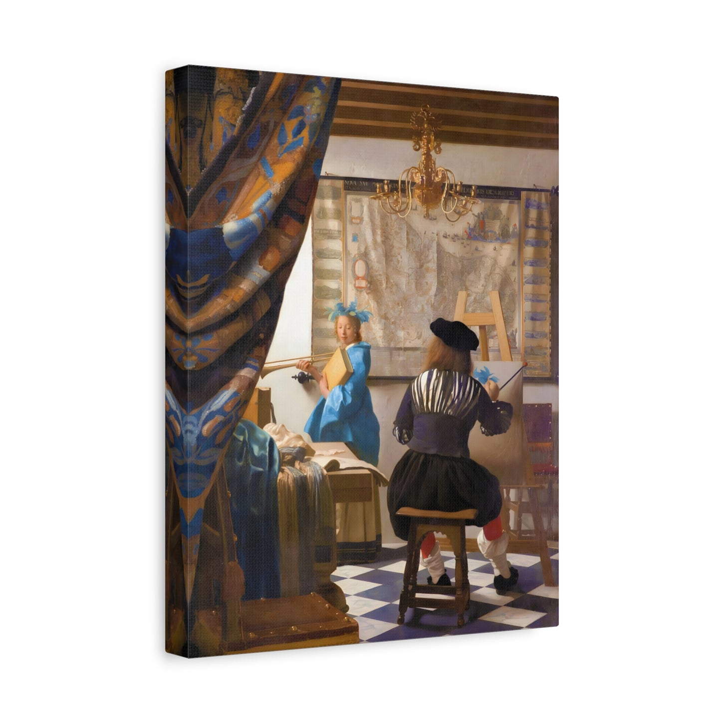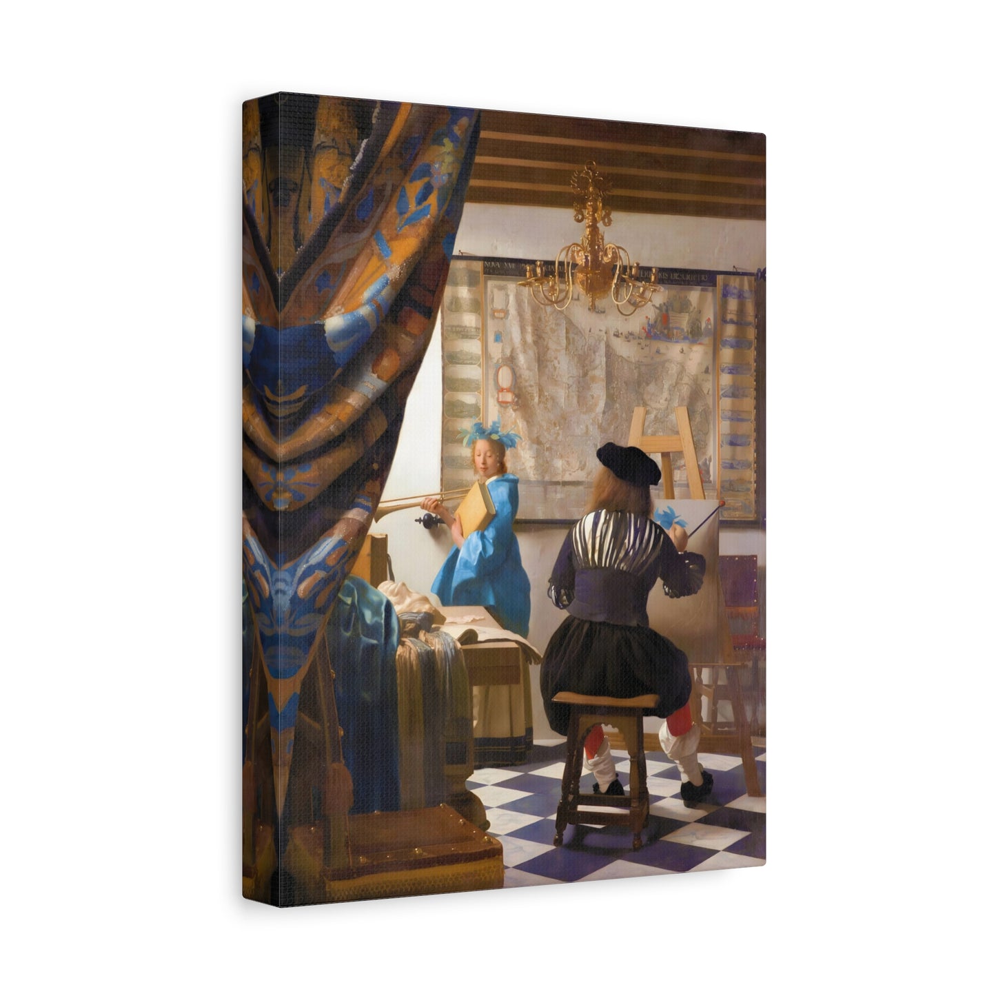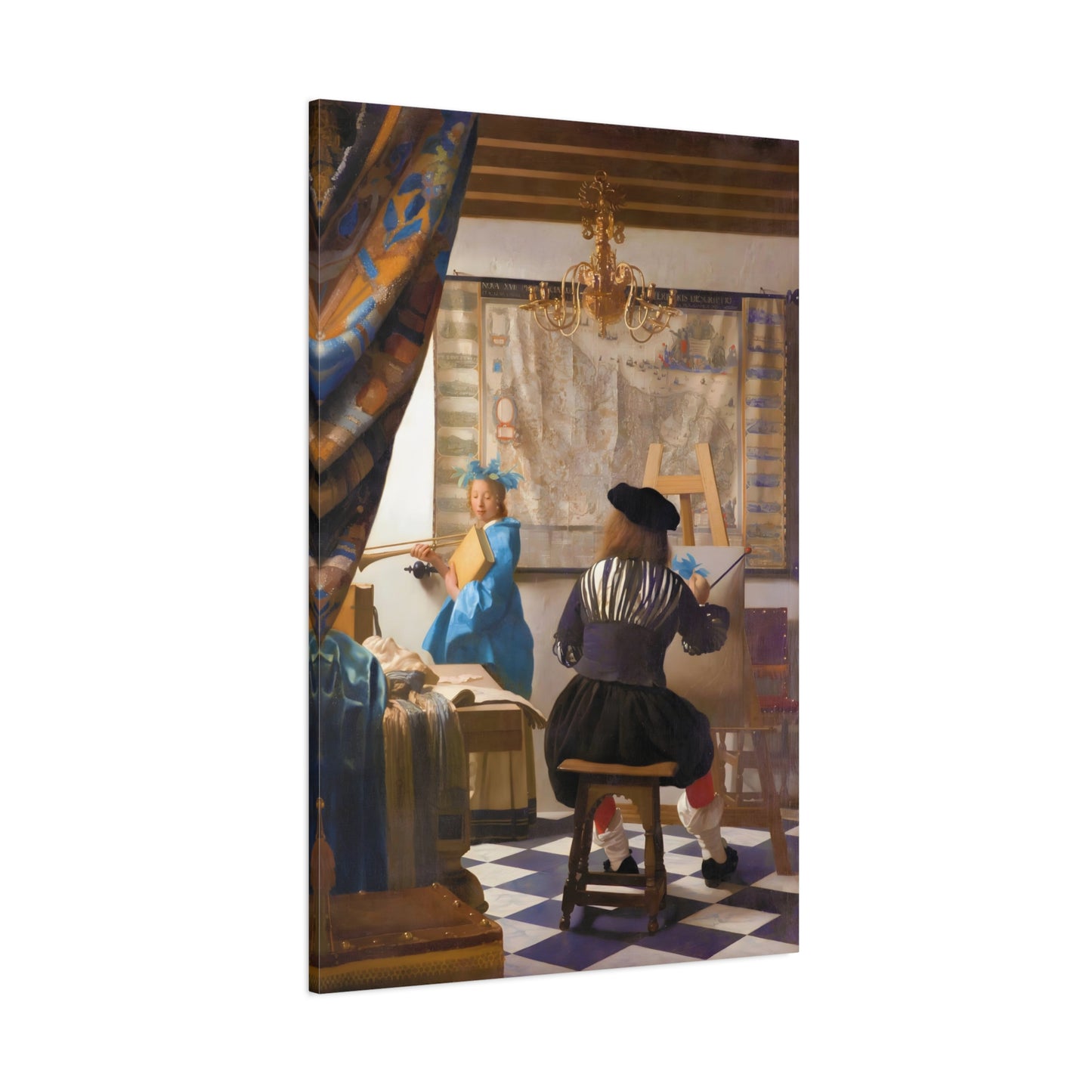 Step into a world of artistic mastery with The Art of Painting by Johannes Vermeer, a masterpiece created in 1666. This exquisite artwork captures the essence of the creative process, with Vermeer himself depicted at his easel, immersed in the act of painting. The rich colors, meticulous details, and masterful use of light transport you to a bygone era of artistic brilliance. Our meticulously replicated canvas art allows you to bring this captivating scene into your own home, infusing your space with the beauty and sophistication of Vermeer's genius. Embrace the allure of this renowned painting and let it inspire your own artistic journey.