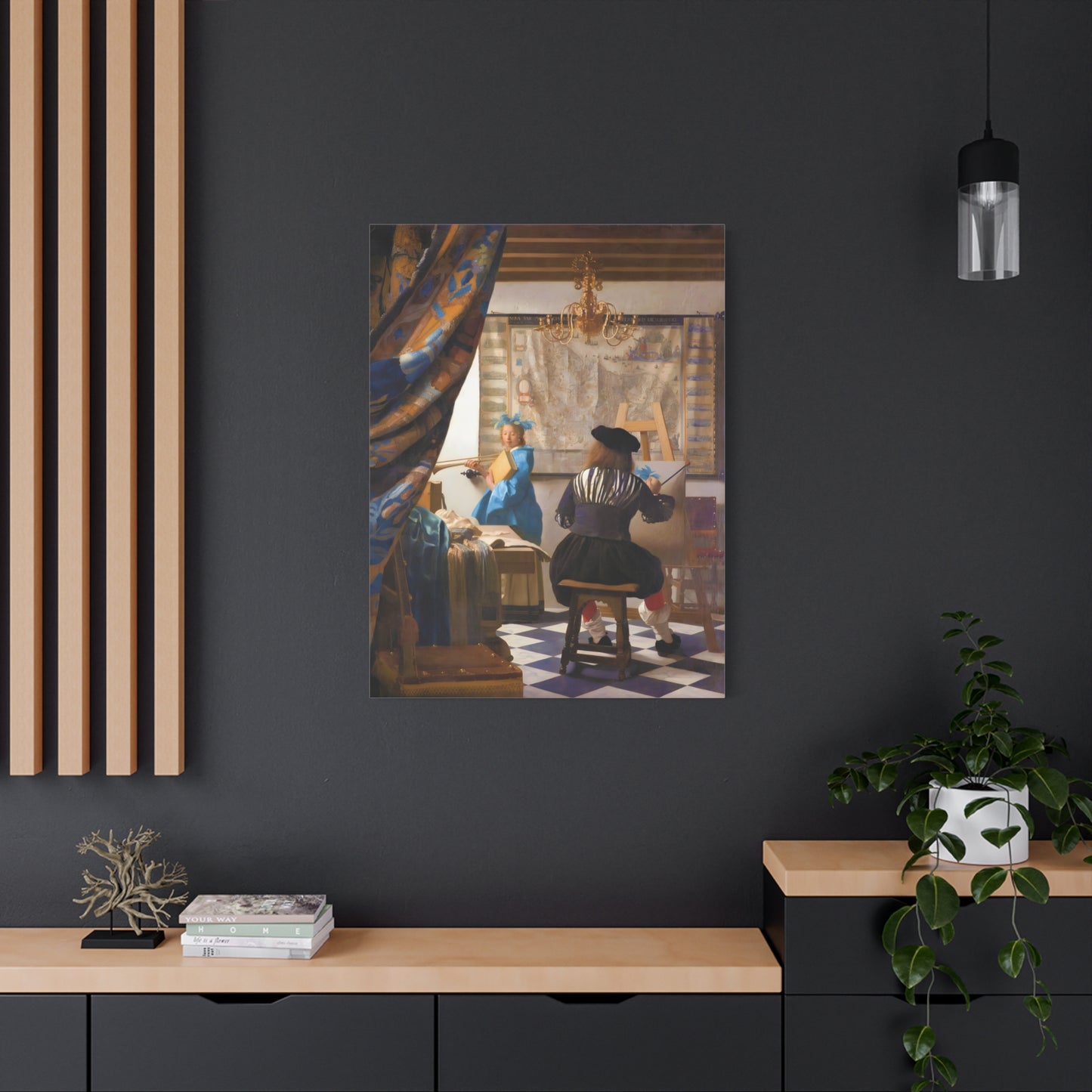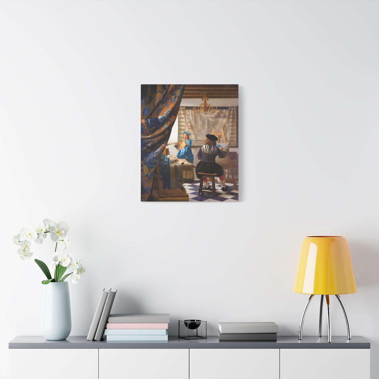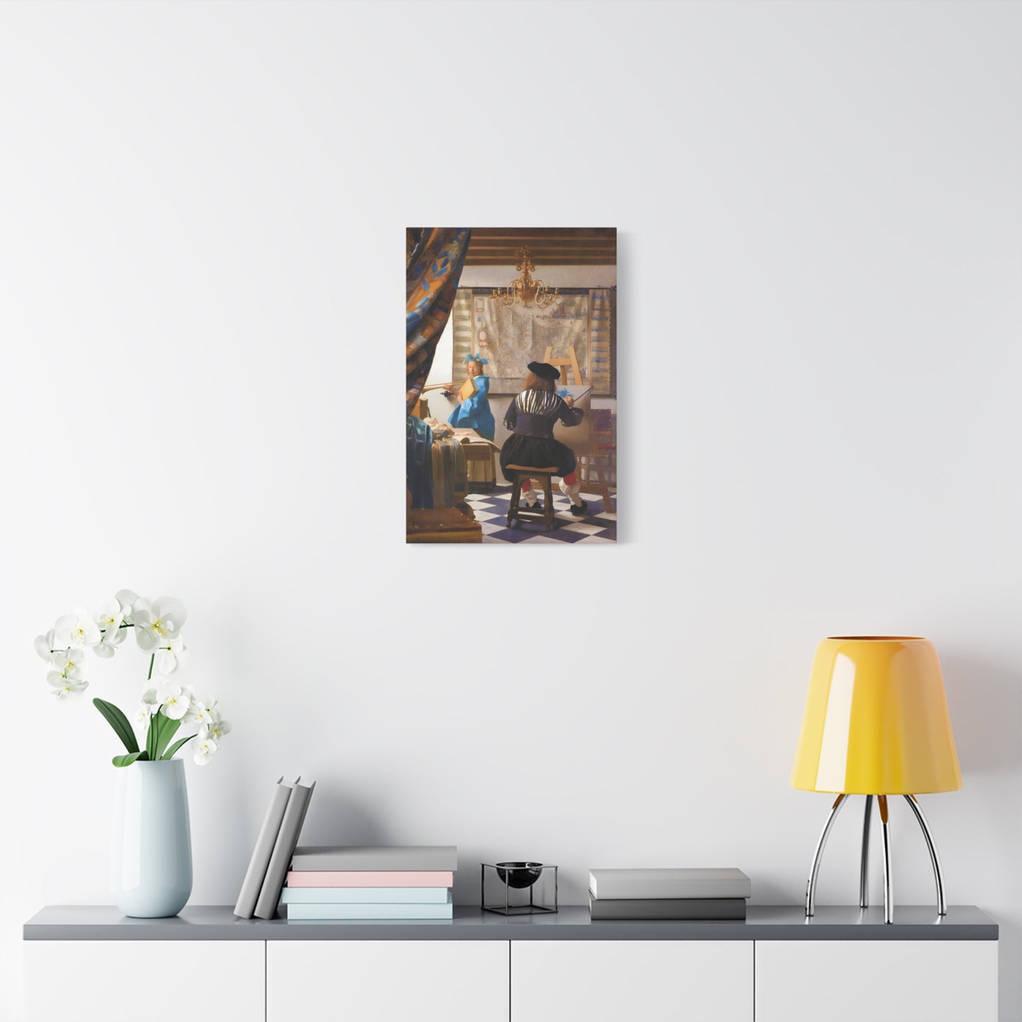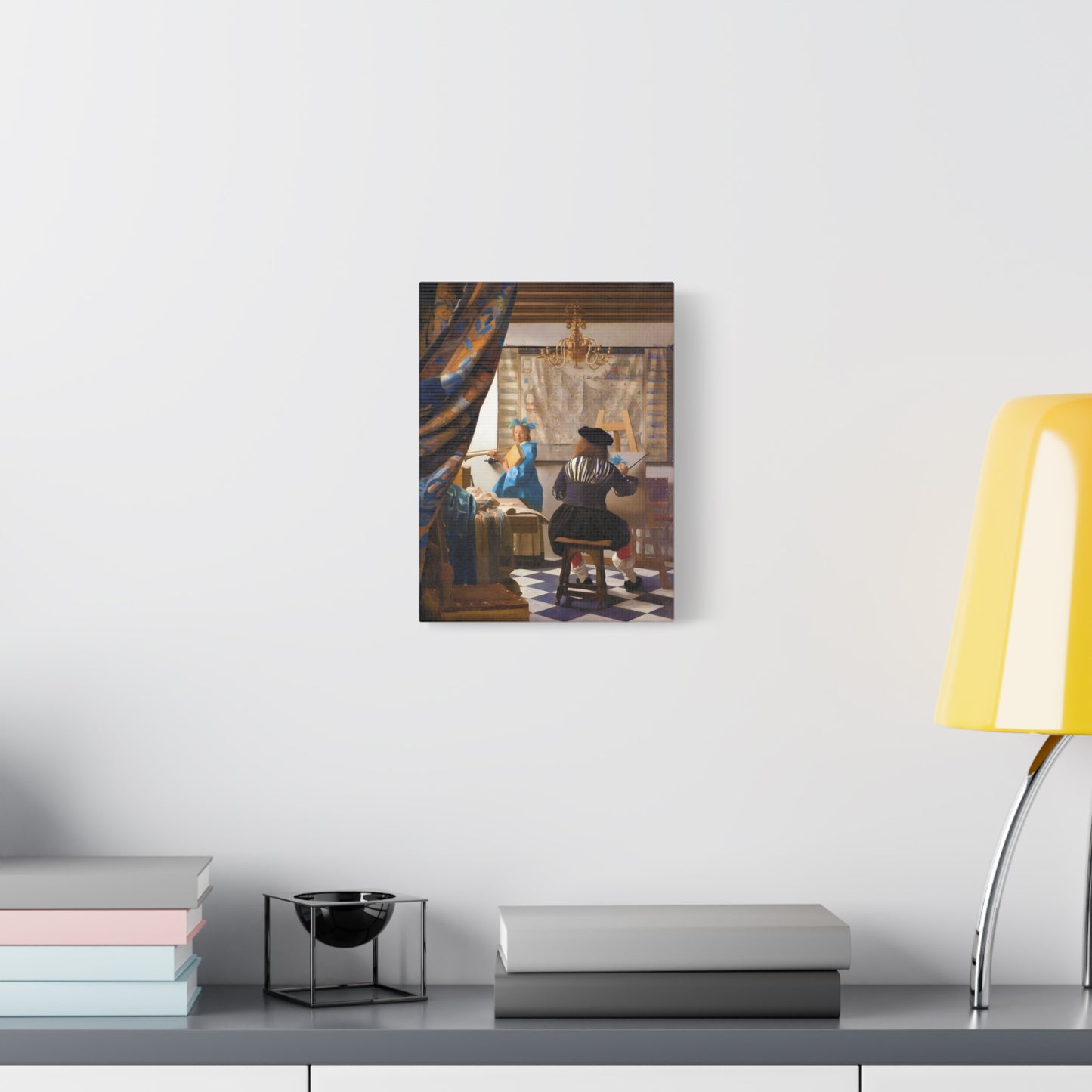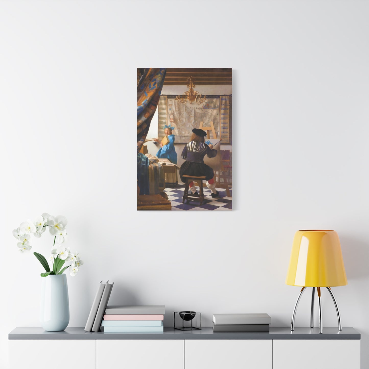Step into a world of artistic mastery with The Art of Painting by Johannes Vermeer, a masterpiece created in 1666. This exquisite artwork captures the essence of the creative process, with Vermeer himself depicted at his easel, immersed in the act of painting. The rich colors, meticulous details, and masterful use of light transport you to a bygone era of artistic brilliance. Our meticulously replicated canvas art allows you to bring this captivating scene into your own home, infusing your space with the beauty and sophistication of Vermeer's genius. Embrace the allure of this renowned painting and let it inspire your own artistic journey.