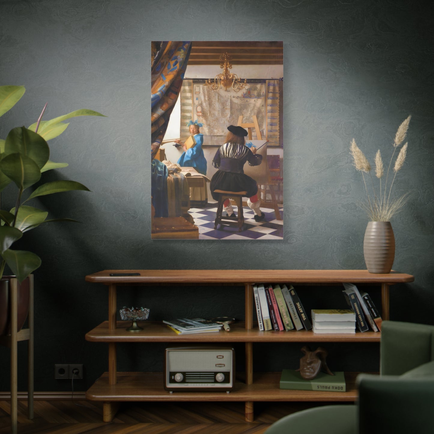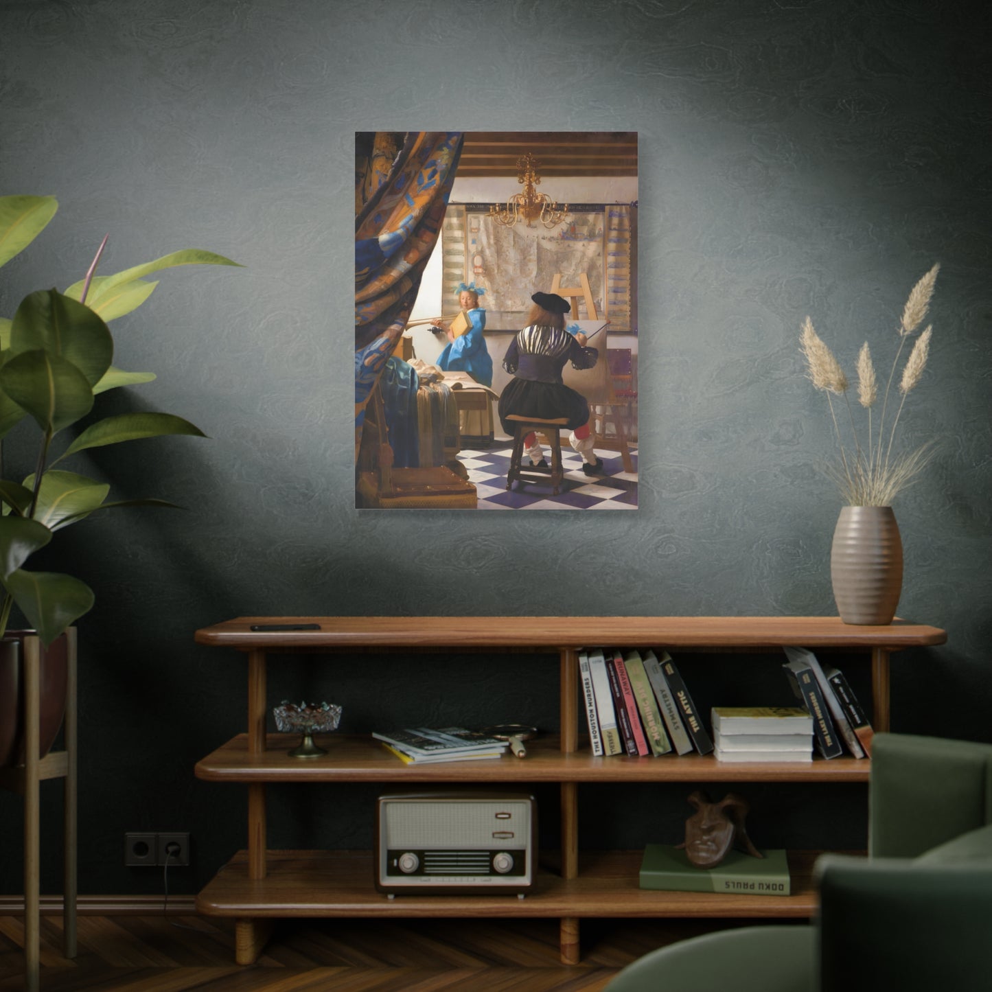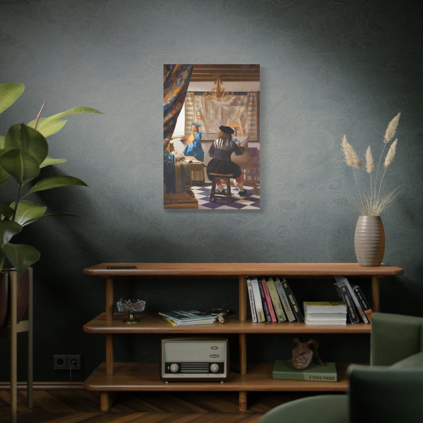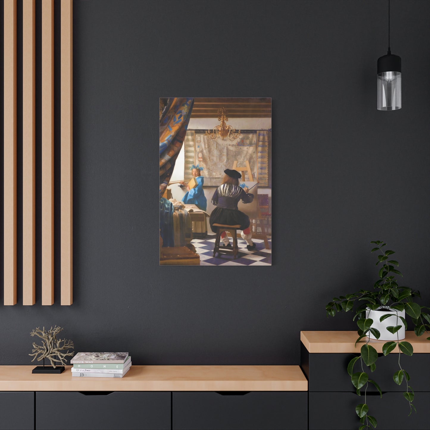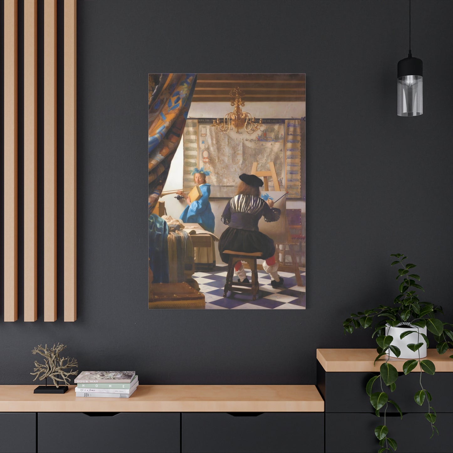 Step into a world of artistic mastery with The Art of Painting by Johannes Vermeer, a masterpiece created in 1666. This exquisite artwork captures the essence of the creative process, with Vermeer himself depicted at his easel, immersed in the act of painting. The rich colors, meticulous details, and masterful use of light transport you to a bygone era of artistic brilliance. Our meticulously replicated canvas art allows you to bring this captivating scene into your own home, infusing your space with the beauty and sophistication of Vermeer's genius. Embrace the allure of this renowned painting and let it inspire your own artistic journey.