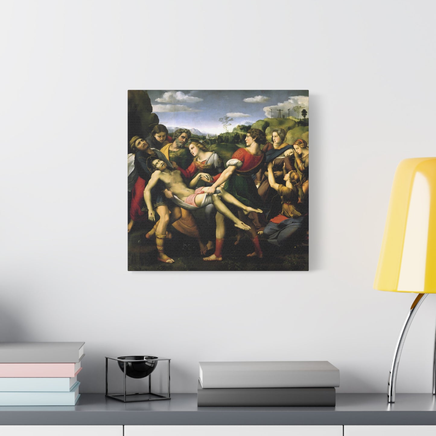 Experience the profound emotional power of The Deposition by Raphael, a masterpiece created in 1507. This iconic artwork depicts the sorrowful scene of Christ's body being gently lowered from the cross, surrounded by a group of grieving figures. With its masterful composition, exquisite details, and sublime use of color, The Deposition captures the essence of human suffering and divine compassion. Owning a replicated version of this artwork will bring a profound sense of spirituality, beauty, and contemplation to your home. Let the intricate brushstrokes and evocative imagery serve as a reminder of the enduring power of faith and the universal themes of loss and redemption. Transform your living space into a sanctuary of artistry and reverence with The Deposition by Raphael.