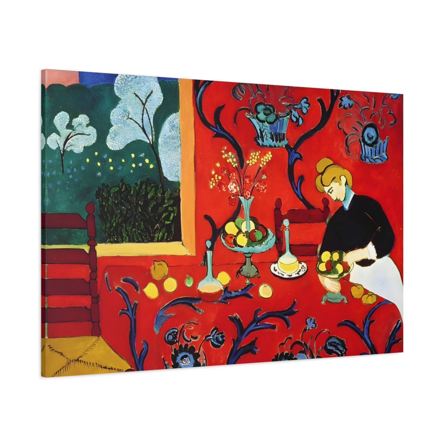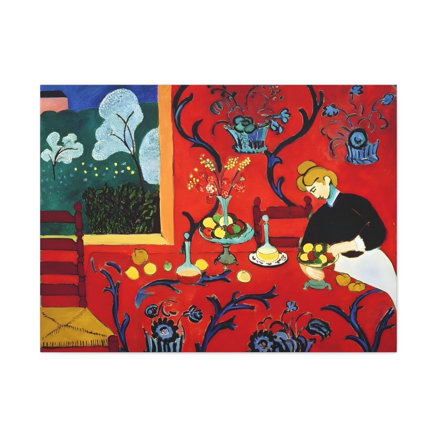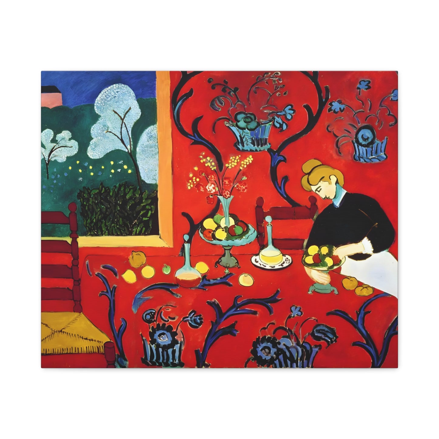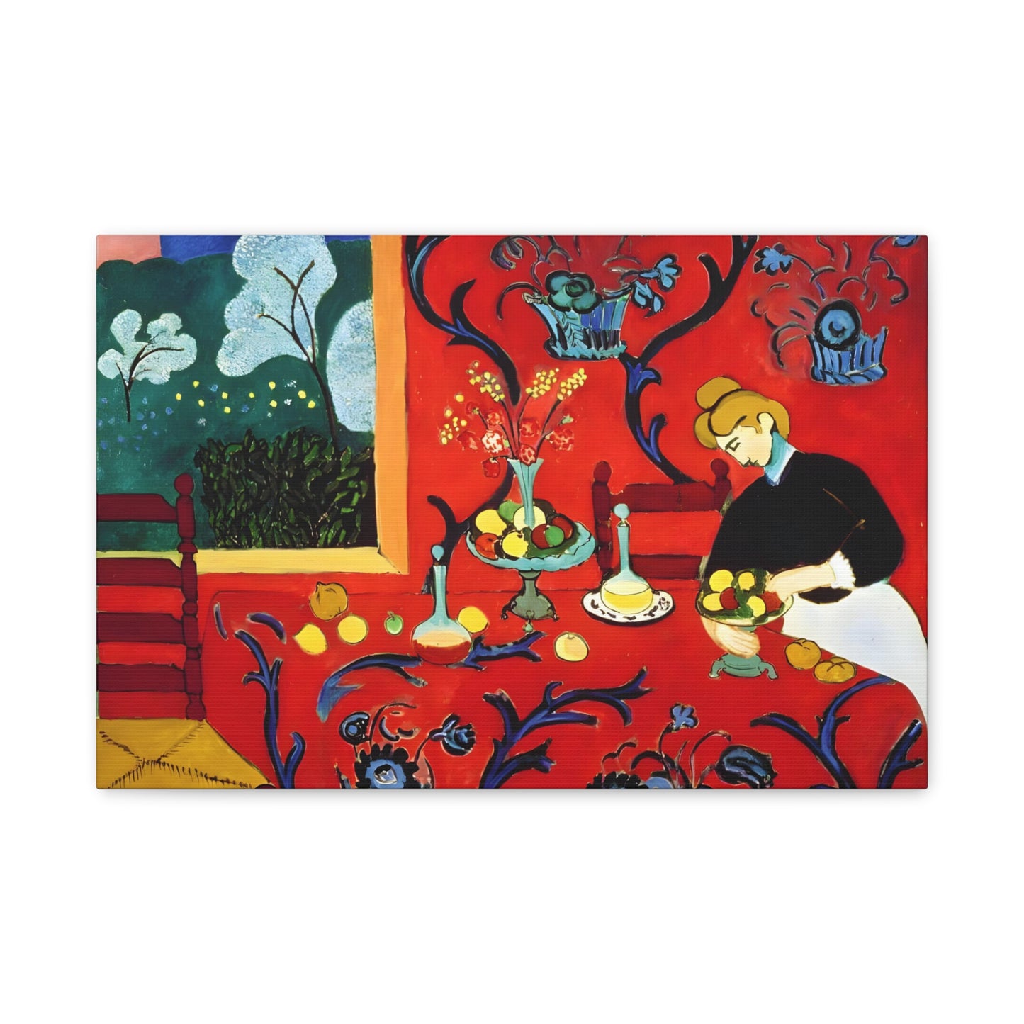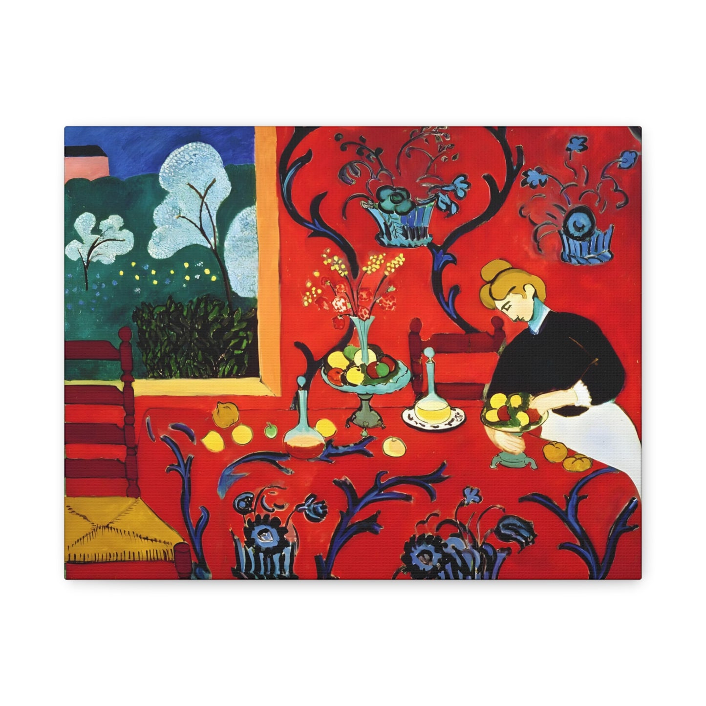 Introducing The Dessert: Harmony in Red by Henri Matisse, created in 1908. This vibrant and captivating artwork bursts with energy and life, instantly transforming any space into a visual feast for the senses. Matisse's bold use of red tones, intricate patterns, and sumptuous details create a harmonious composition that exudes warmth and opulence. The artwork's timeless elegance and its ability to infuse a room with a sense of luxury make it a must-have for art enthusiasts and interior design connoisseurs alike. With a replicated canvas of The Dessert: Harmony in Red, you can bring the exhilarating spirit of Matisse's masterpiece into your home, elevating your space to new heights of sophistication and artistic allure.