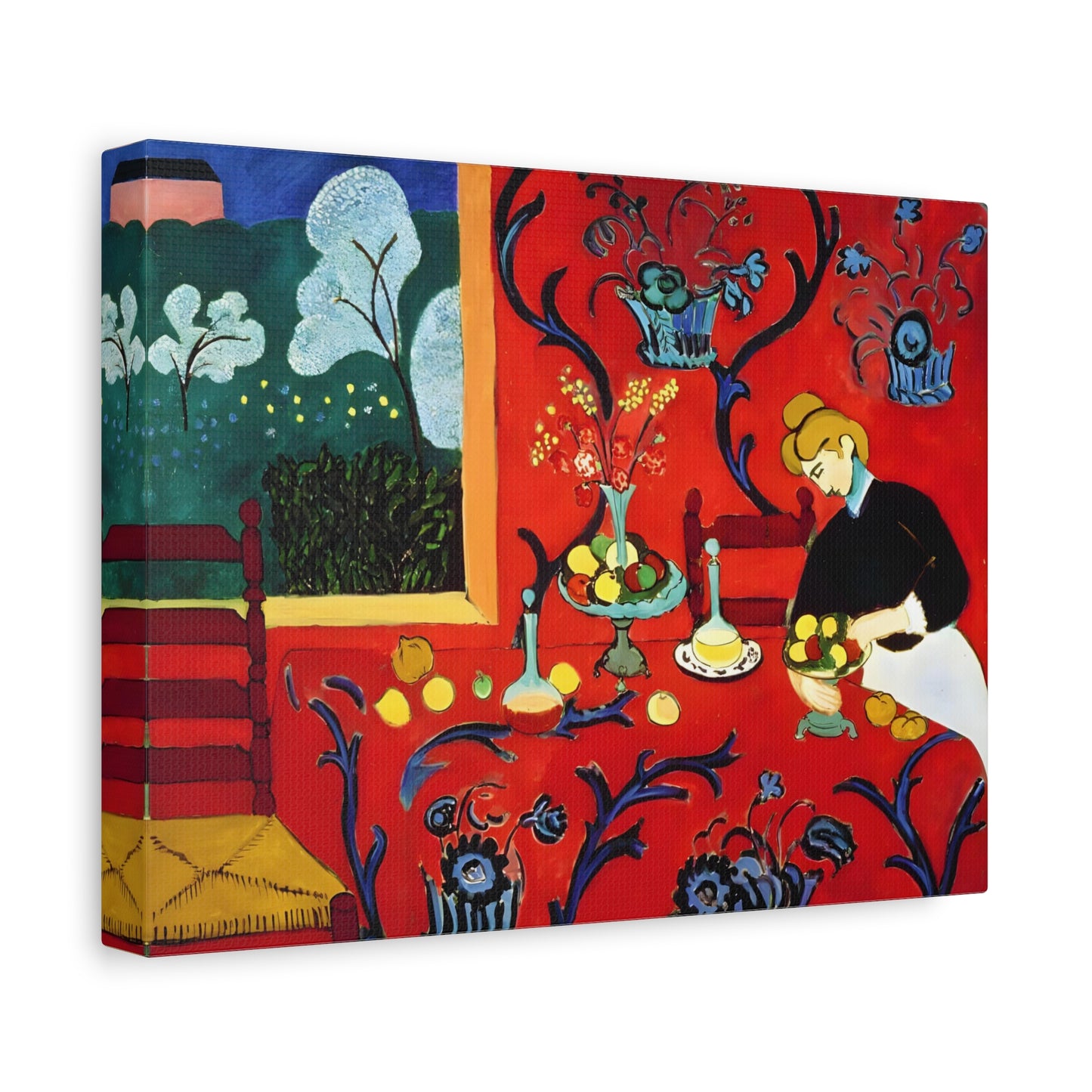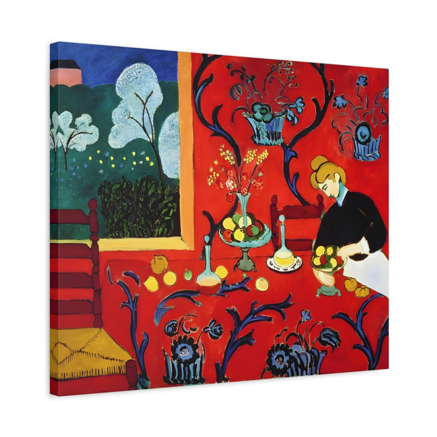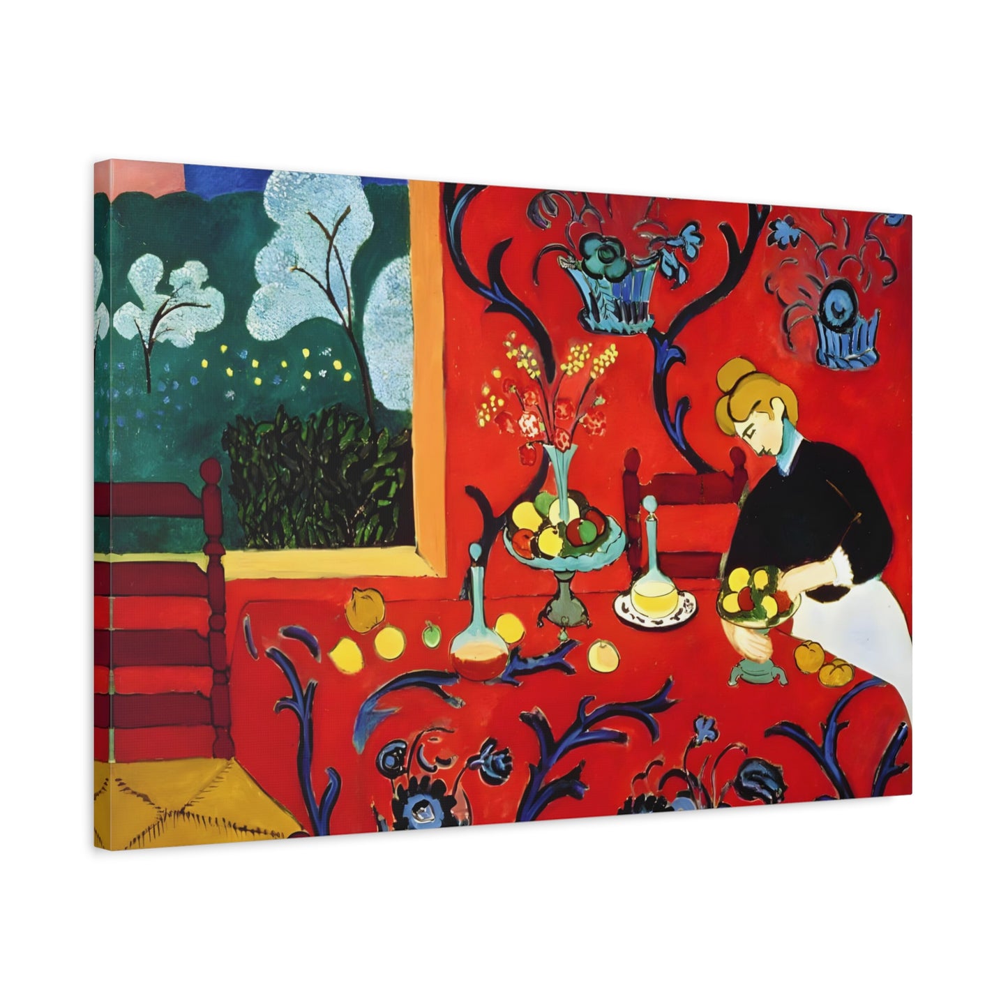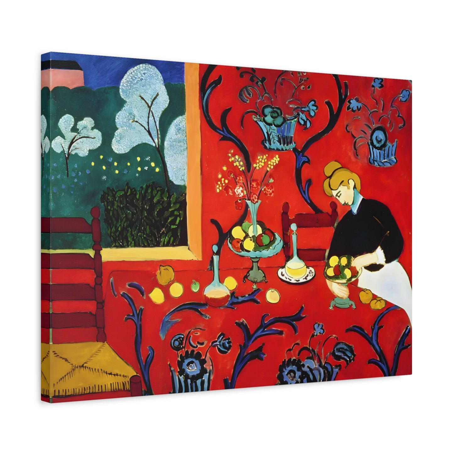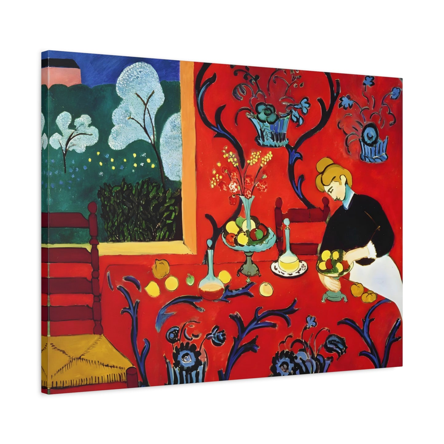 Introducing The Dessert: Harmony in Red by Henri Matisse, created in 1908. This vibrant and captivating artwork bursts with energy and life, instantly transforming any space into a visual feast for the senses. Matisse's bold use of red tones, intricate patterns, and sumptuous details create a harmonious composition that exudes warmth and opulence. The artwork's timeless elegance and its ability to infuse a room with a sense of luxury make it a must-have for art enthusiasts and interior design connoisseurs alike. With a replicated canvas of The Dessert: Harmony in Red, you can bring the exhilarating spirit of Matisse's masterpiece into your home, elevating your space to new heights of sophistication and artistic allure.
