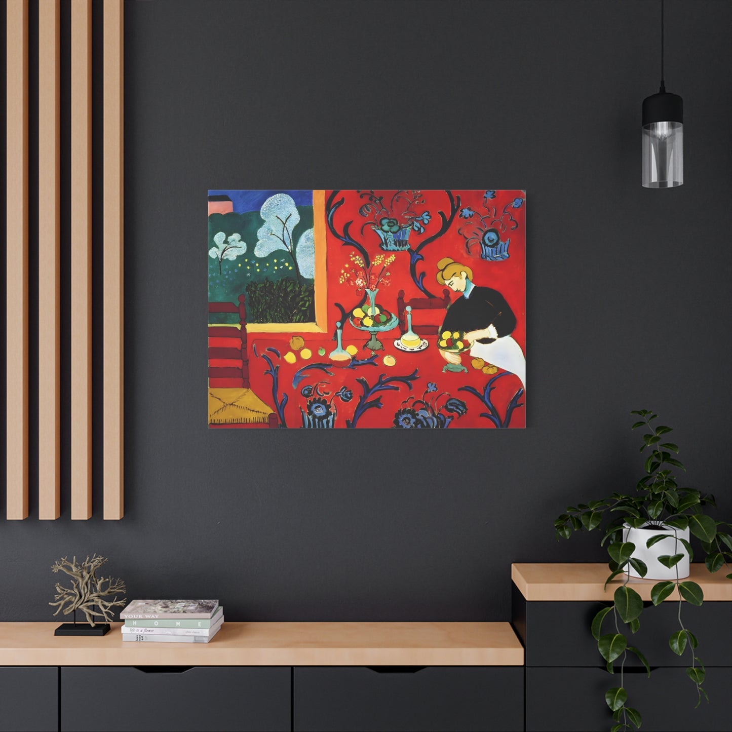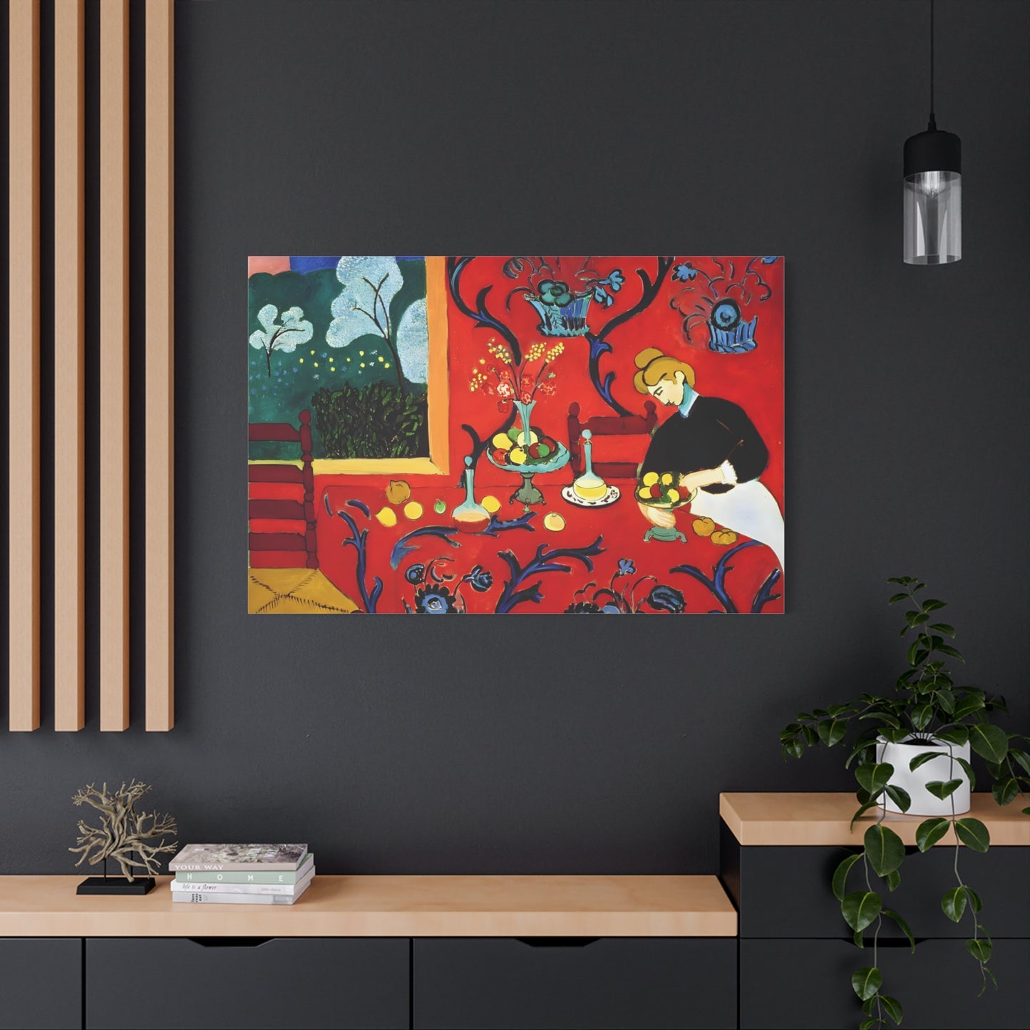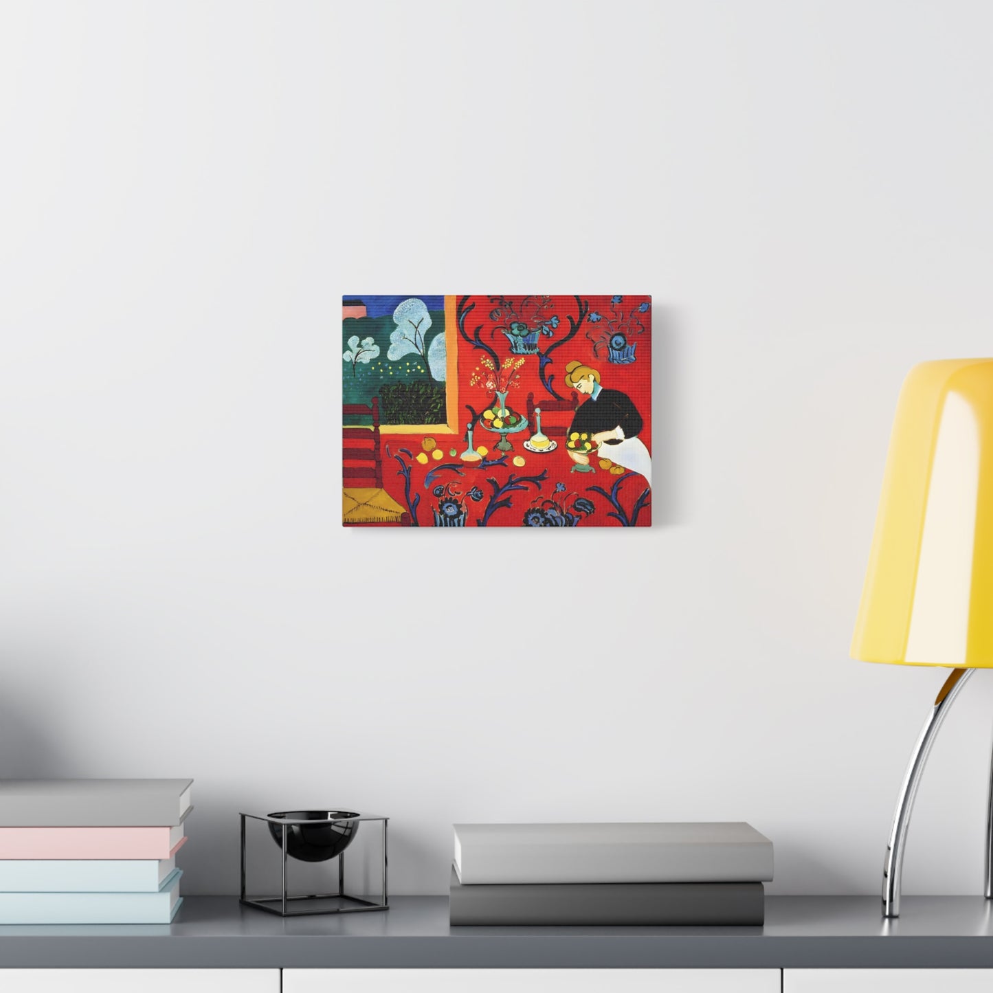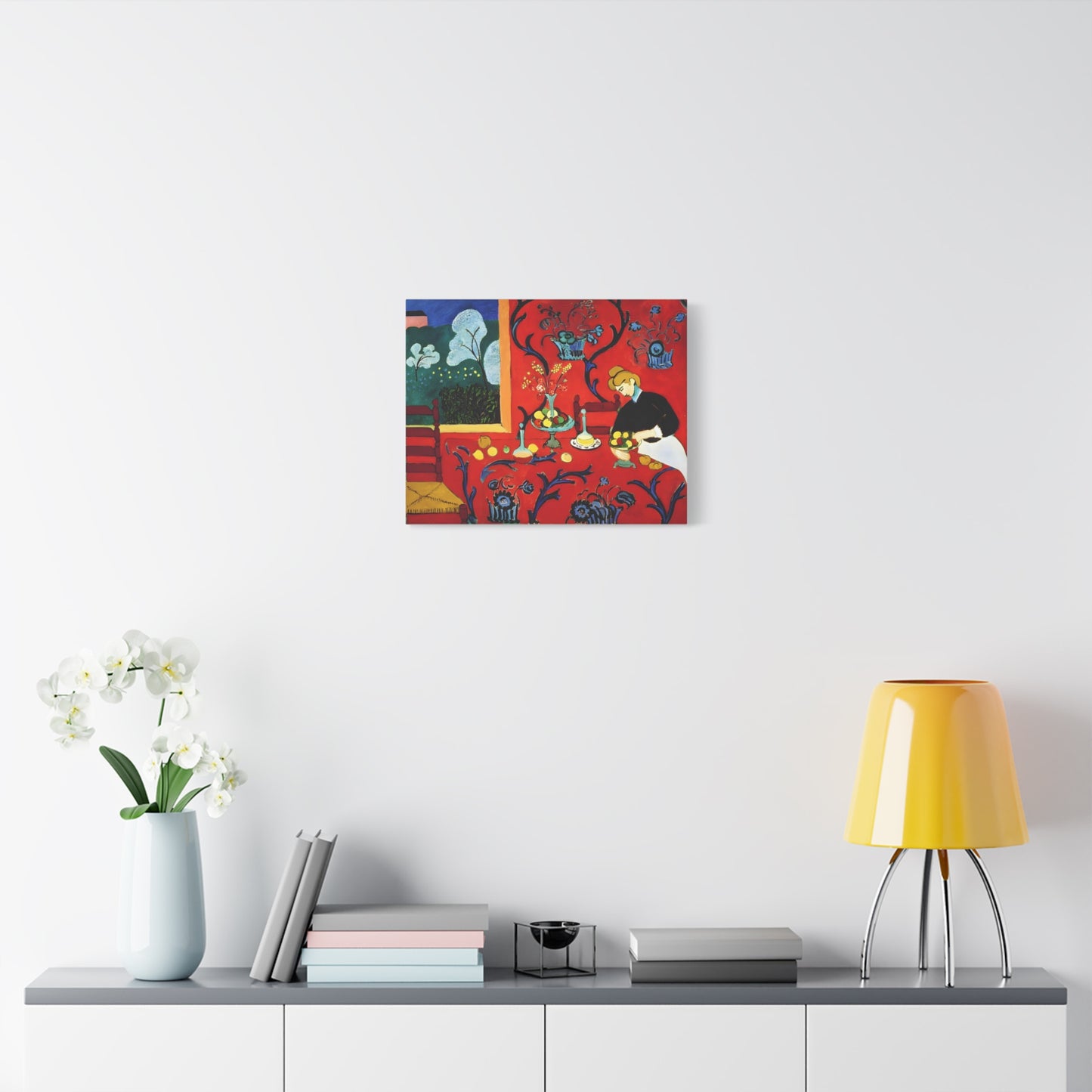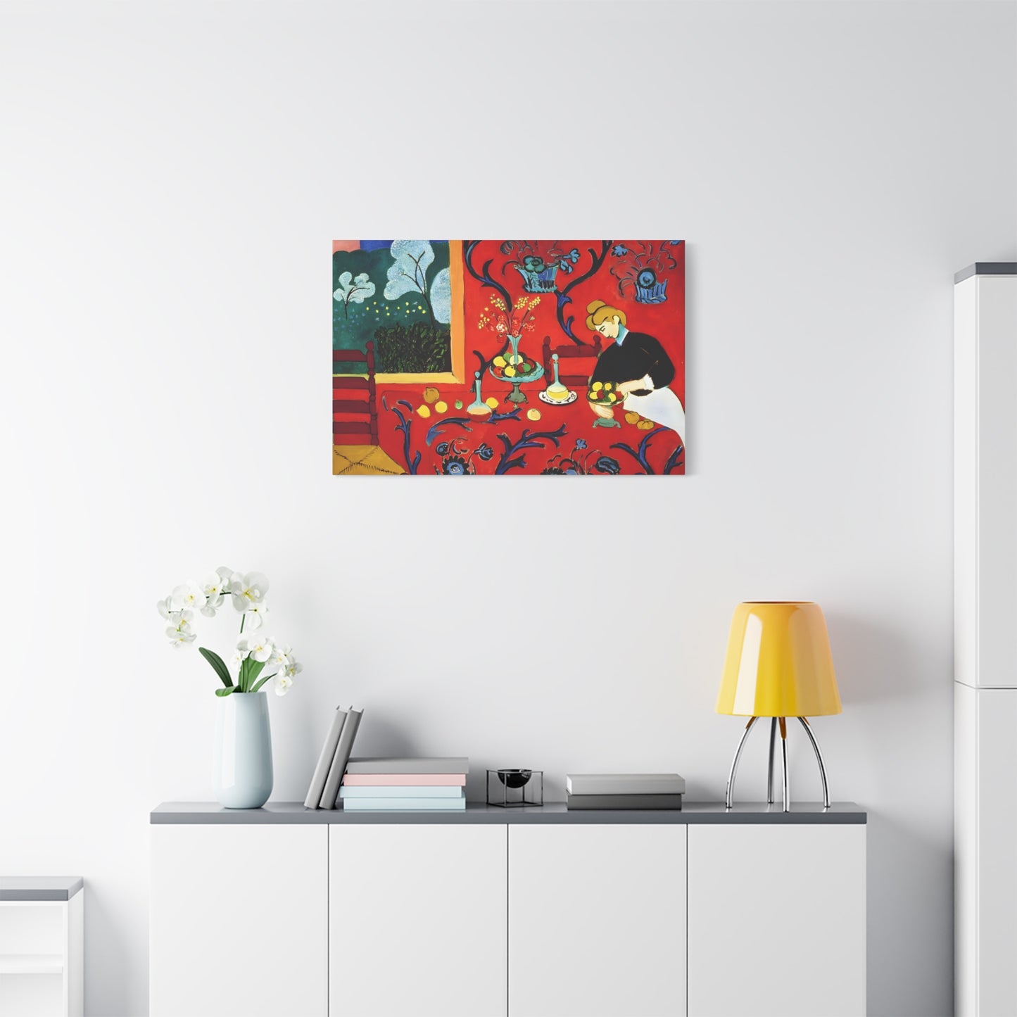 Introducing The Dessert: Harmony in Red by Henri Matisse, created in 1908. This vibrant and captivating artwork bursts with energy and life, instantly transforming any space into a visual feast for the senses. Matisse's bold use of red tones, intricate patterns, and sumptuous details create a harmonious composition that exudes warmth and opulence. The artwork's timeless elegance and its ability to infuse a room with a sense of luxury make it a must-have for art enthusiasts and interior design connoisseurs alike. With a replicated canvas of The Dessert: Harmony in Red, you can bring the exhilarating spirit of Matisse's masterpiece into your home, elevating your space to new heights of sophistication and artistic allure.