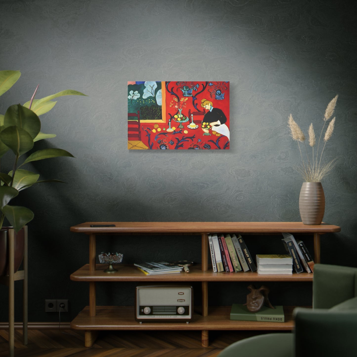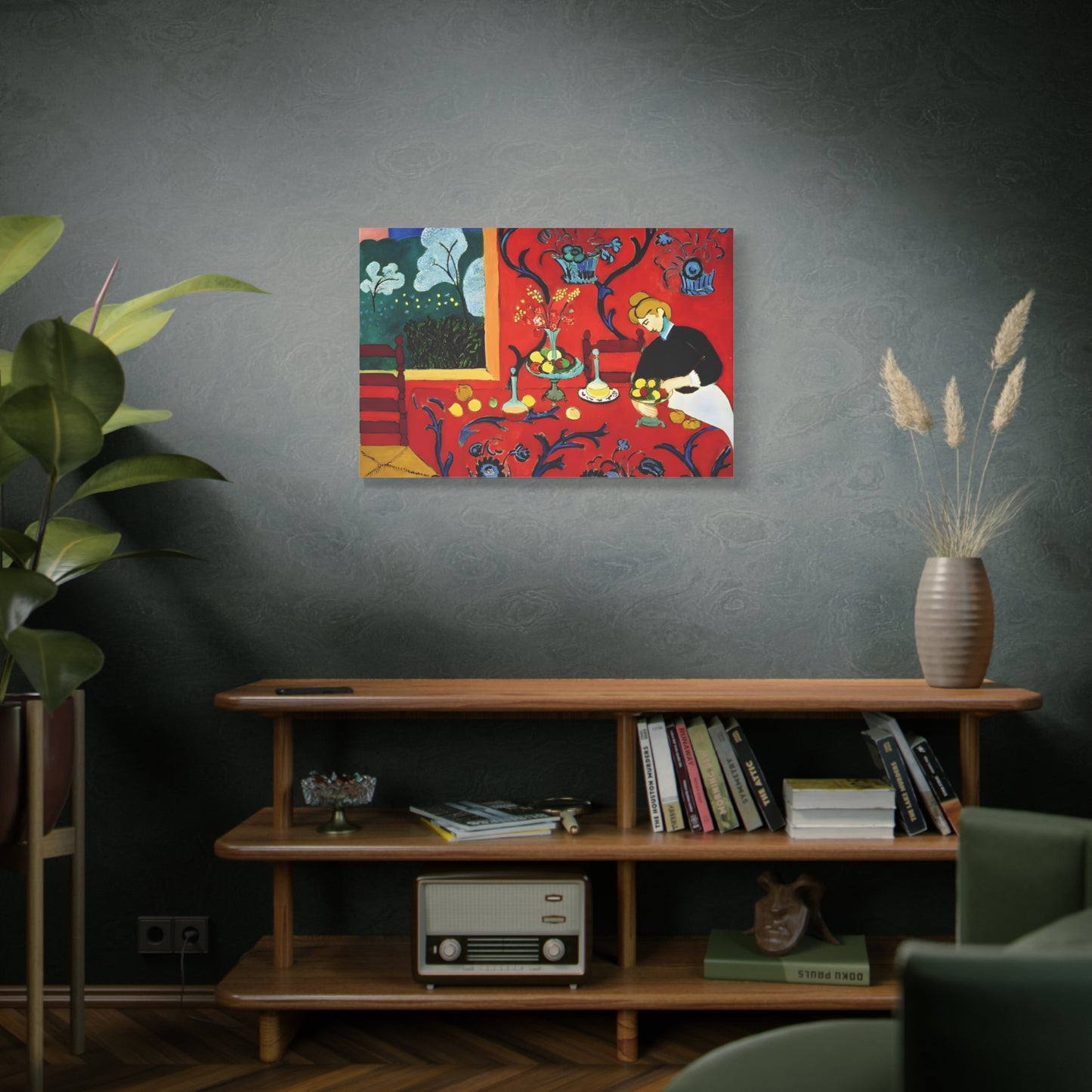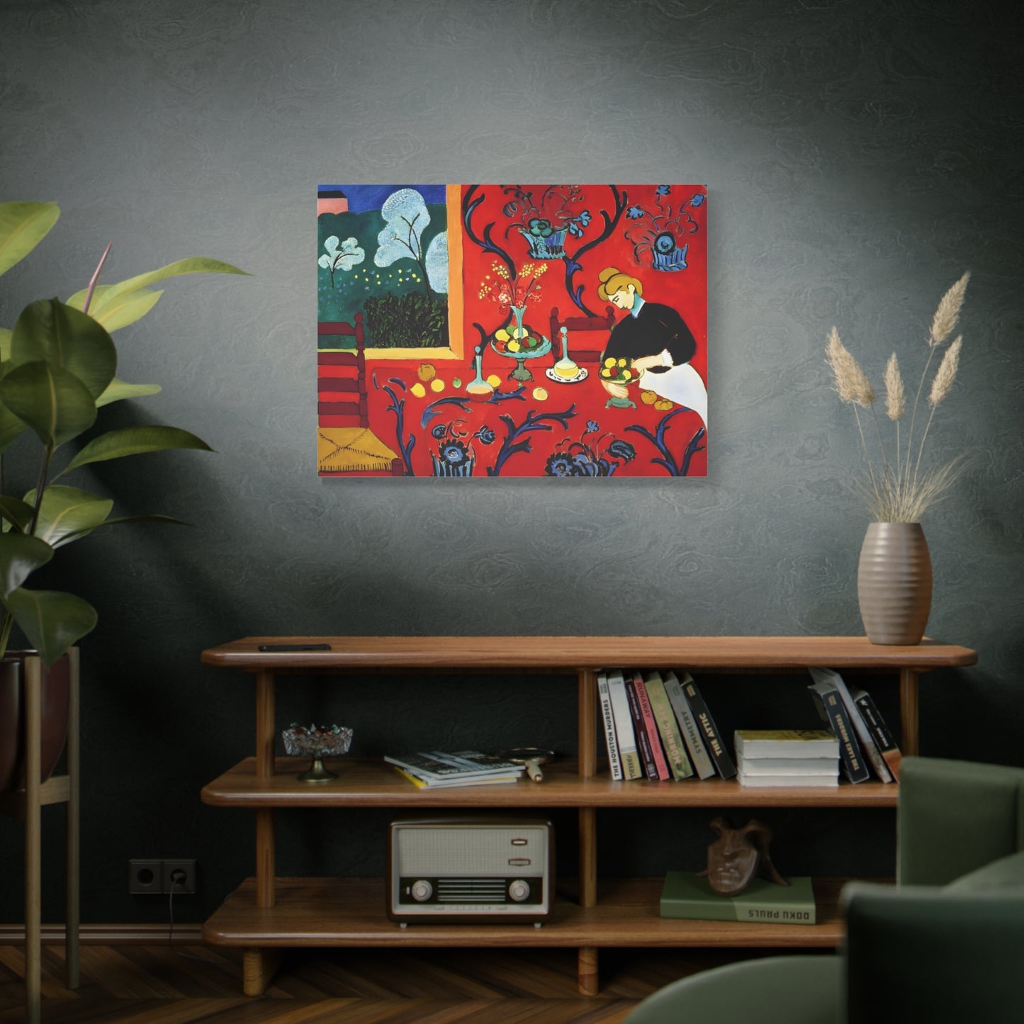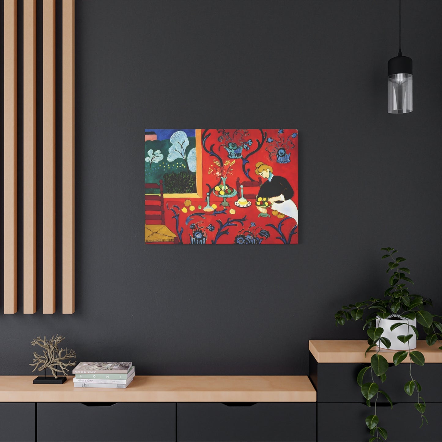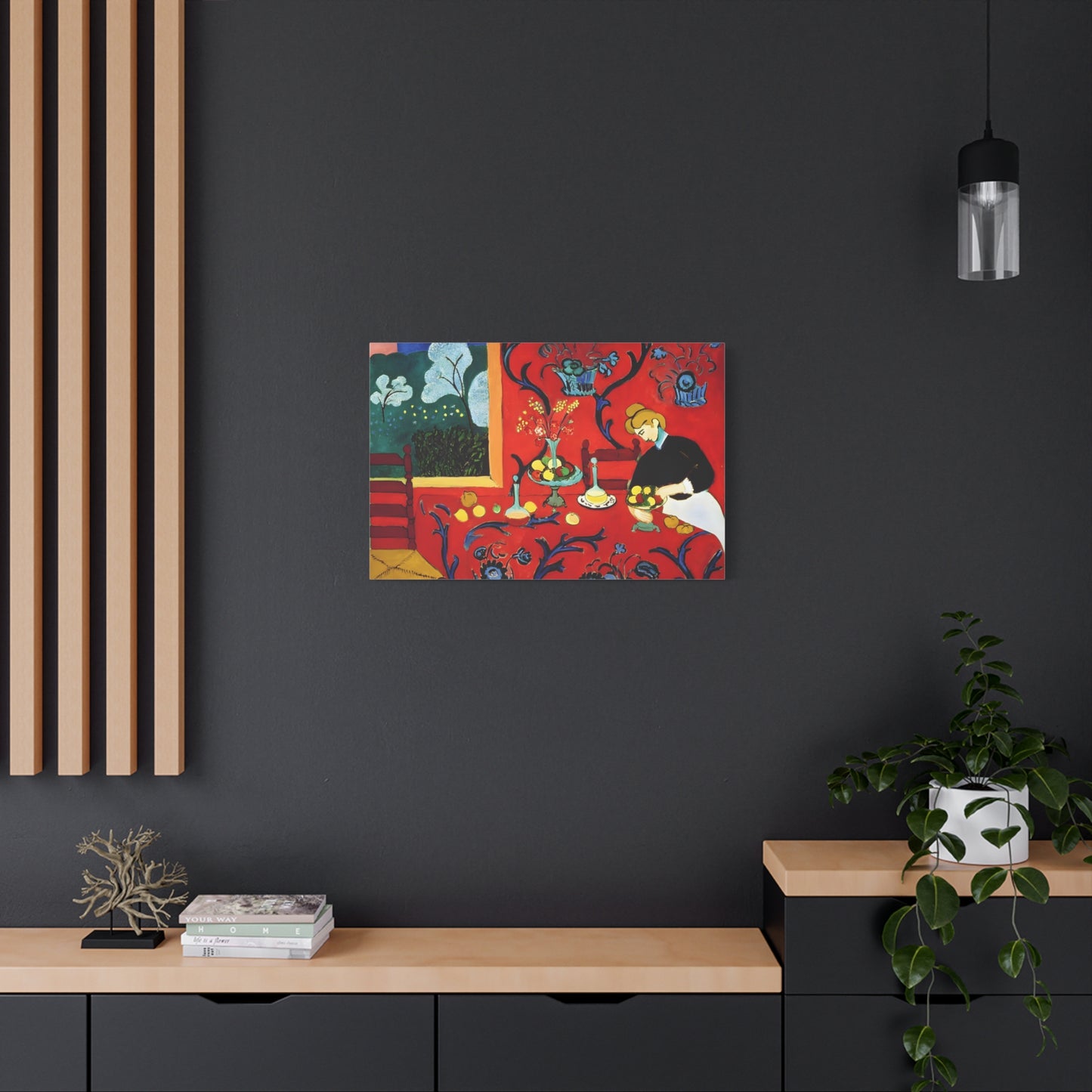 Introducing The Dessert: Harmony in Red by Henri Matisse, created in 1908. This vibrant and captivating artwork bursts with energy and life, instantly transforming any space into a visual feast for the senses. Matisse's bold use of red tones, intricate patterns, and sumptuous details create a harmonious composition that exudes warmth and opulence. The artwork's timeless elegance and its ability to infuse a room with a sense of luxury make it a must-have for art enthusiasts and interior design connoisseurs alike. With a replicated canvas of The Dessert: Harmony in Red, you can bring the exhilarating spirit of Matisse's masterpiece into your home, elevating your space to new heights of sophistication and artistic allure.