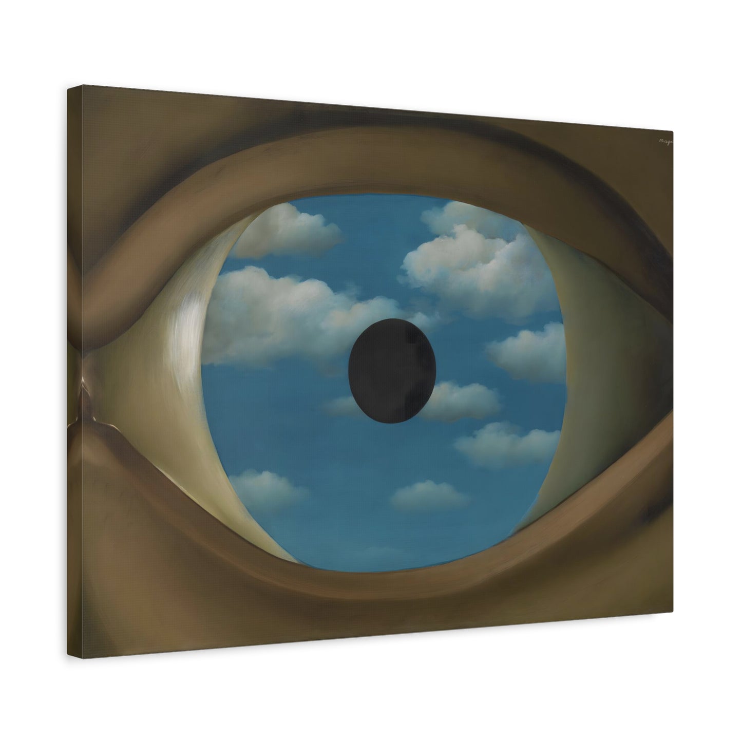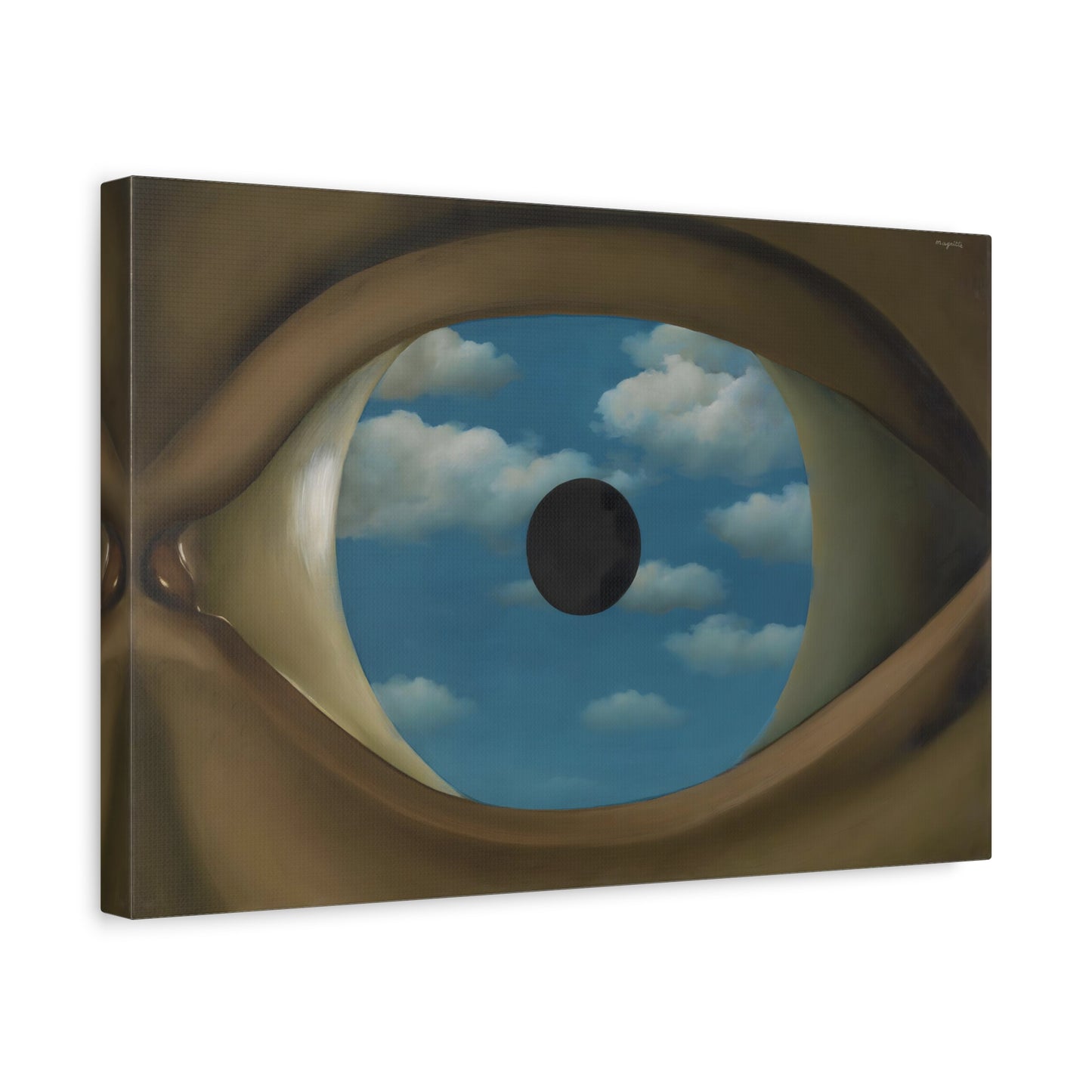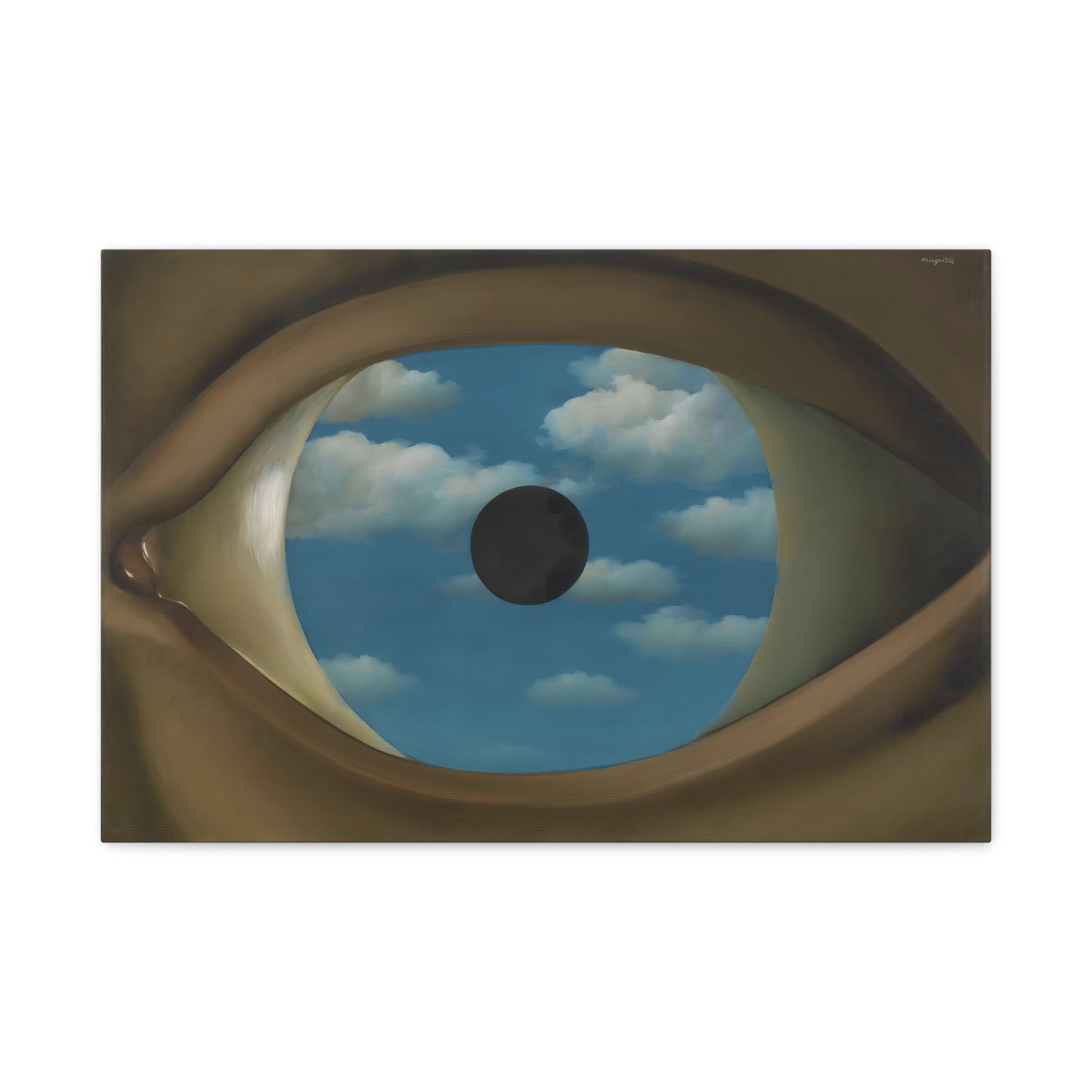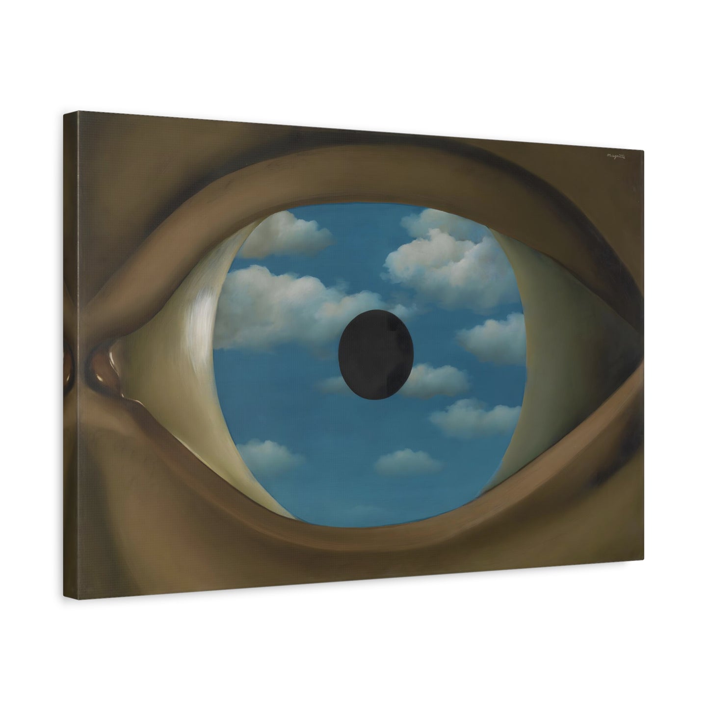 Experience the captivating allure of René Magritte's The False Mirror, a visionary masterpiece created in 1928 that will transport you to new dimensions of artistic wonder. Behold the hypnotic gaze of a giant eye suspended in a vast sky, reflecting a tranquil, endless blue. This iconic artwork is a gateway to introspection, beckoning you to explore the depths of perception and hidden truths. Its timeless symbolism and striking composition make it a must-have centerpiece for any art lover's collection. Transform your home into a gallery of intrigue and fascination with a canvas replication of The False Mirror, where every glance invites you to dive into the enigmatic world of Magritte. Unleash the power of imagination and make this extraordinary artwork a cherished part of your life.