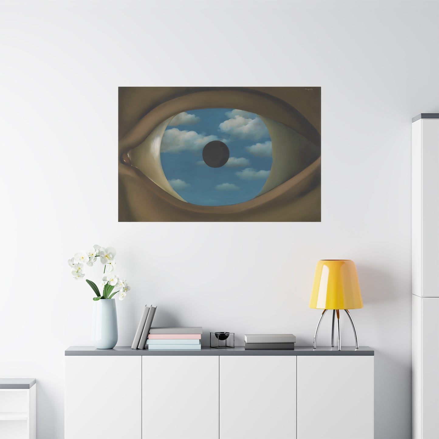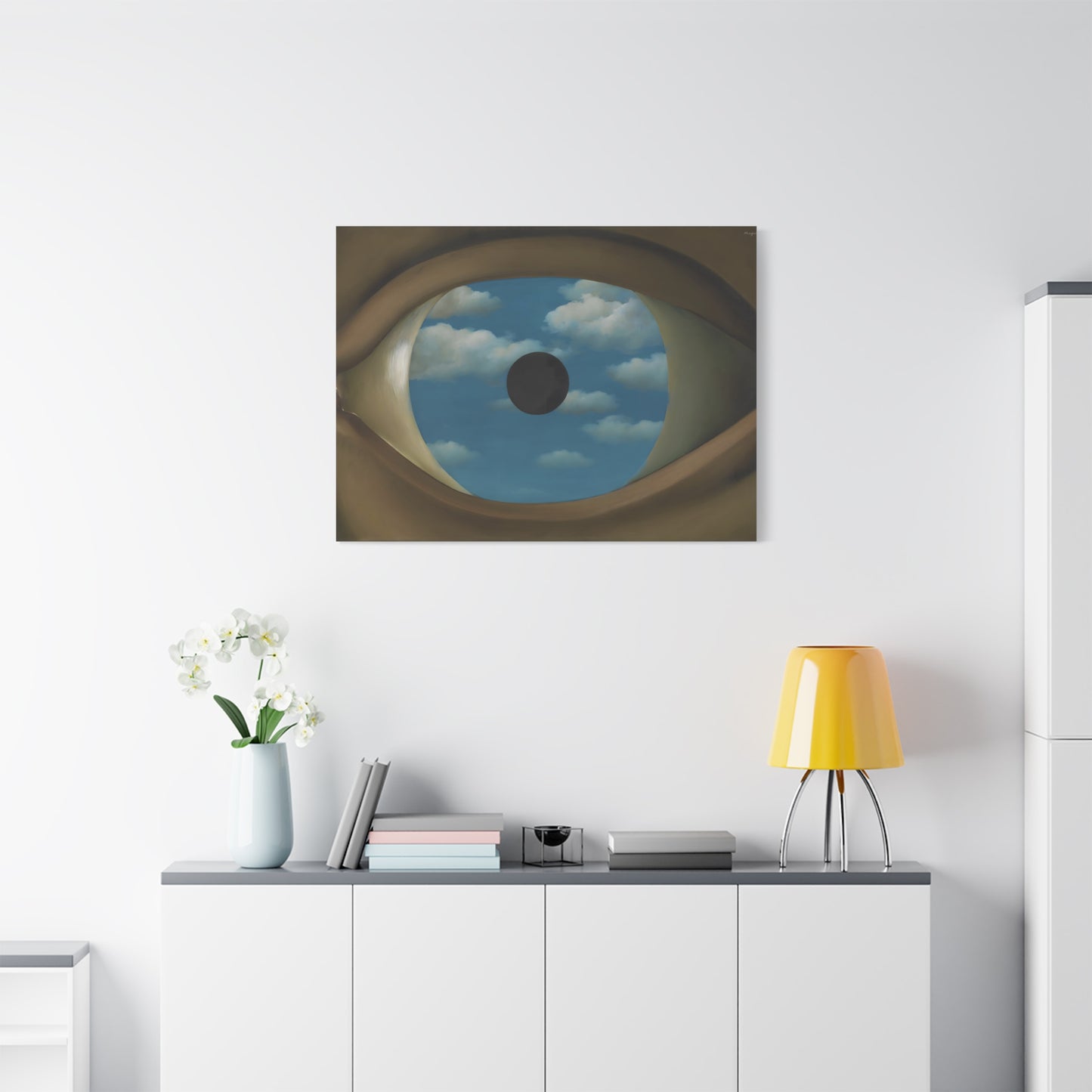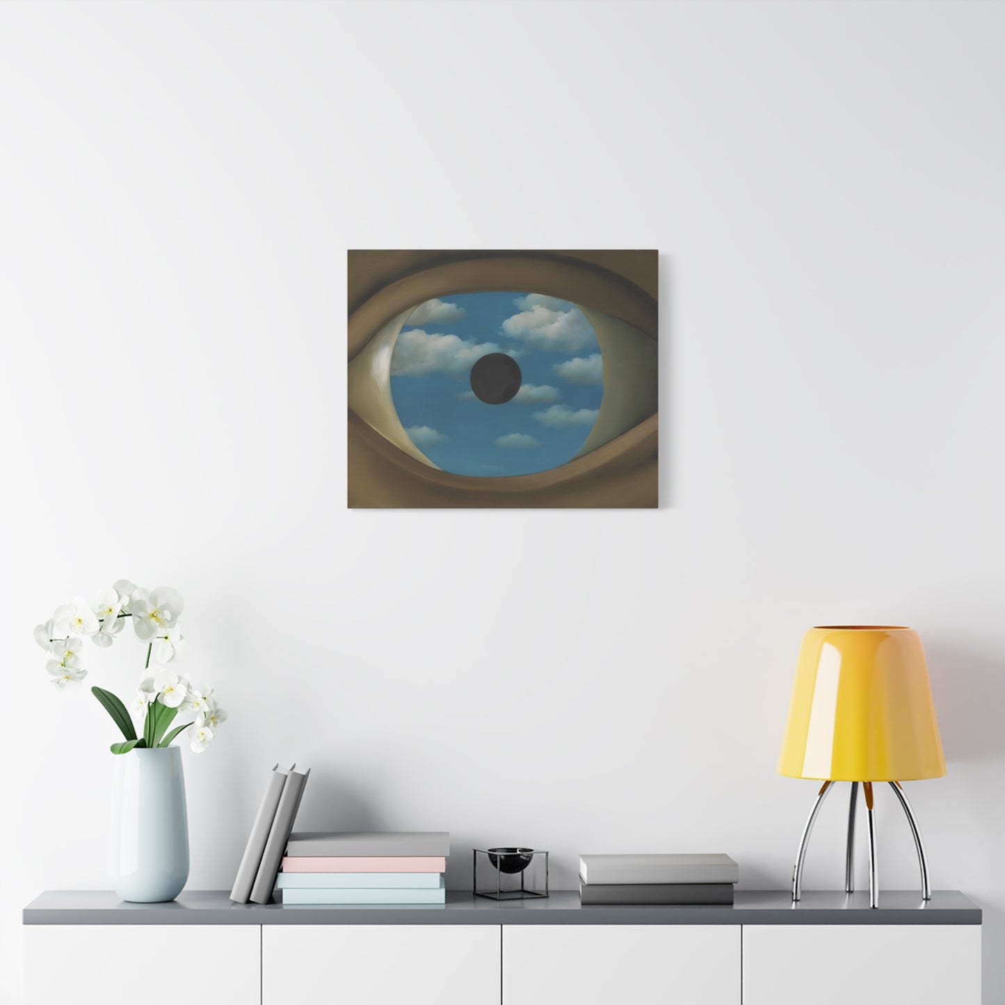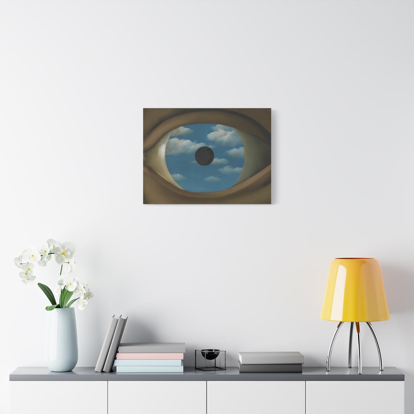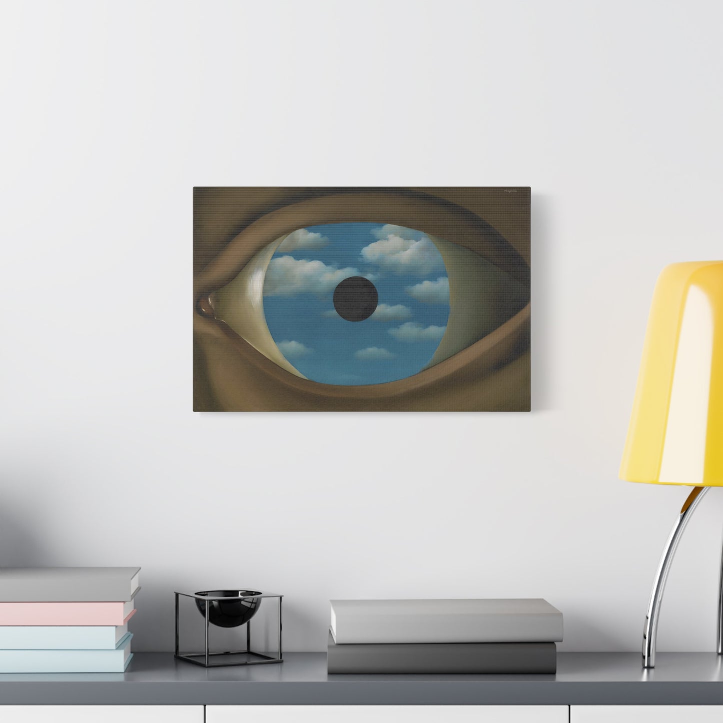 Experience the captivating allure of René Magritte's The False Mirror, a visionary masterpiece created in 1928 that will transport you to new dimensions of artistic wonder. Behold the hypnotic gaze of a giant eye suspended in a vast sky, reflecting a tranquil, endless blue. This iconic artwork is a gateway to introspection, beckoning you to explore the depths of perception and hidden truths. Its timeless symbolism and striking composition make it a must-have centerpiece for any art lover's collection. Transform your home into a gallery of intrigue and fascination with a canvas replication of The False Mirror, where every glance invites you to dive into the enigmatic world of Magritte. Unleash the power of imagination and make this extraordinary artwork a cherished part of your life.
