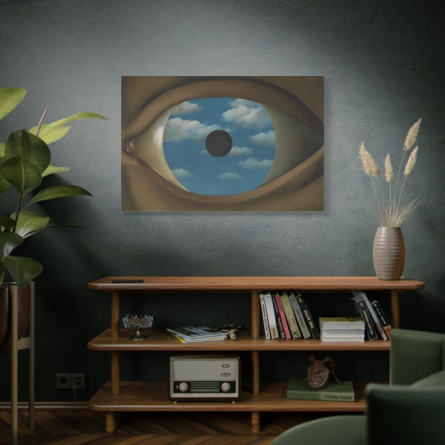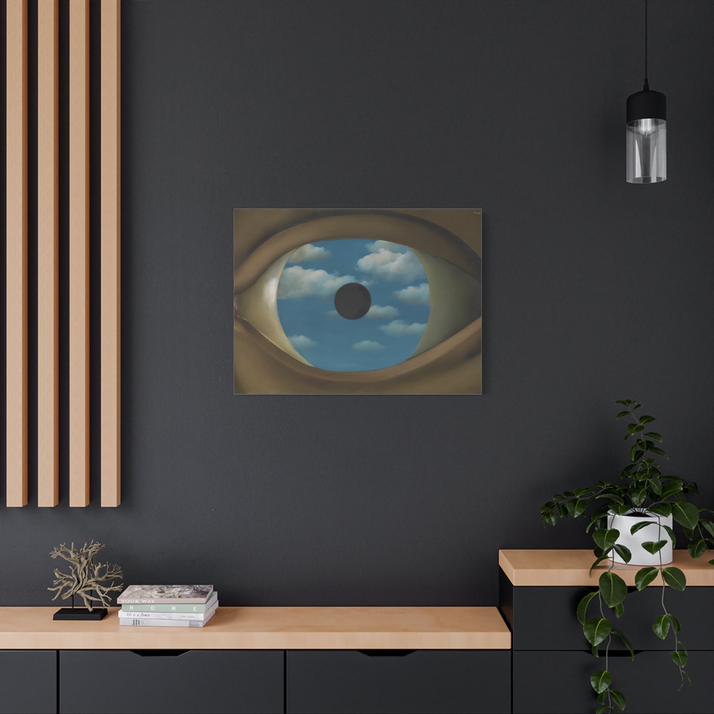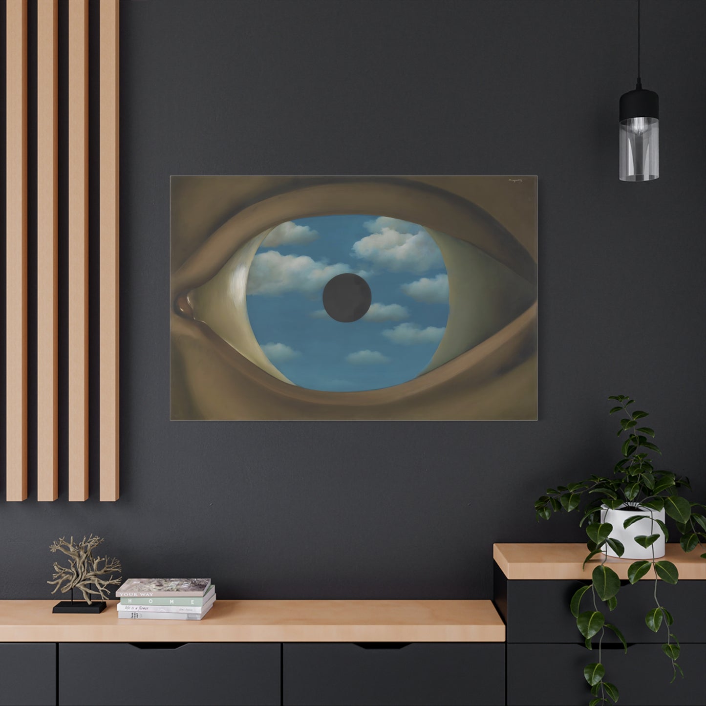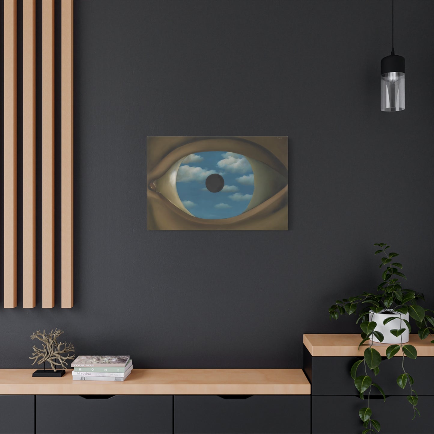 Experience the captivating allure of René Magritte's The False Mirror, a visionary masterpiece created in 1928 that will transport you to new dimensions of artistic wonder. Behold the hypnotic gaze of a giant eye suspended in a vast sky, reflecting a tranquil, endless blue. This iconic artwork is a gateway to introspection, beckoning you to explore the depths of perception and hidden truths. Its timeless symbolism and striking composition make it a must-have centerpiece for any art lover's collection. Transform your home into a gallery of intrigue and fascination with a canvas replication of The False Mirror, where every glance invites you to dive into the enigmatic world of Magritte. Unleash the power of imagination and make this extraordinary artwork a cherished part of your life.
