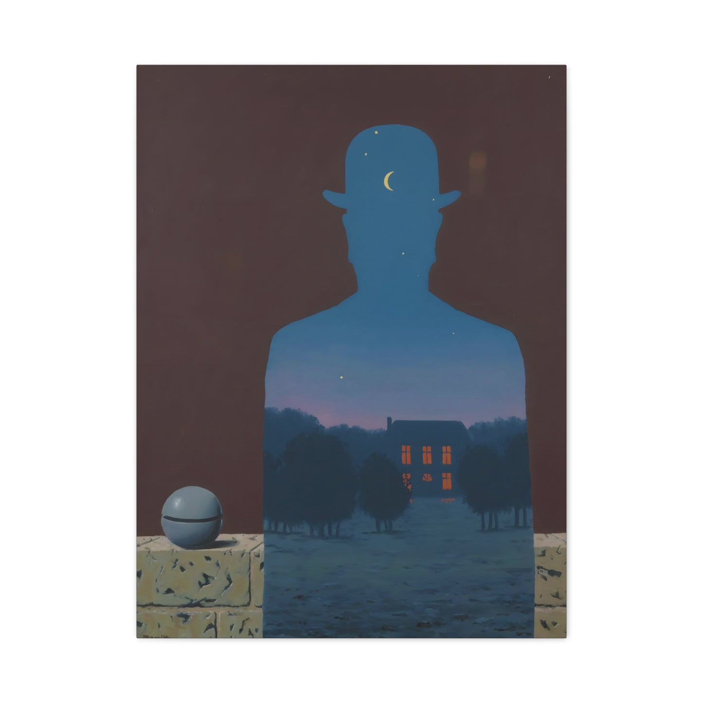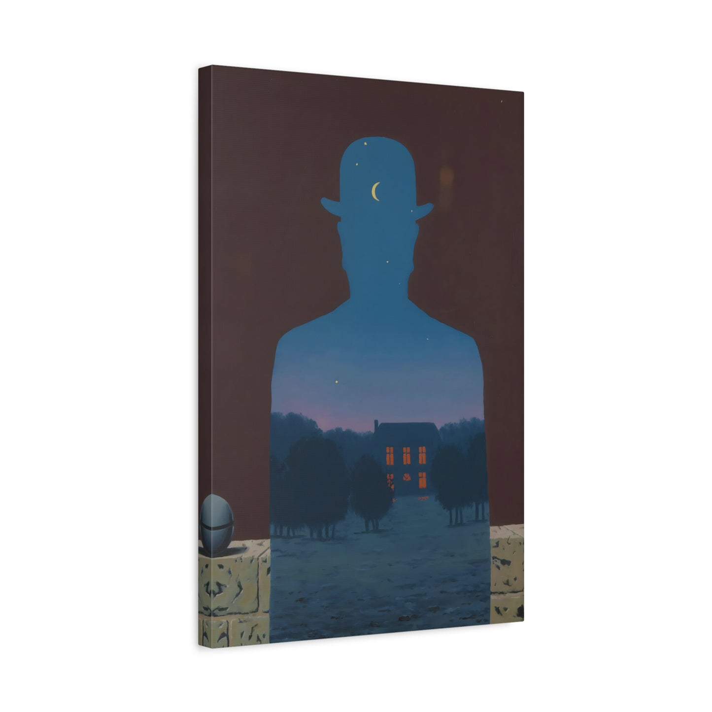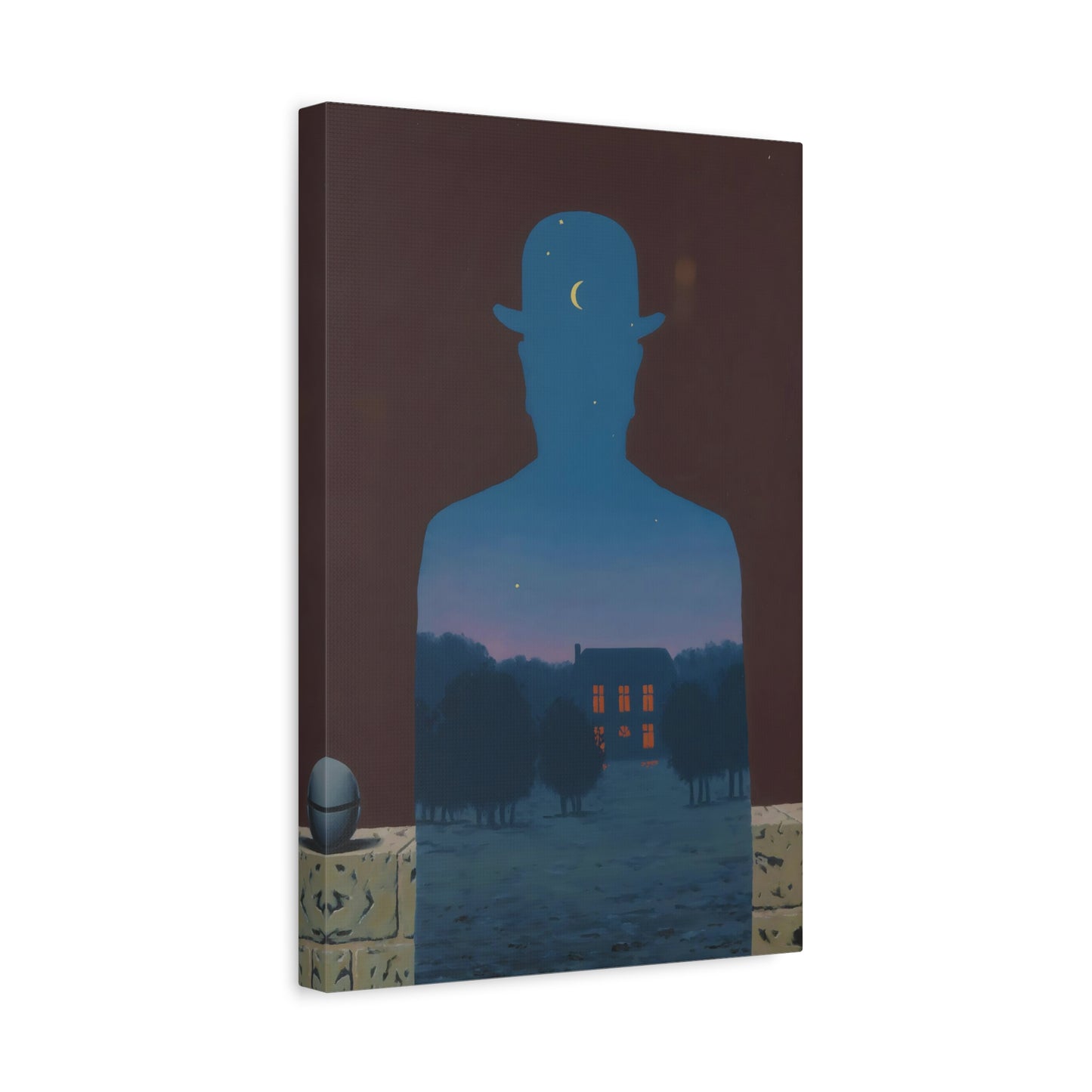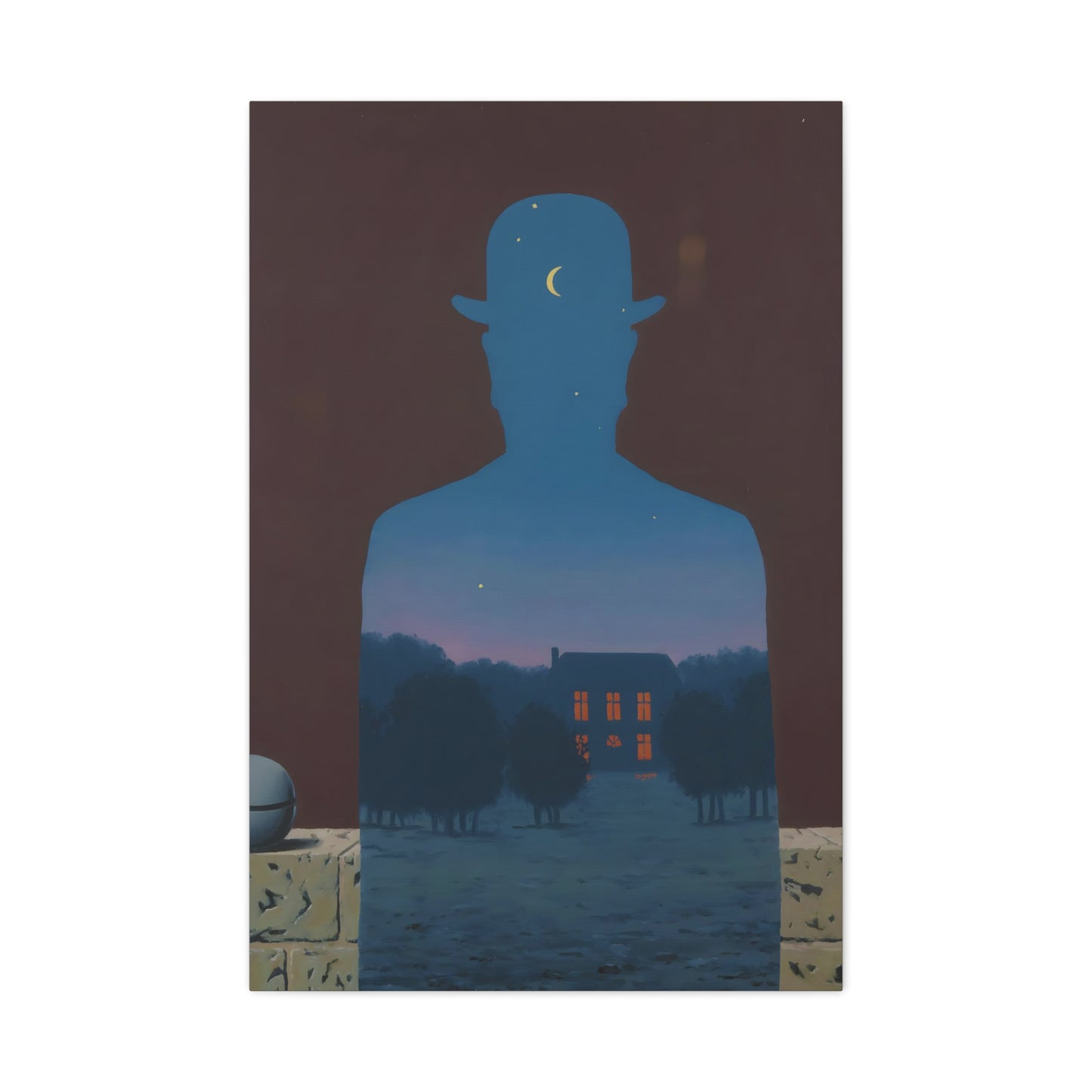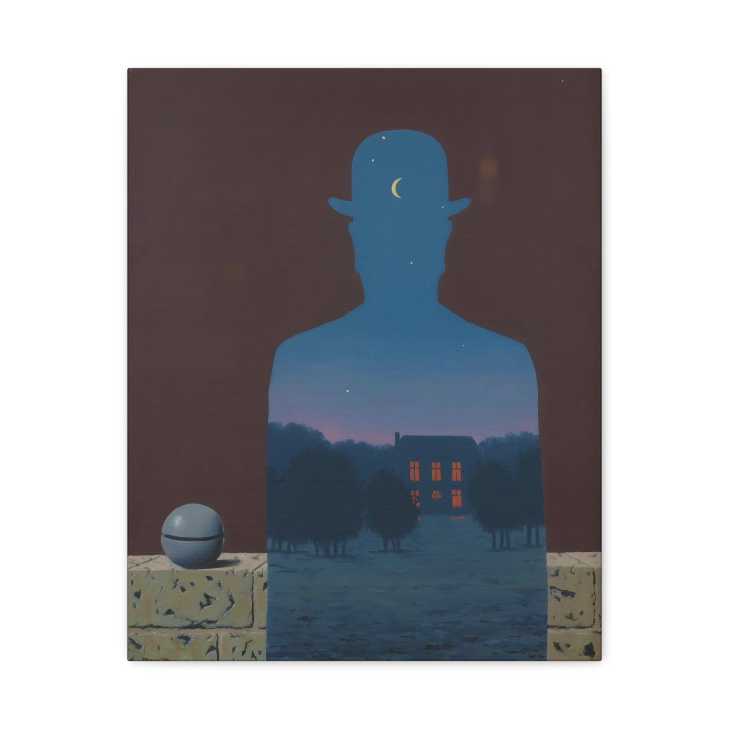 Indulge in the whimsical charm of René Magritte's masterpiece, The Happy Donor, created in 1966. Step into a world where ordinary objects intertwine with extraordinary imagination, as a red apple replaces the head of a suited man, eliciting a sense of intrigue and joy. This iconic artwork captures the essence of surrealism, inviting you to challenge the boundaries of reality and revel in the playfulness of the human spirit. With a canvas replication of The Happy Donor adorning your home, you infuse your space with a vibrant burst of color and artistic sophistication. Own a piece of artistic brilliance that will captivate guests, spark conversations, and ignite your imagination. Let this extraordinary artwork be a testament to your unique taste and appreciation for the extraordinary in the everyday.