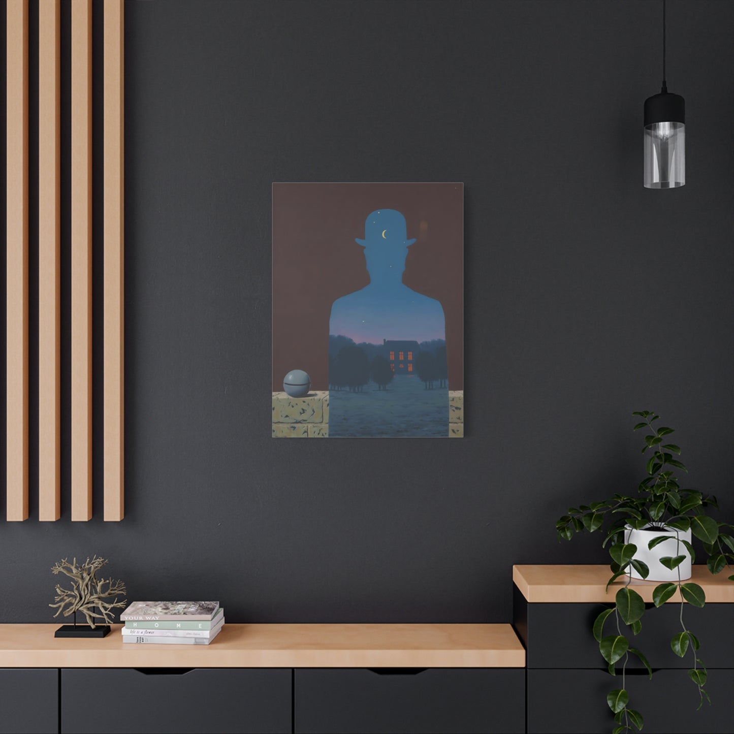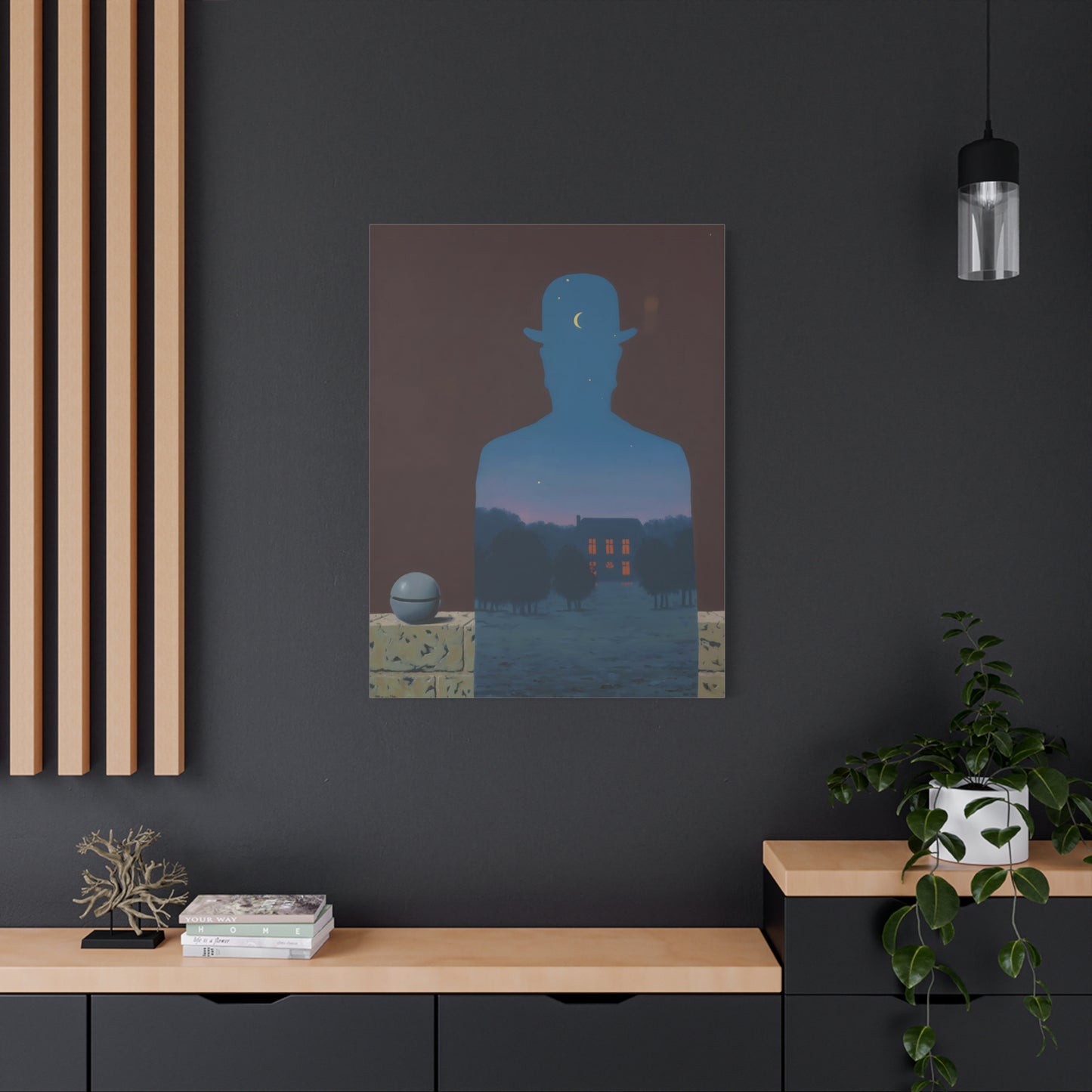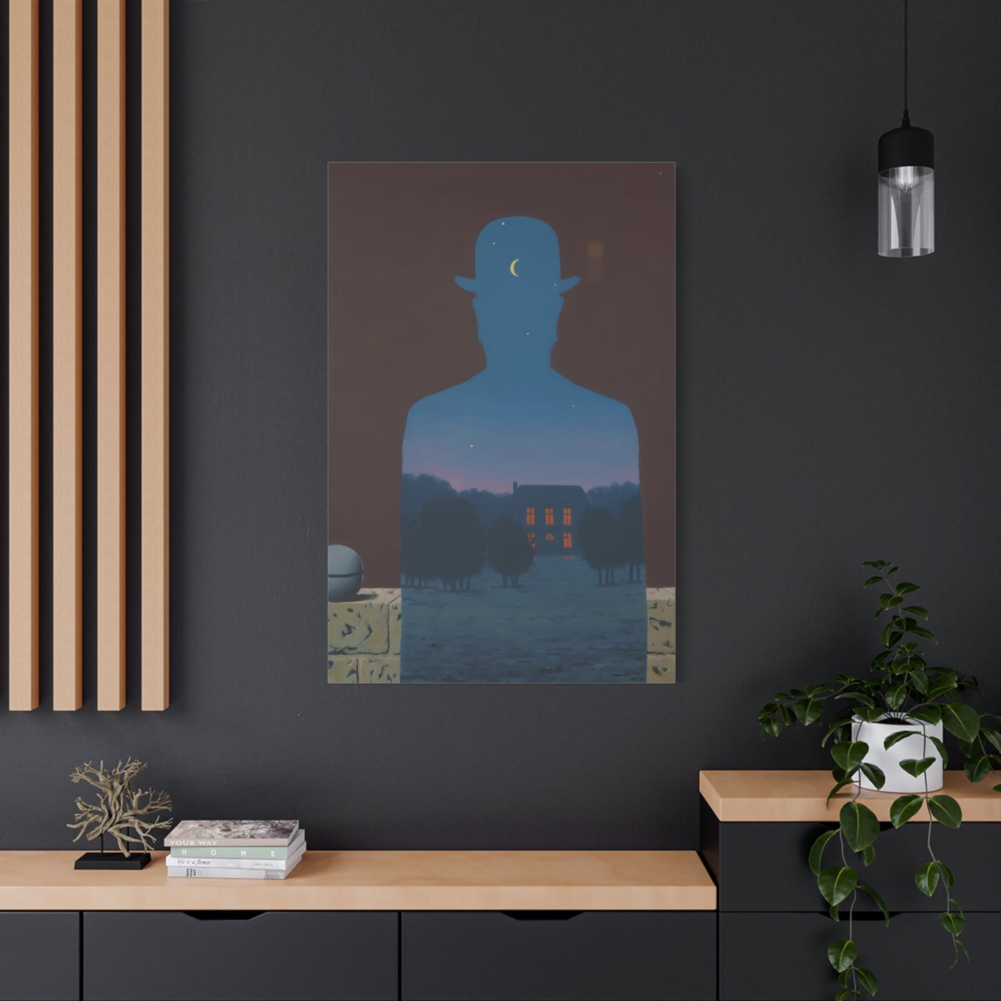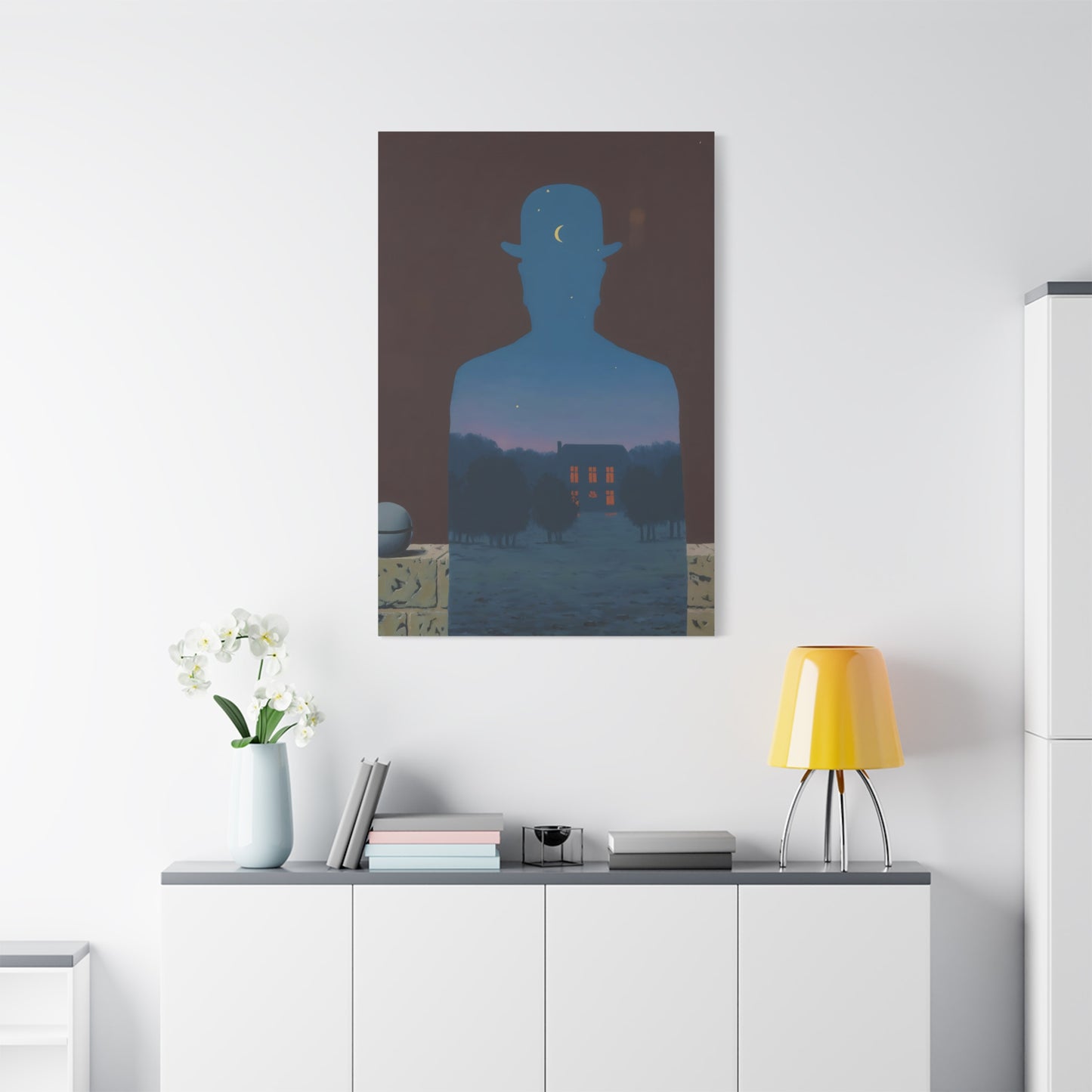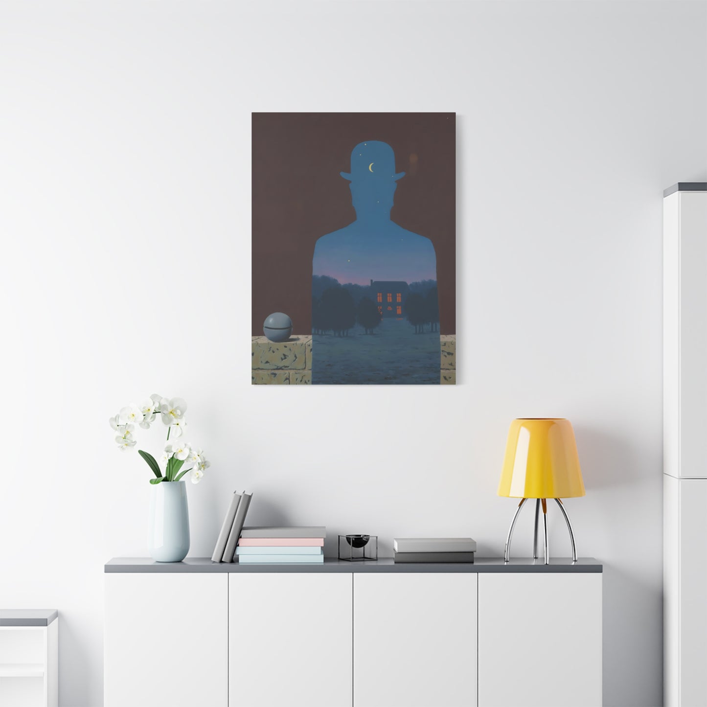 Indulge in the whimsical charm of René Magritte's masterpiece, The Happy Donor, created in 1966. Step into a world where ordinary objects intertwine with extraordinary imagination, as a red apple replaces the head of a suited man, eliciting a sense of intrigue and joy. This iconic artwork captures the essence of surrealism, inviting you to challenge the boundaries of reality and revel in the playfulness of the human spirit. With a canvas replication of The Happy Donor adorning your home, you infuse your space with a vibrant burst of color and artistic sophistication. Own a piece of artistic brilliance that will captivate guests, spark conversations, and ignite your imagination. Let this extraordinary artwork be a testament to your unique taste and appreciation for the extraordinary in the everyday.