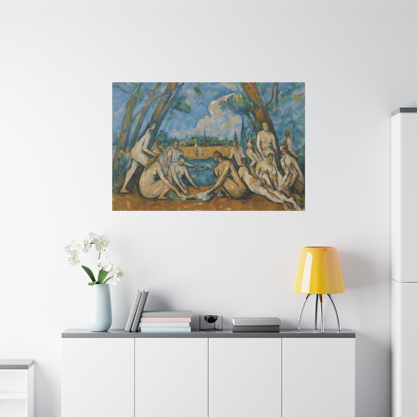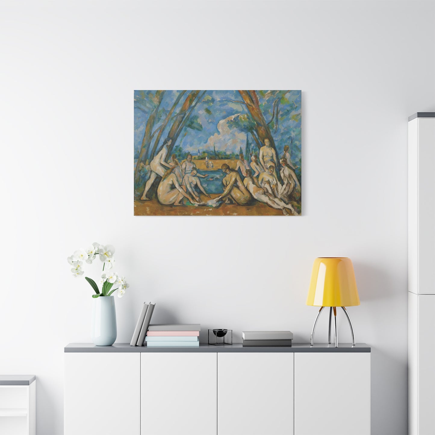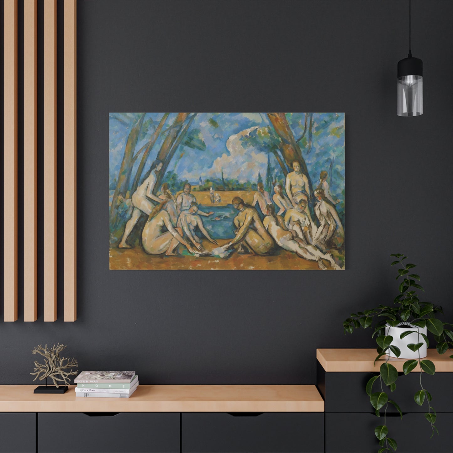 Indulge in the timeless beauty of The Large Bathers by the revered artist Paul Cézanne, painted between 1898 and 1905. This magnificent masterpiece showcases Cézanne's revolutionary approach to form and color, redefining the boundaries of artistic expression. Transport yourself to a serene oasis, where graceful figures bathe amidst nature's splendor, rendered with exquisite precision and captivating brushwork. Owning this extraordinary artwork will elevate your home to new heights of sophistication and artistic grandeur. Let The Large Bathers become the captivating centerpiece that mesmerizes your guests, infusing your space with tranquility and aesthetic wonder. Embrace the legacy of Cézanne and immerse yourself in the harmonious embrace of art and nature with this exquisite canvas replication.