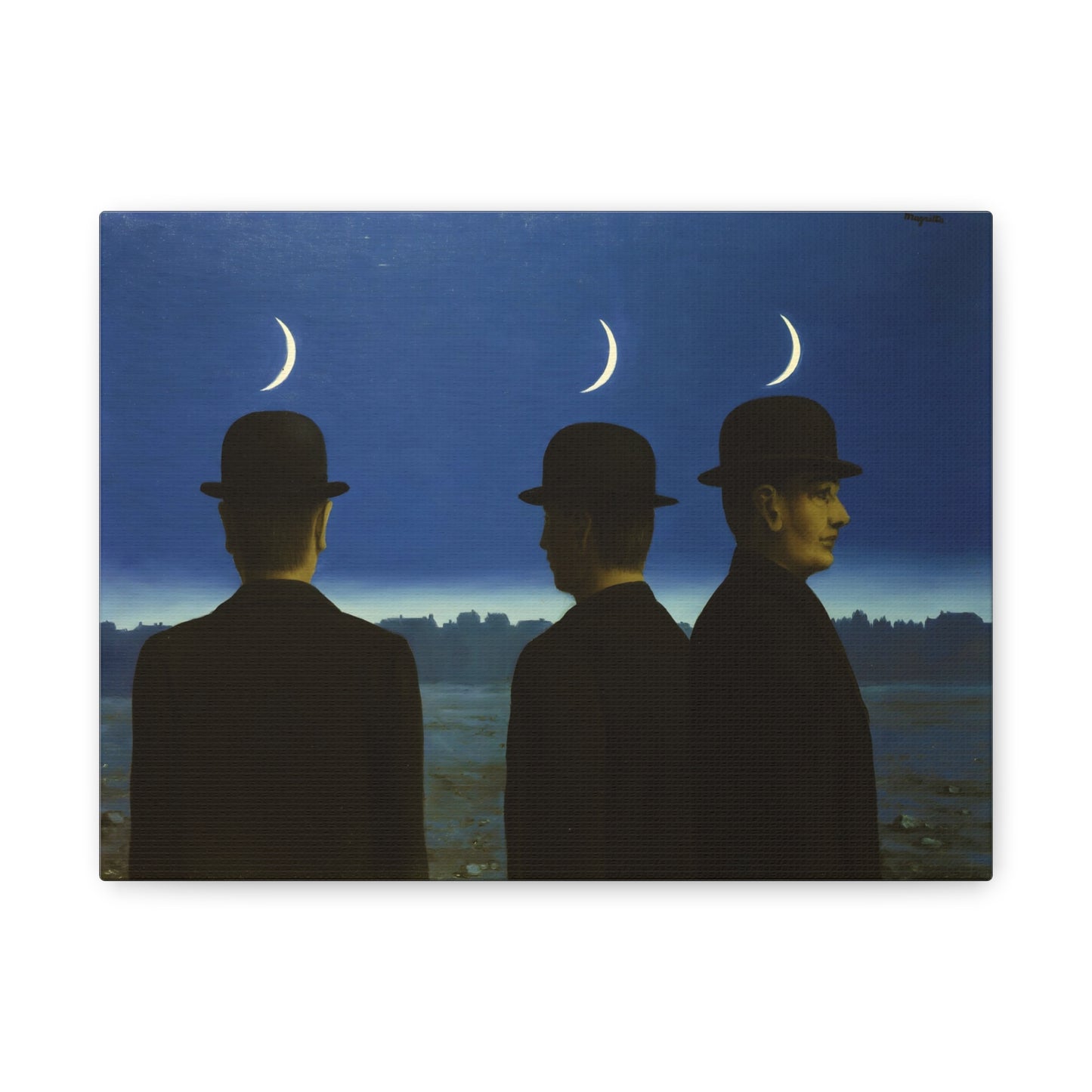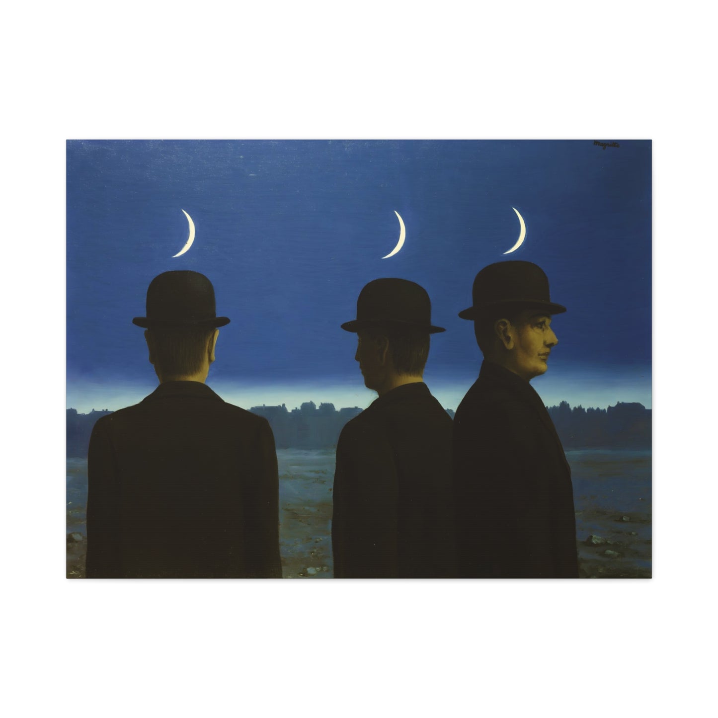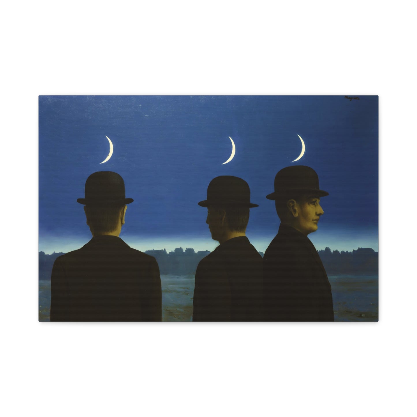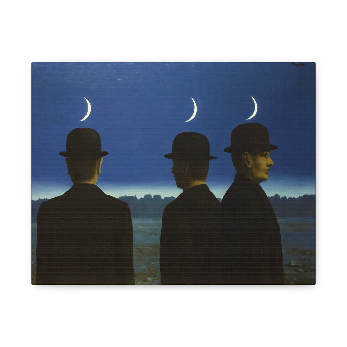Embark on an extraordinary visual journey with René Magritte's masterpiece, The Mysteries of the Horizon, created in 1955. Imagine a vast landscape with a giant bird obscuring the sun, defying the laws of nature and inviting you to explore the depths of imagination. This iconic artwork enthralls with its enigmatic symbolism and surreal beauty. With a canvas replication of The Mysteries of the Horizon, you invite an atmosphere of wonder and intellectual stimulation into your home, captivating both the eye and the mind. Let this captivating artwork transport you to a world where the ordinary is transformed into the extraordinary, and ignite your space with the magic of Magritte's visionary artistry.