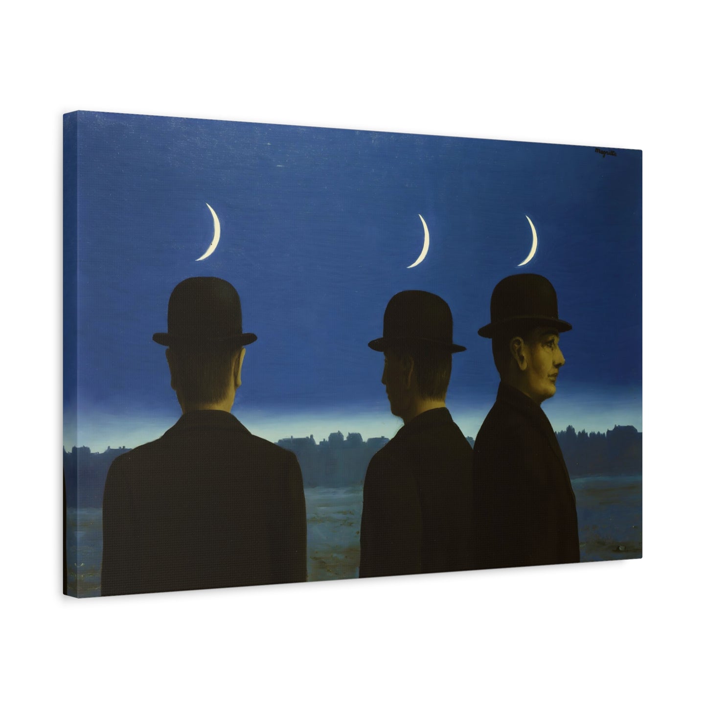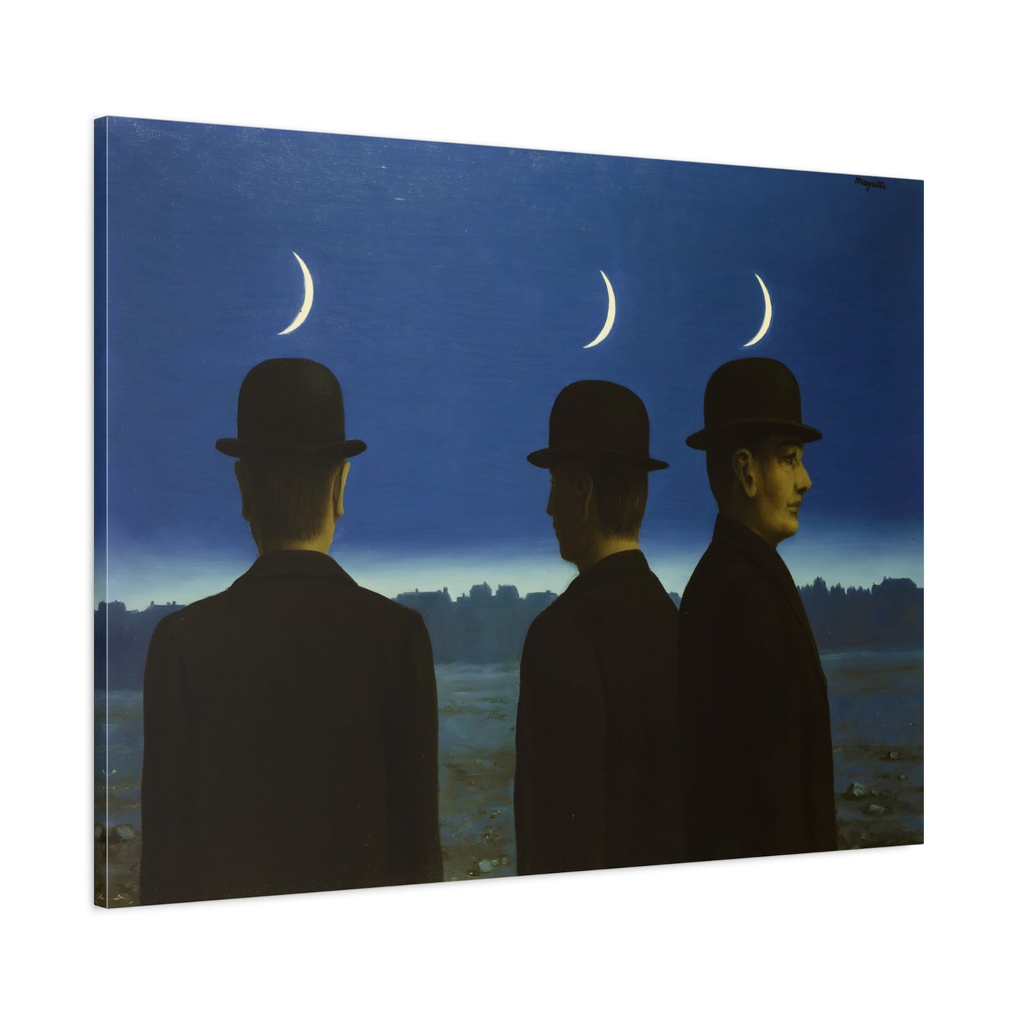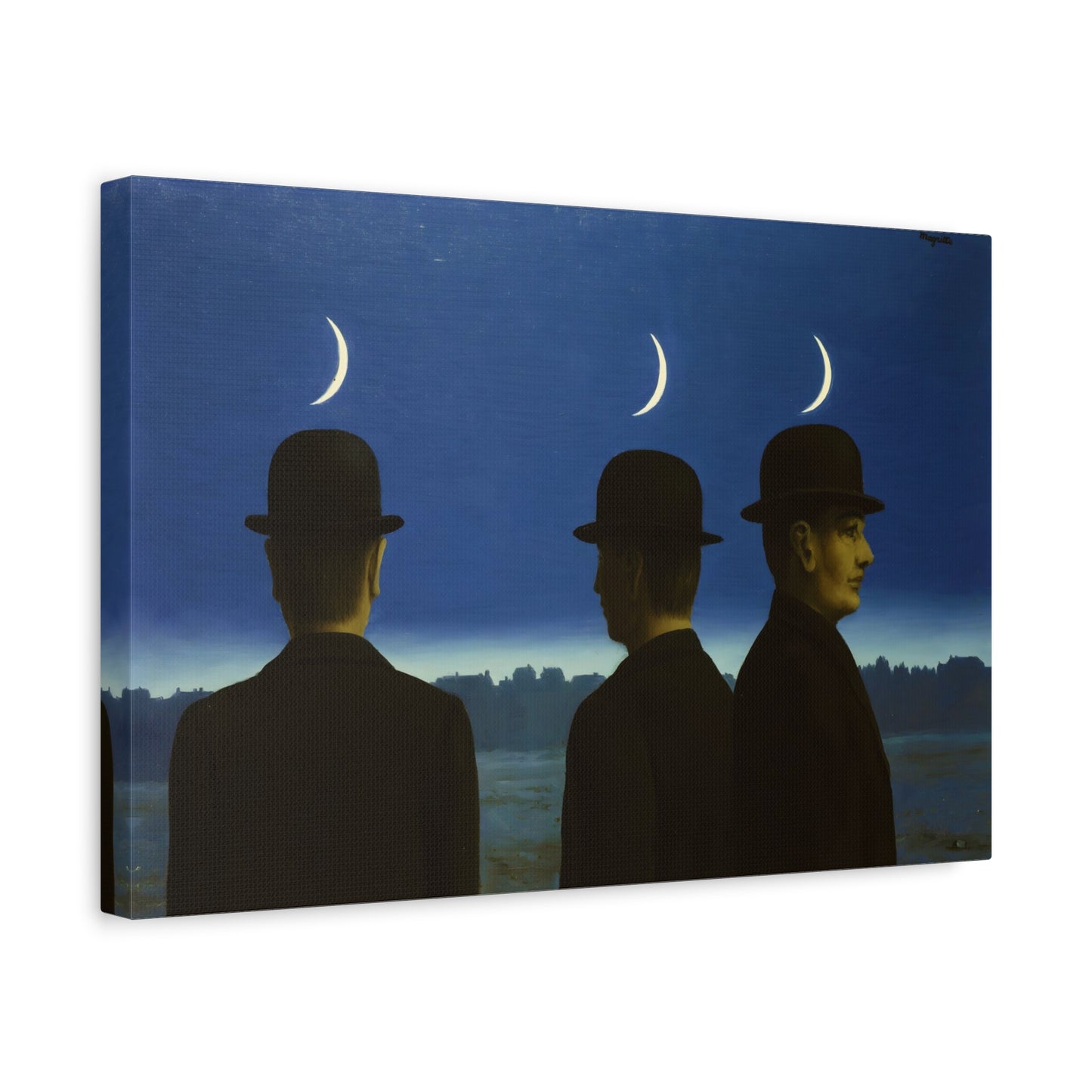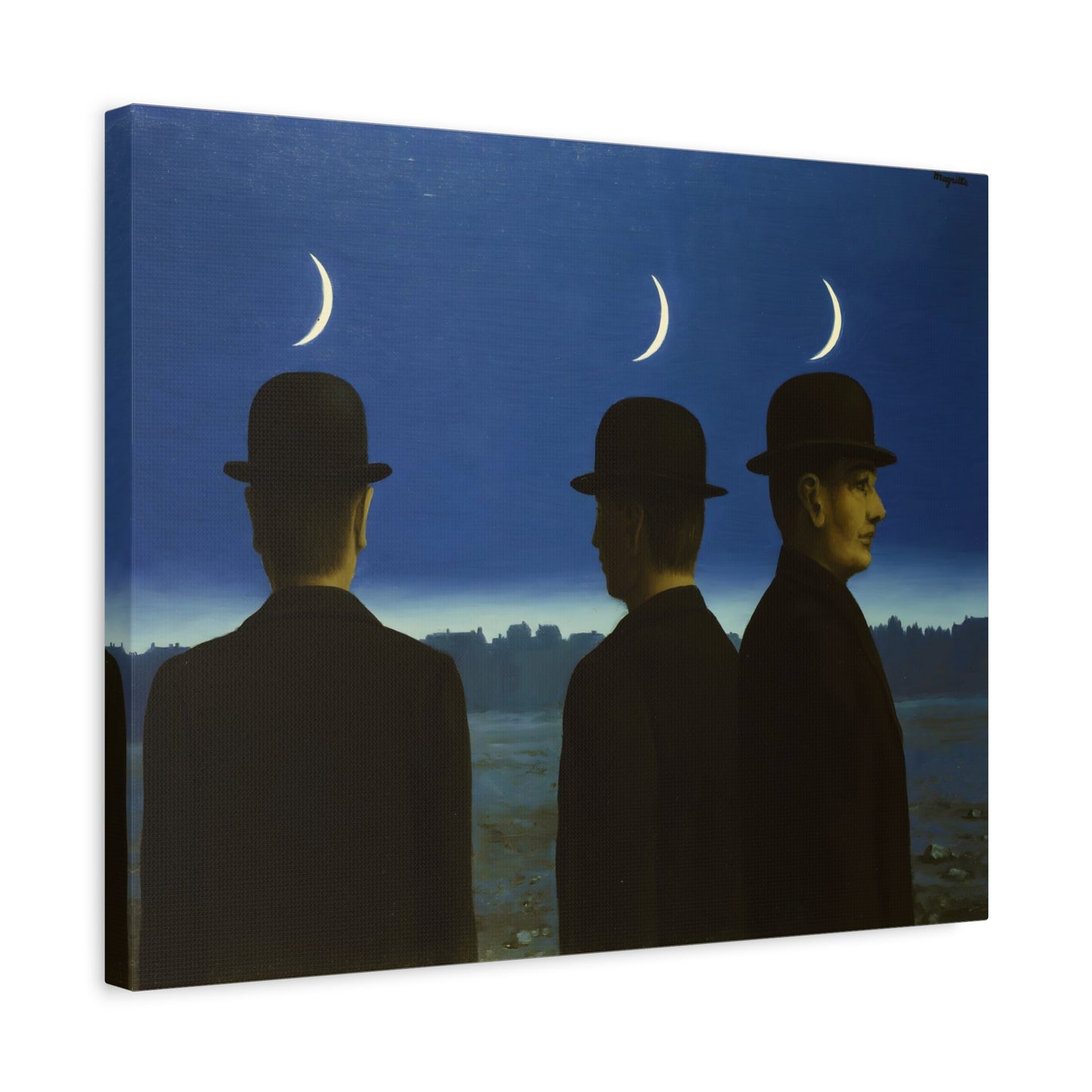 Embark on an extraordinary visual journey with René Magritte's masterpiece, The Mysteries of the Horizon, created in 1955. Imagine a vast landscape with a giant bird obscuring the sun, defying the laws of nature and inviting you to explore the depths of imagination. This iconic artwork enthralls with its enigmatic symbolism and surreal beauty. With a canvas replication of The Mysteries of the Horizon, you invite an atmosphere of wonder and intellectual stimulation into your home, captivating both the eye and the mind. Let this captivating artwork transport you to a world where the ordinary is transformed into the extraordinary, and ignite your space with the magic of Magritte's visionary artistry.