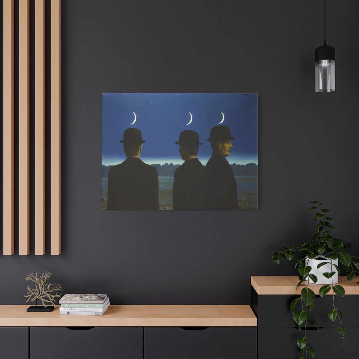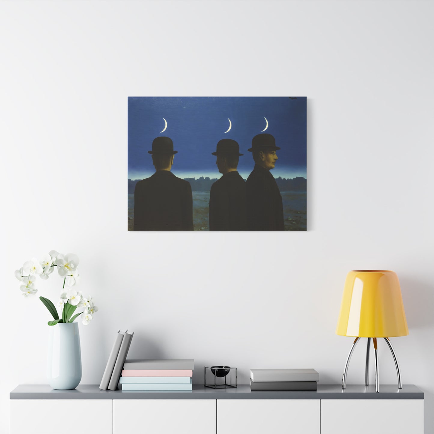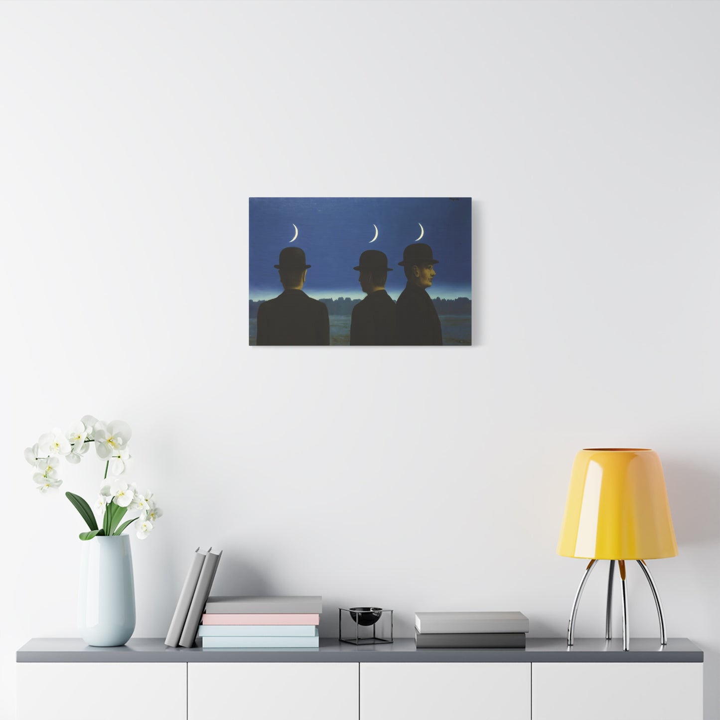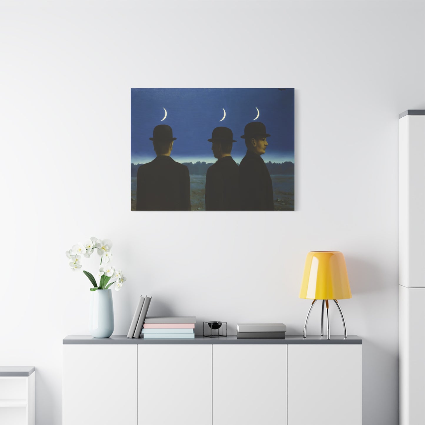 Embark on an extraordinary visual journey with René Magritte's masterpiece, The Mysteries of the Horizon, created in 1955. Imagine a vast landscape with a giant bird obscuring the sun, defying the laws of nature and inviting you to explore the depths of imagination. This iconic artwork enthralls with its enigmatic symbolism and surreal beauty. With a canvas replication of The Mysteries of the Horizon, you invite an atmosphere of wonder and intellectual stimulation into your home, captivating both the eye and the mind. Let this captivating artwork transport you to a world where the ordinary is transformed into the extraordinary, and ignite your space with the magic of Magritte's visionary artistry.