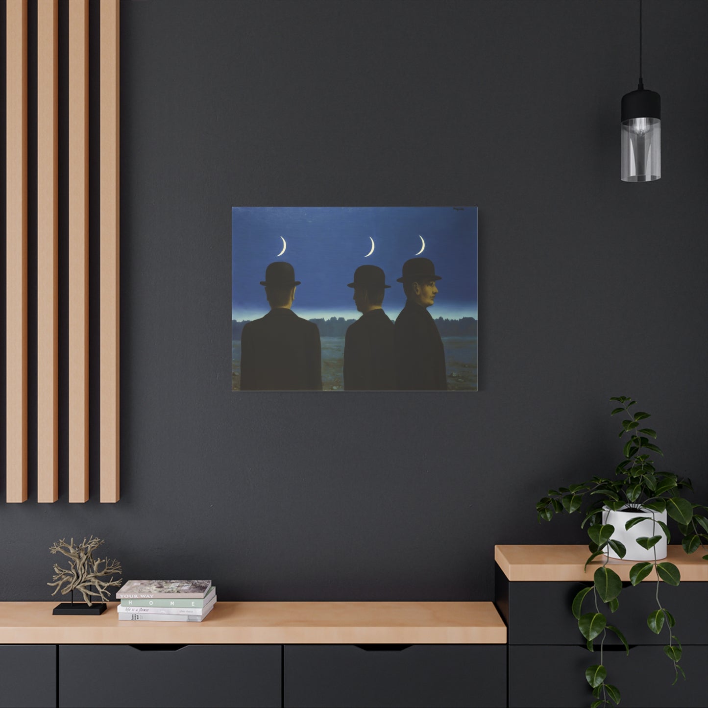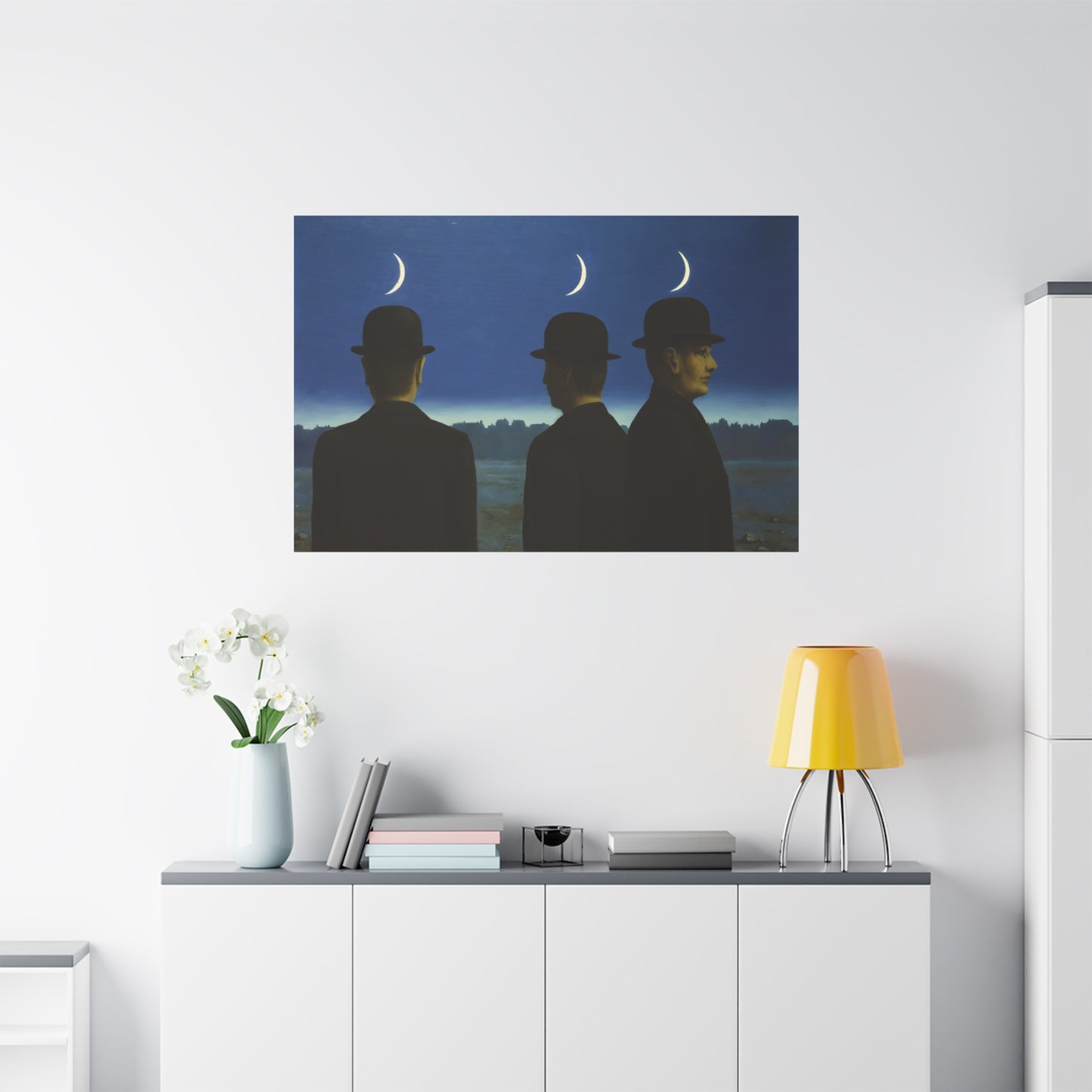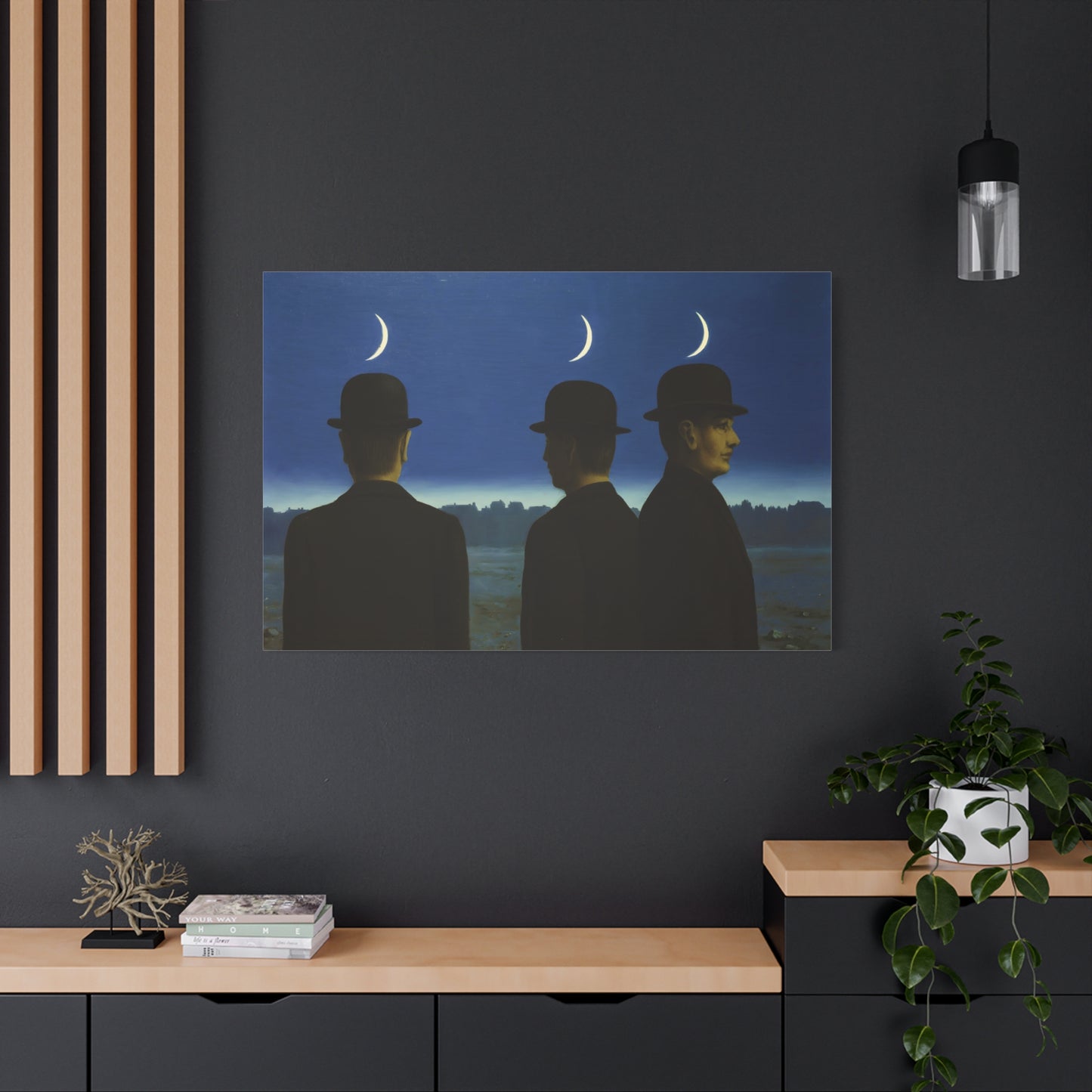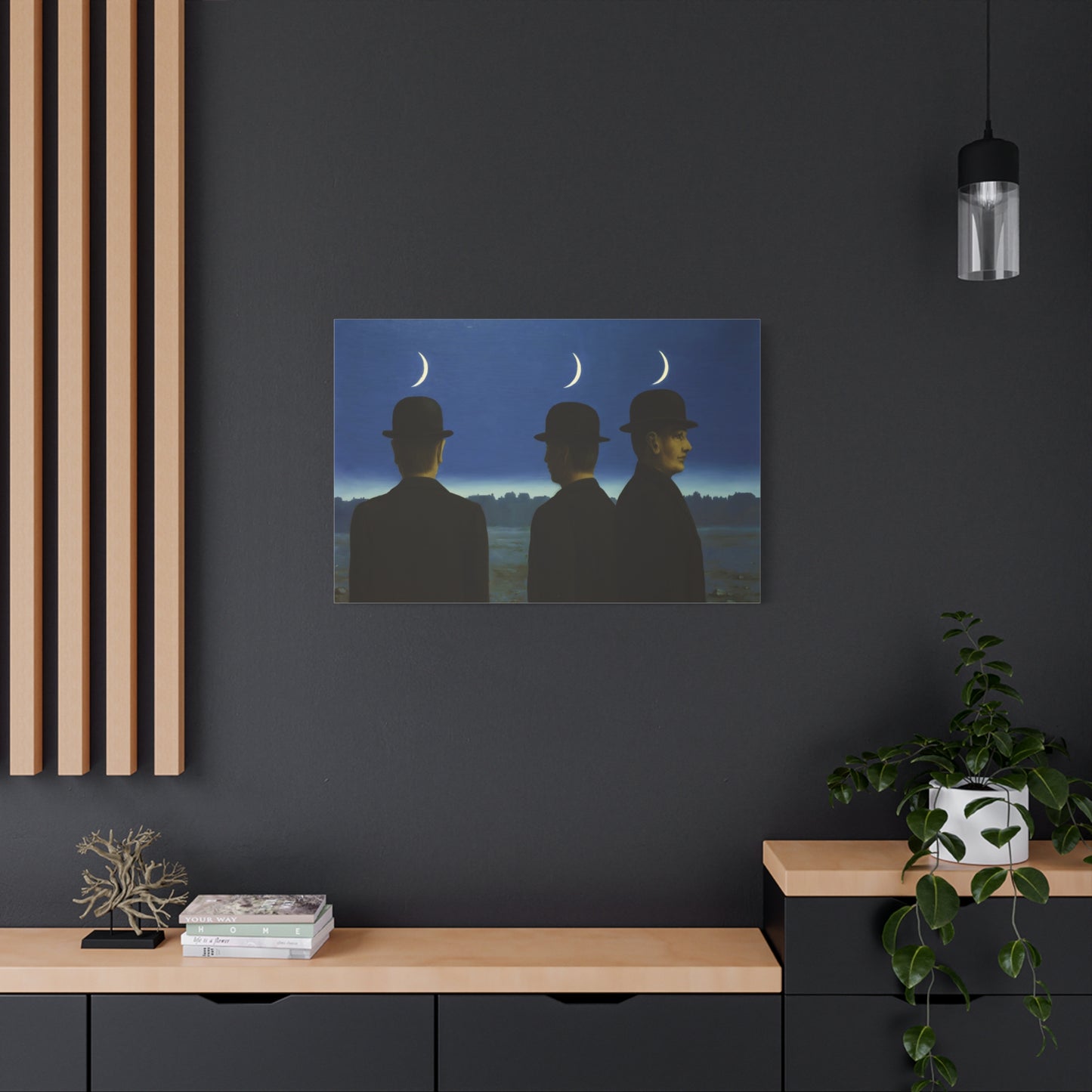 Embark on an extraordinary visual journey with René Magritte's masterpiece, The Mysteries of the Horizon, created in 1955. Imagine a vast landscape with a giant bird obscuring the sun, defying the laws of nature and inviting you to explore the depths of imagination. This iconic artwork enthralls with its enigmatic symbolism and surreal beauty. With a canvas replication of The Mysteries of the Horizon, you invite an atmosphere of wonder and intellectual stimulation into your home, captivating both the eye and the mind. Let this captivating artwork transport you to a world where the ordinary is transformed into the extraordinary, and ignite your space with the magic of Magritte's visionary artistry.