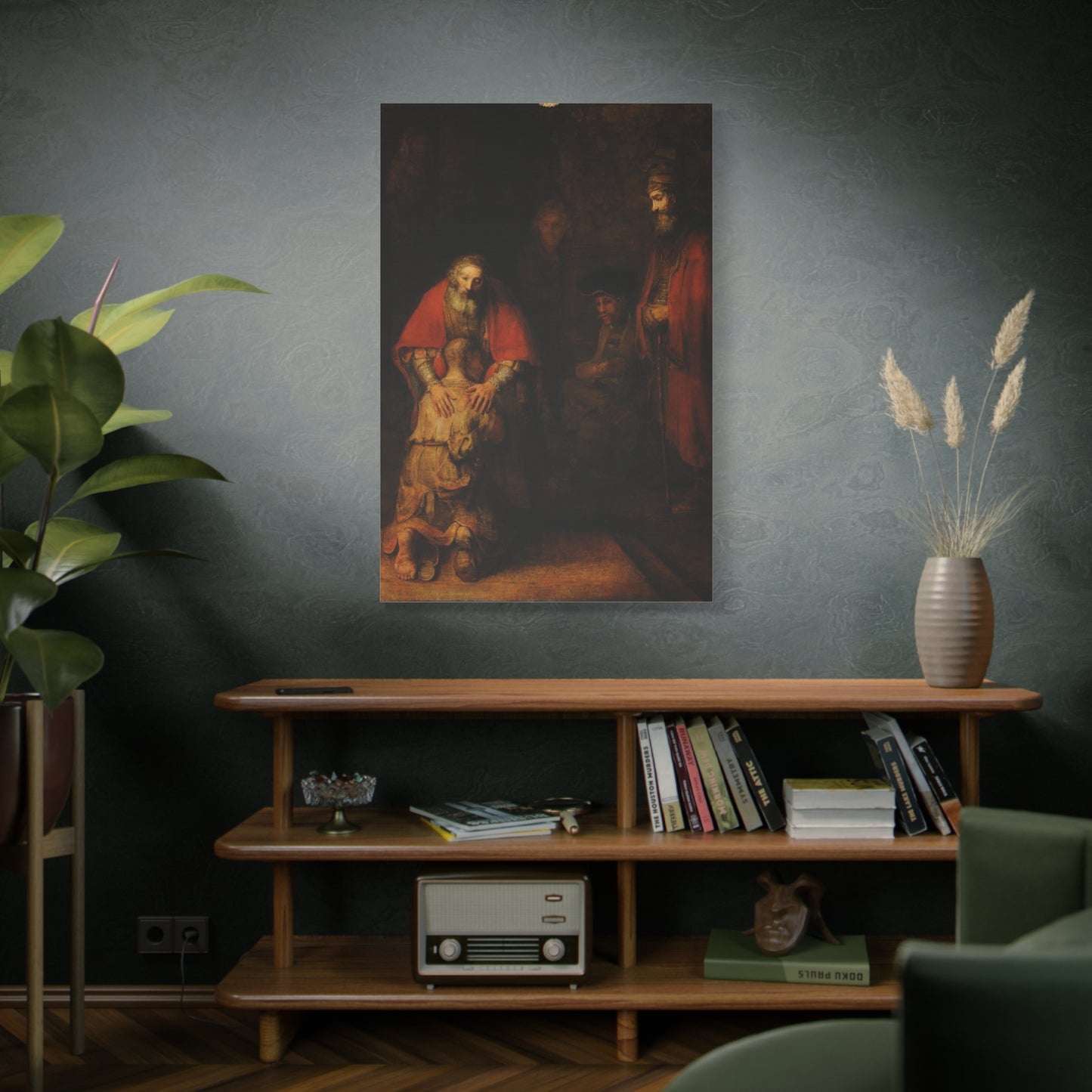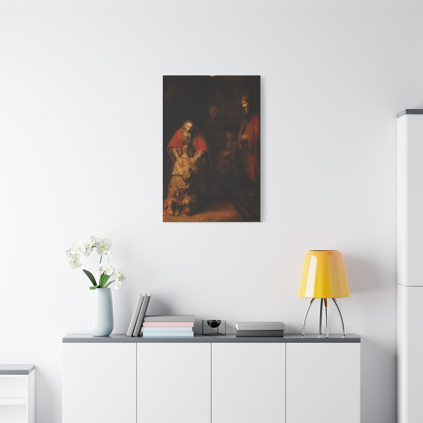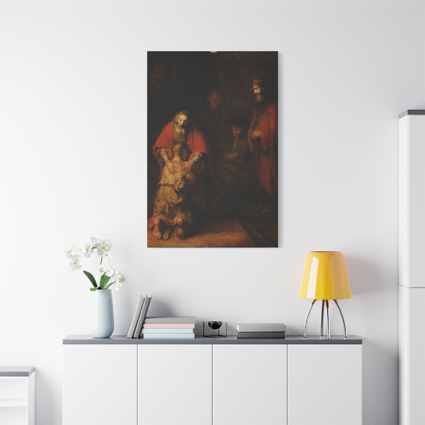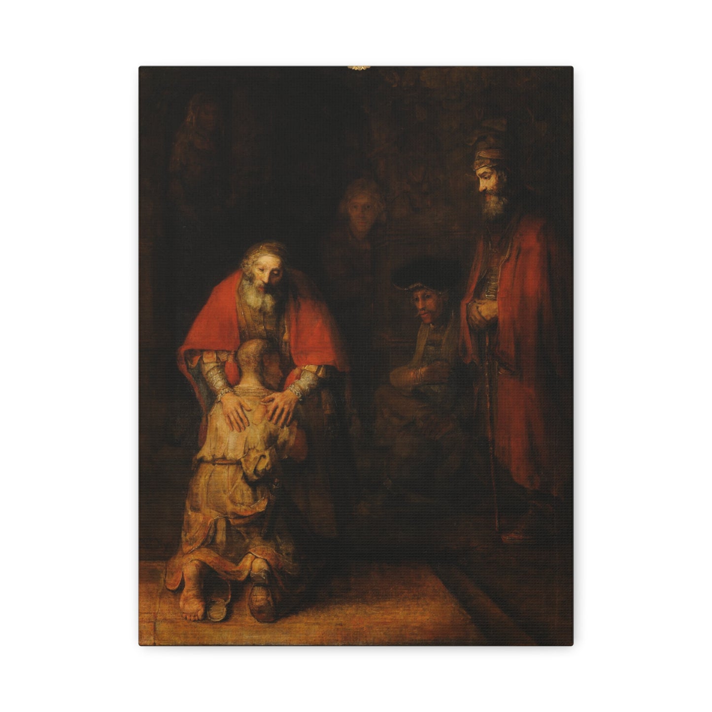 Experience the profound emotional journey of Rembrandt's The Return of the Prodigal Son, a masterpiece of compassion, forgiveness, and redemption. Painted in 1669, this poignant artwork portrays the biblical parable with remarkable depth and tenderness. Rembrandt's masterful use of light, shadow, and intricate details captures the essence of the narrative, evoking a range of emotions that resonate with viewers. Owning a canvas art replication of this iconic painting allows you to invite this transformative narrative into your home, creating a serene and contemplative atmosphere. Let the power of Rembrandt's brushstrokes and the timeless message of forgiveness inspire and uplift your space, making it a sanctuary of introspection and grace. Embrace the spiritual and artistic significance of The Return of the Prodigal Son and let it become a cherished centerpiece in your art collection.
