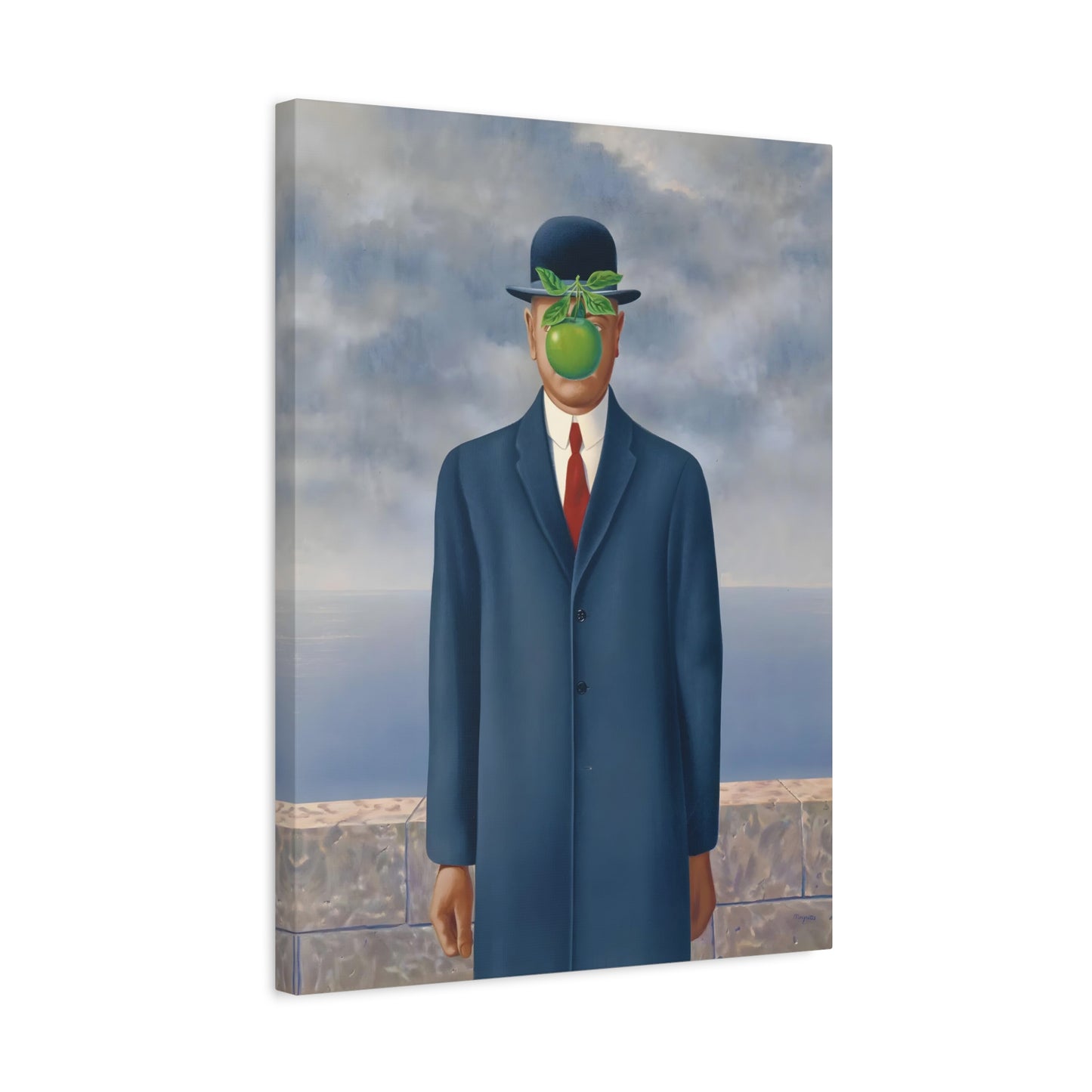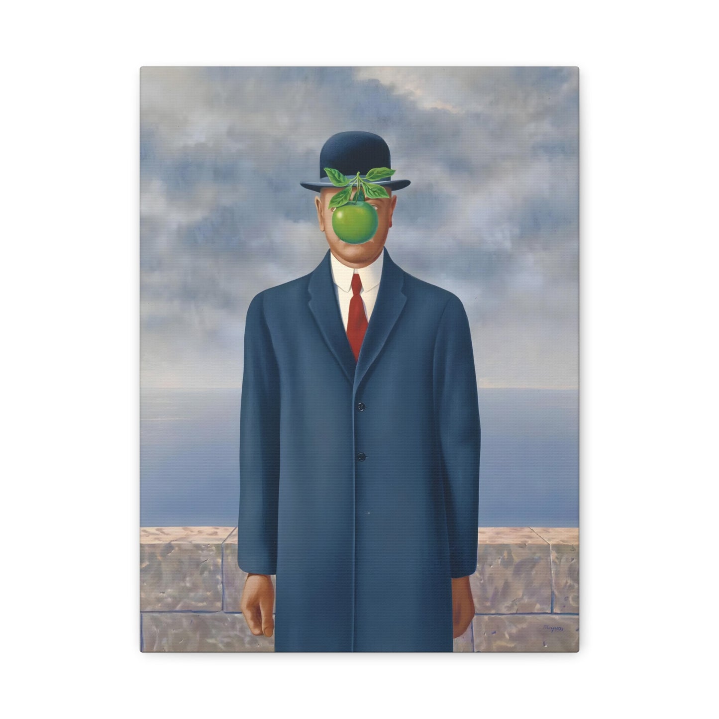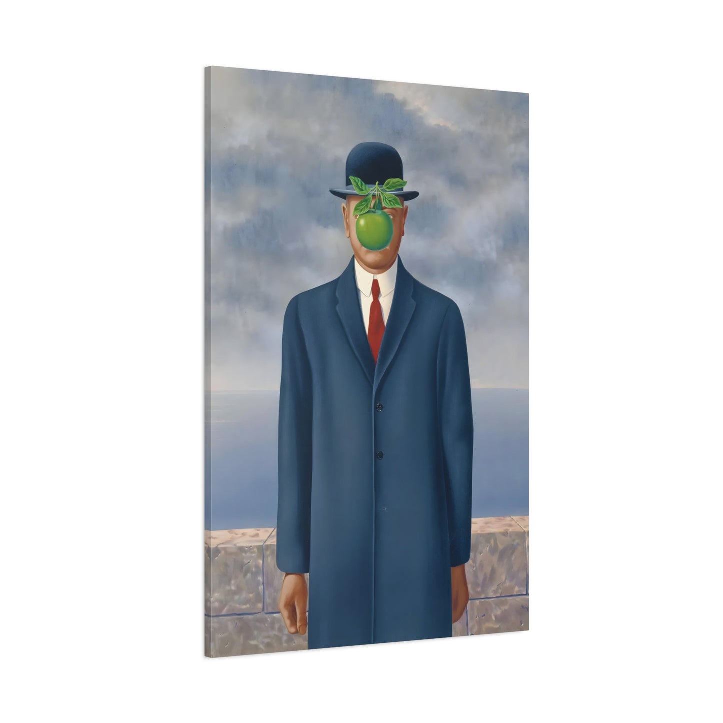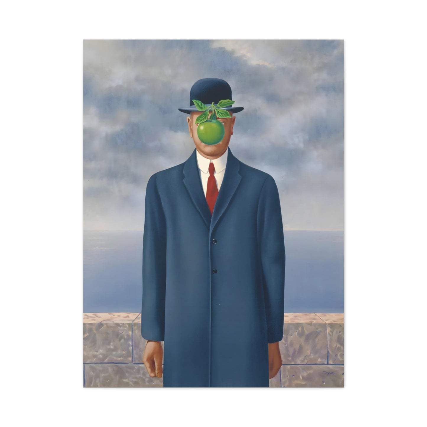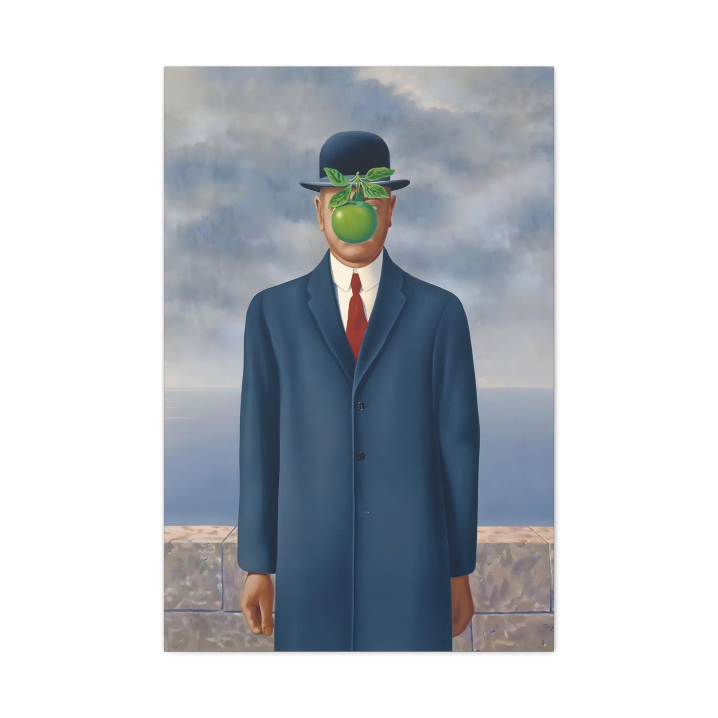 The Son of Man, created in 1964 by the renowned surrealist artist René Magritte, is a captivating masterpiece that will ignite your imagination and transform your living space into a realm of mystery and wonder. This iconic artwork features a sharply dressed man in a bowler hat, his face obscured by a hovering green apple. Its enigmatic composition beckons you to explore the depths of symbolism and invites contemplation on themes of identity, perception, and hidden truths. Owning a canvas replication of The Son of Man is like owning a portal to the surreal world of Magritte, a gateway to inspiration and intellectual stimulation. Elevate your home with this conversation-starting gem that will enchant all who lay eyes upon it.
