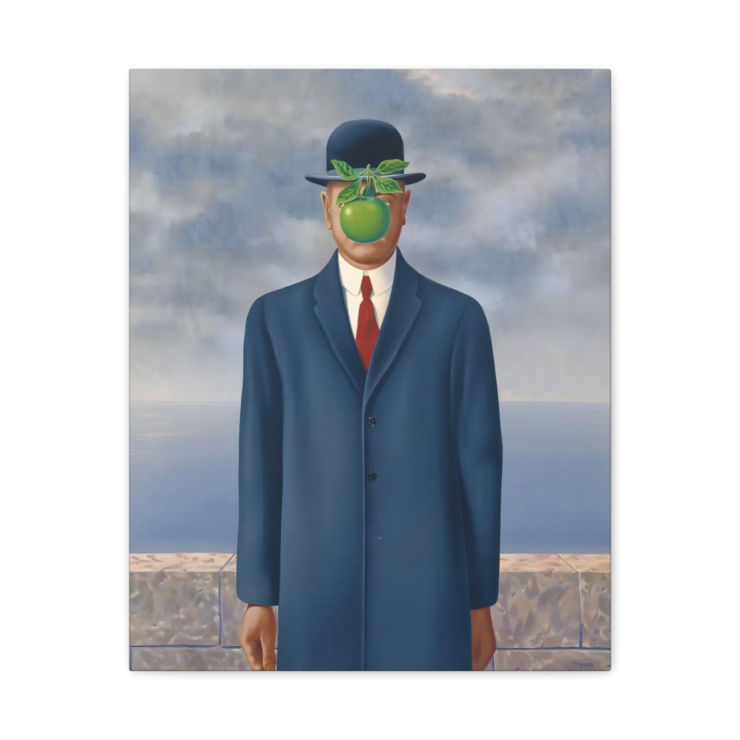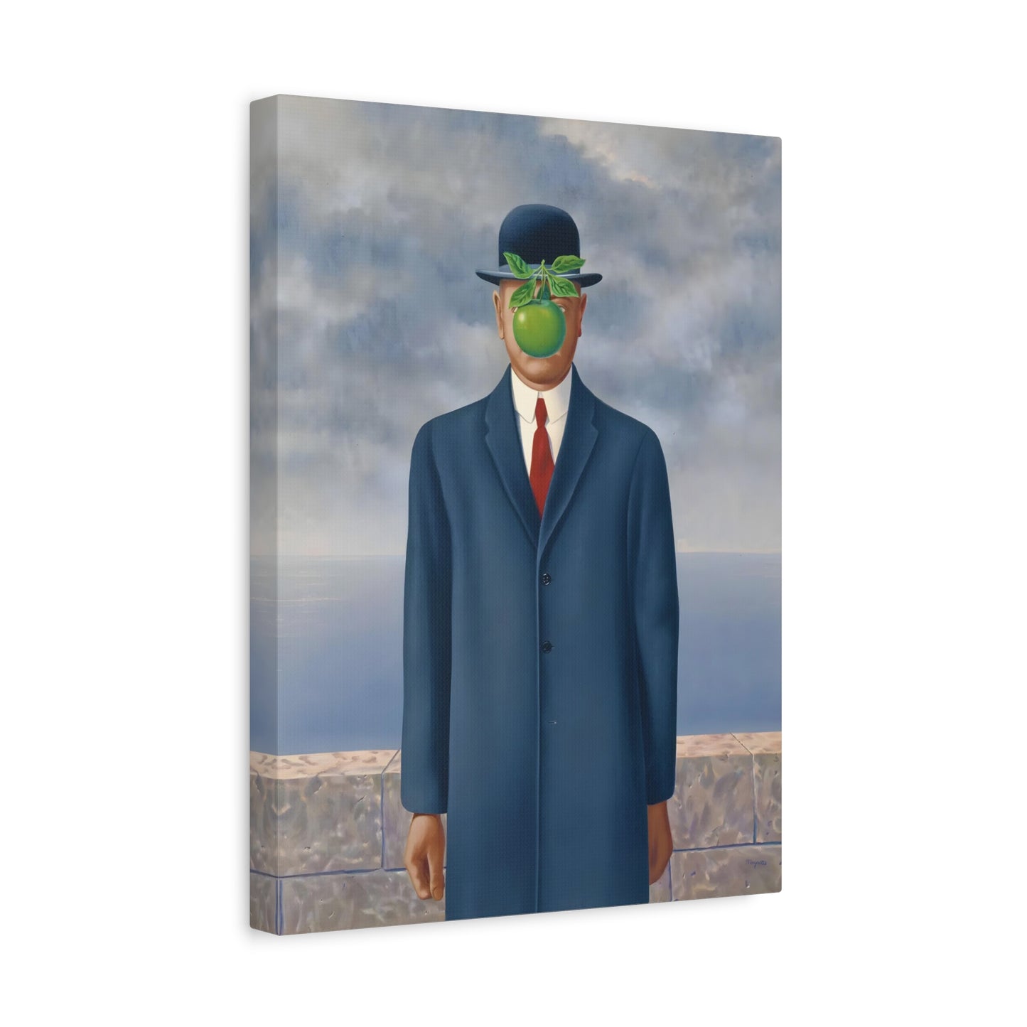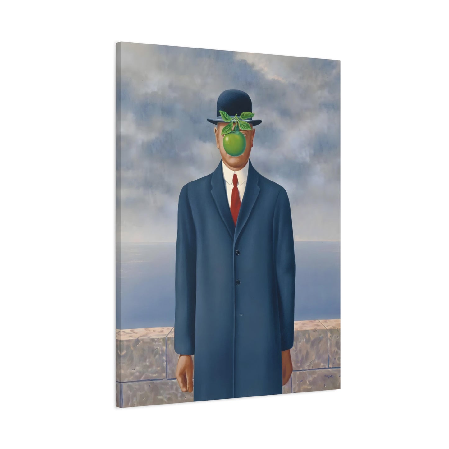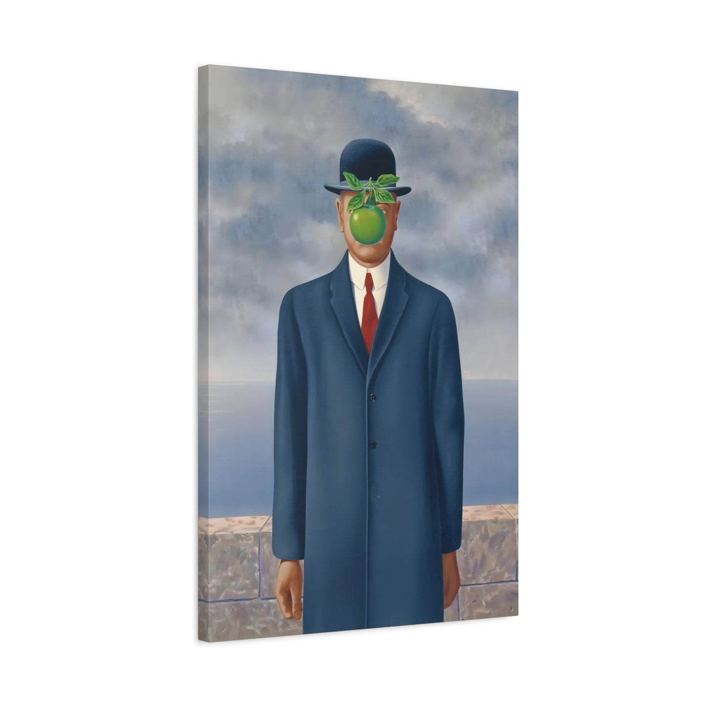 The Son of Man, created in 1964 by the renowned surrealist artist René Magritte, is a captivating masterpiece that will ignite your imagination and transform your living space into a realm of mystery and wonder. This iconic artwork features a sharply dressed man in a bowler hat, his face obscured by a hovering green apple. Its enigmatic composition beckons you to explore the depths of symbolism and invites contemplation on themes of identity, perception, and hidden truths. Owning a canvas replication of The Son of Man is like owning a portal to the surreal world of Magritte, a gateway to inspiration and intellectual stimulation. Elevate your home with this conversation-starting gem that will enchant all who lay eyes upon it.