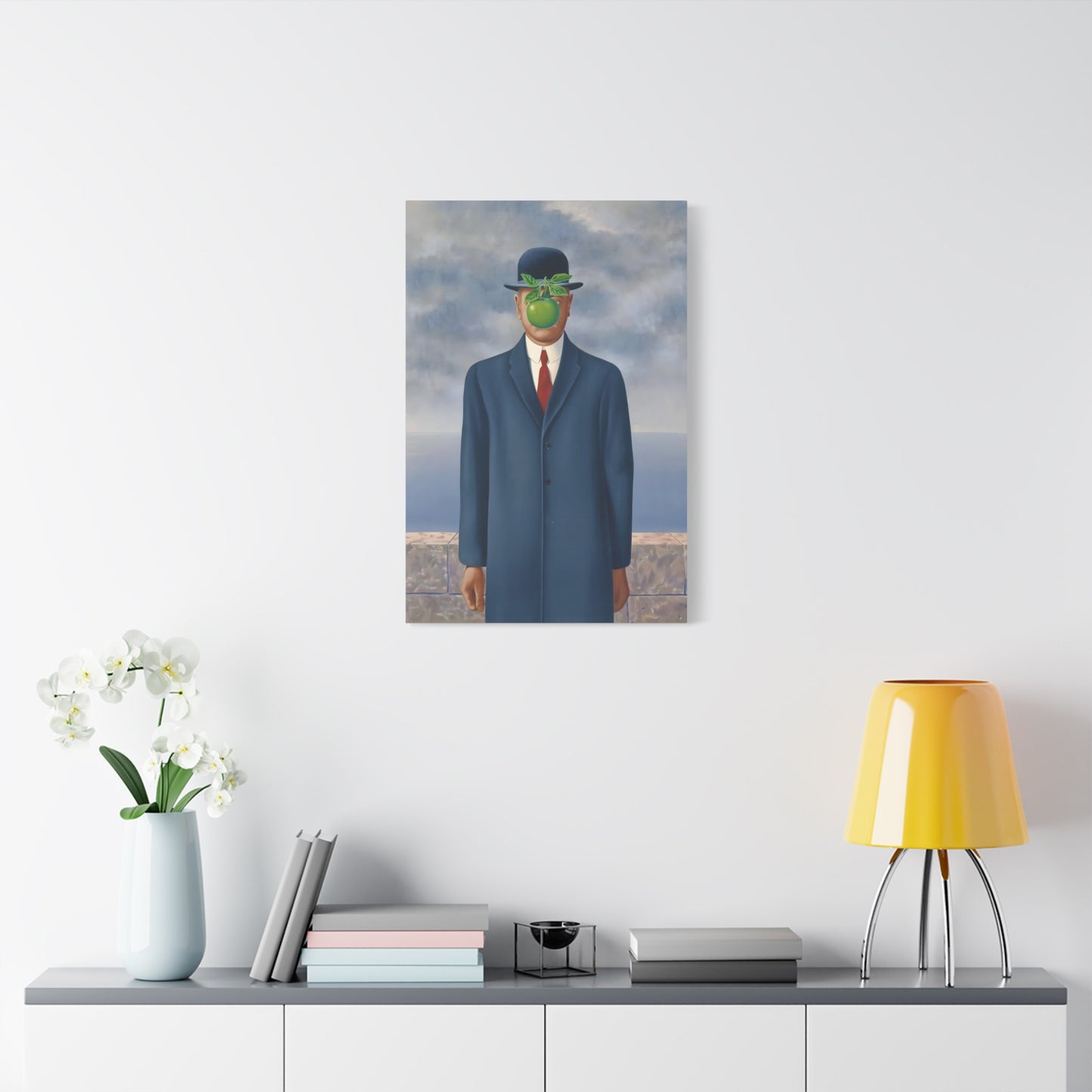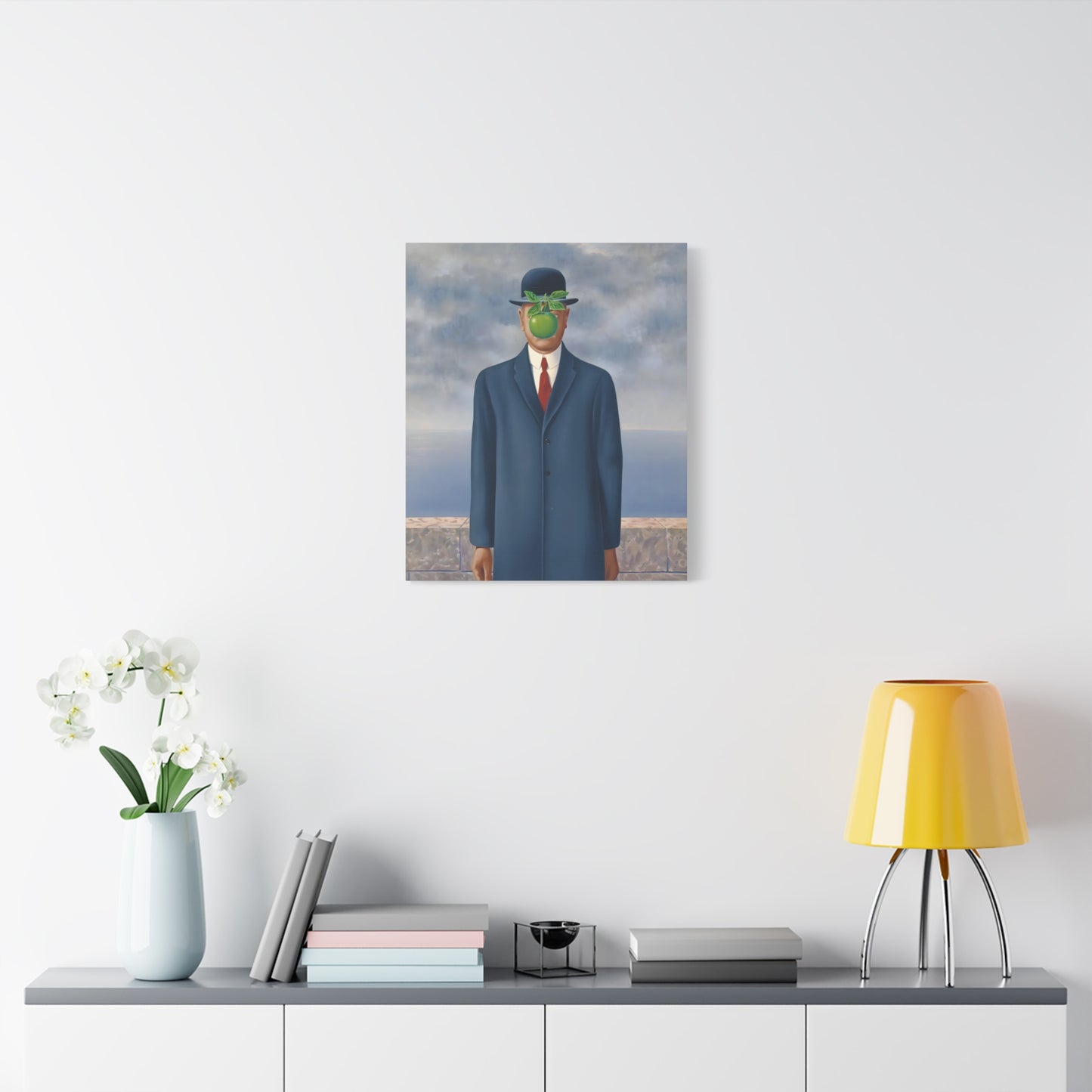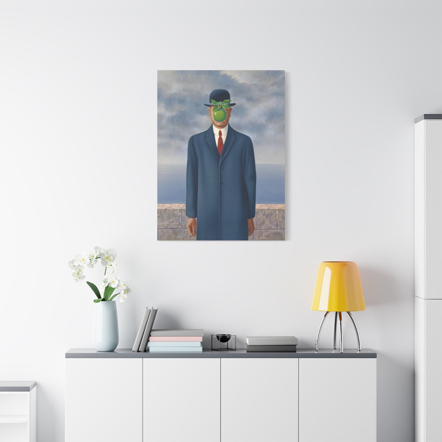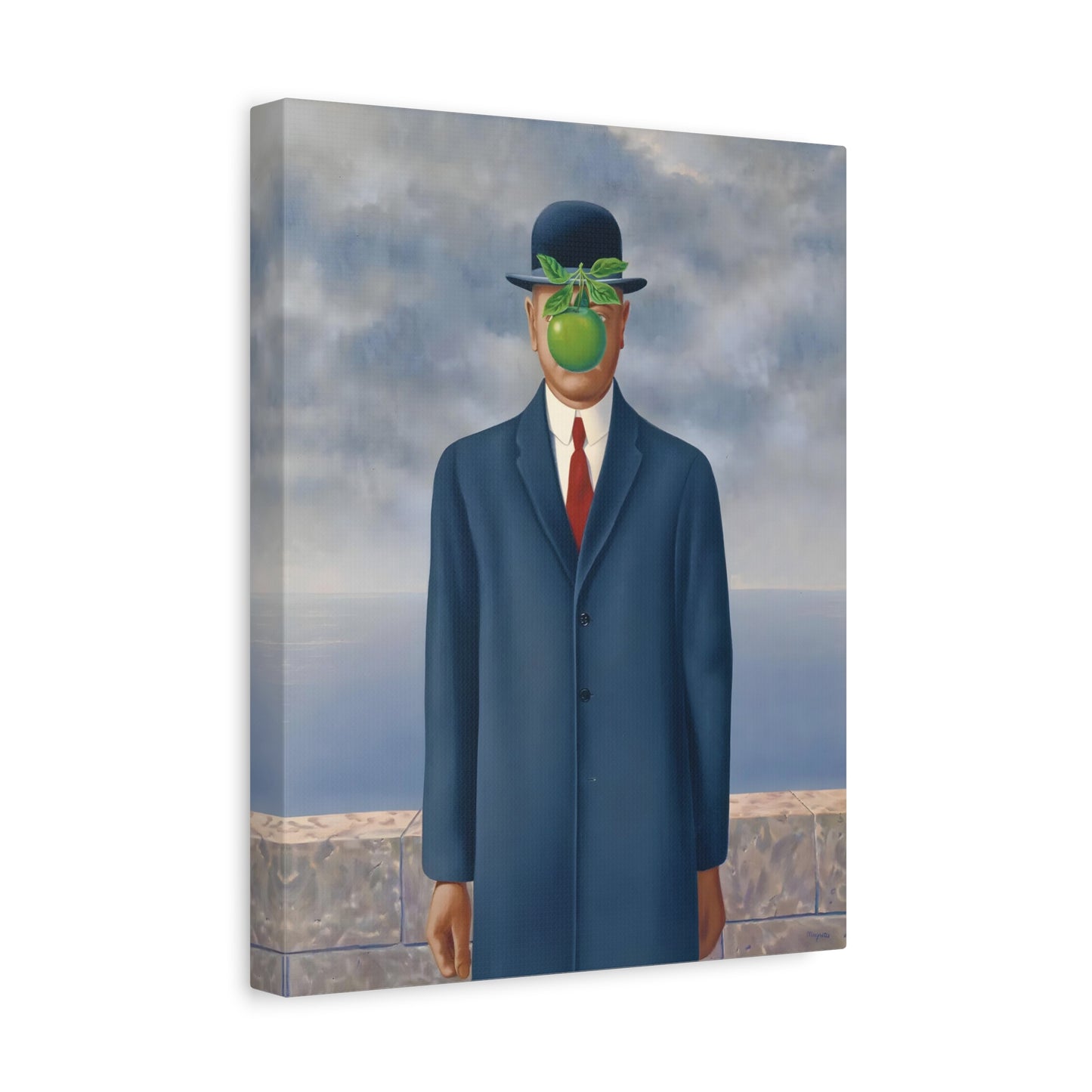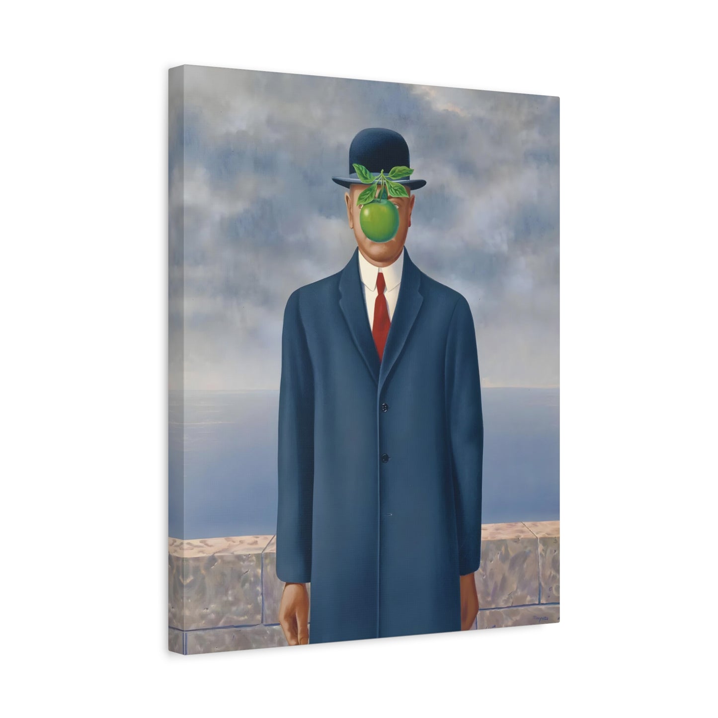 The Son of Man, created in 1964 by the renowned surrealist artist René Magritte, is a captivating masterpiece that will ignite your imagination and transform your living space into a realm of mystery and wonder. This iconic artwork features a sharply dressed man in a bowler hat, his face obscured by a hovering green apple. Its enigmatic composition beckons you to explore the depths of symbolism and invites contemplation on themes of identity, perception, and hidden truths. Owning a canvas replication of The Son of Man is like owning a portal to the surreal world of Magritte, a gateway to inspiration and intellectual stimulation. Elevate your home with this conversation-starting gem that will enchant all who lay eyes upon it.