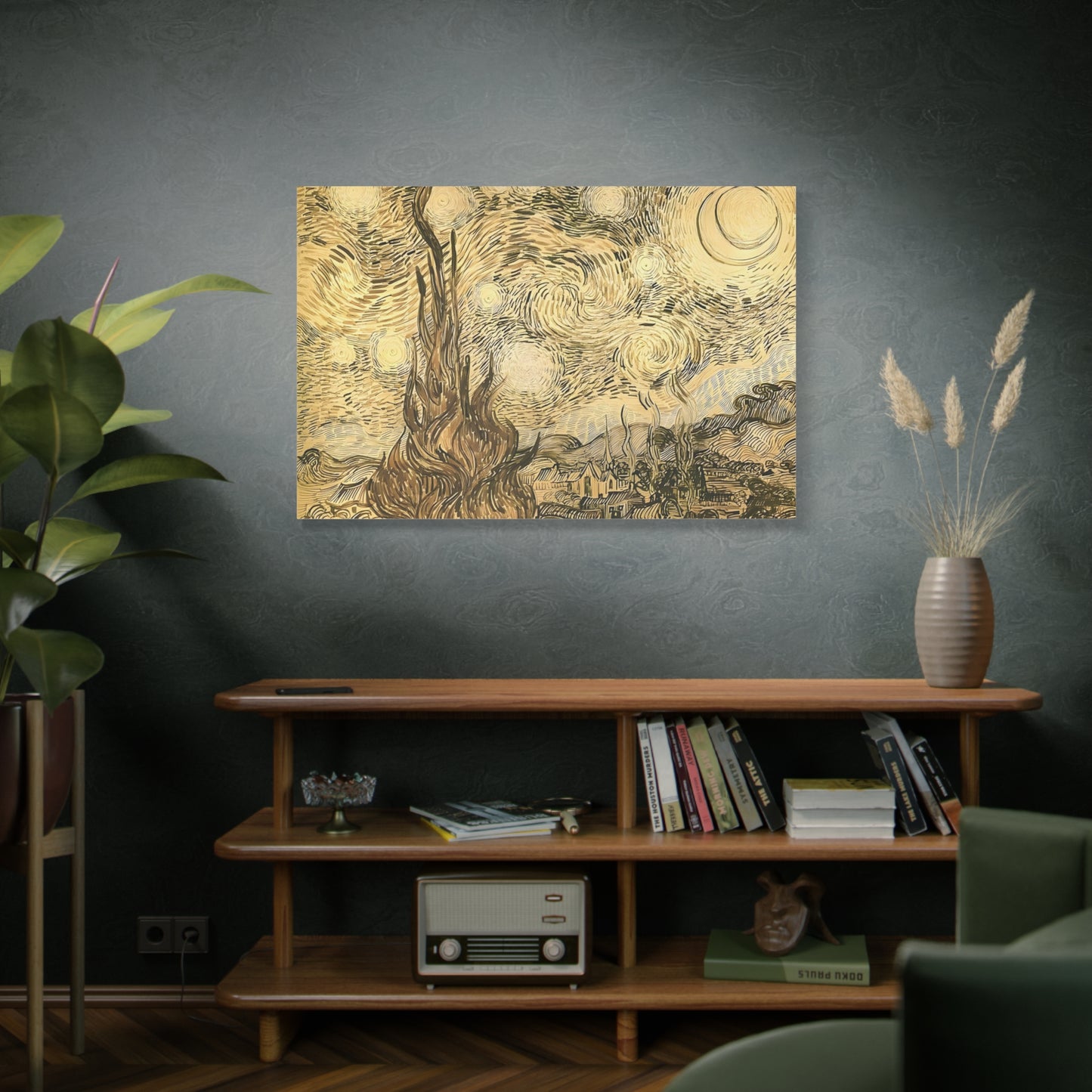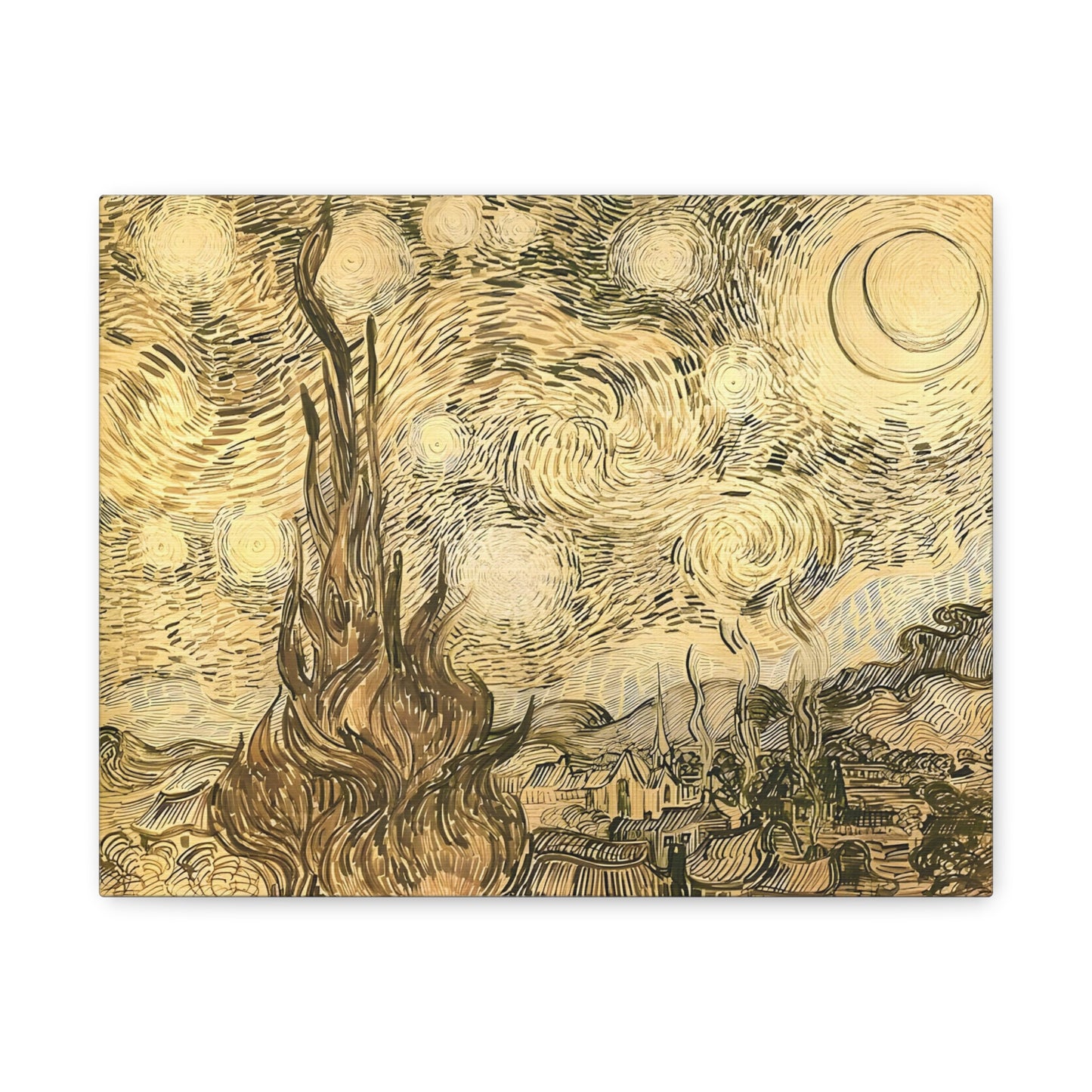 The Starry Night, created by Vincent van Gogh in 1889, is a mesmerizing masterpiece that captures the essence of the night sky in a vibrant and expressive manner. This iconic artwork showcases swirling stars, a majestic moon, and a small village tucked beneath the darkened landscape. Its rich color palette and dynamic brushstrokes bring a sense of movement and energy to the canvas. Having The Starry Night in your home will infuse your space with a captivating ambiance, igniting conversations and inspiring awe in anyone who beholds it. Enhance your living environment with this timeless work of art, and let the brilliance of Van Gogh's vision shine through.
