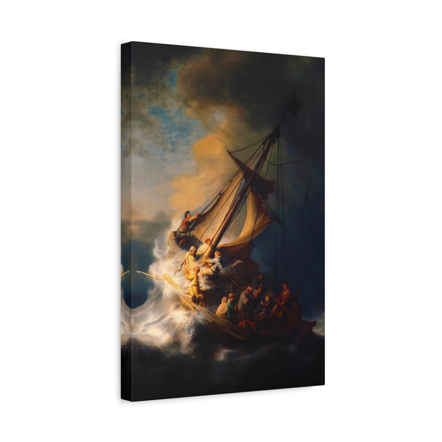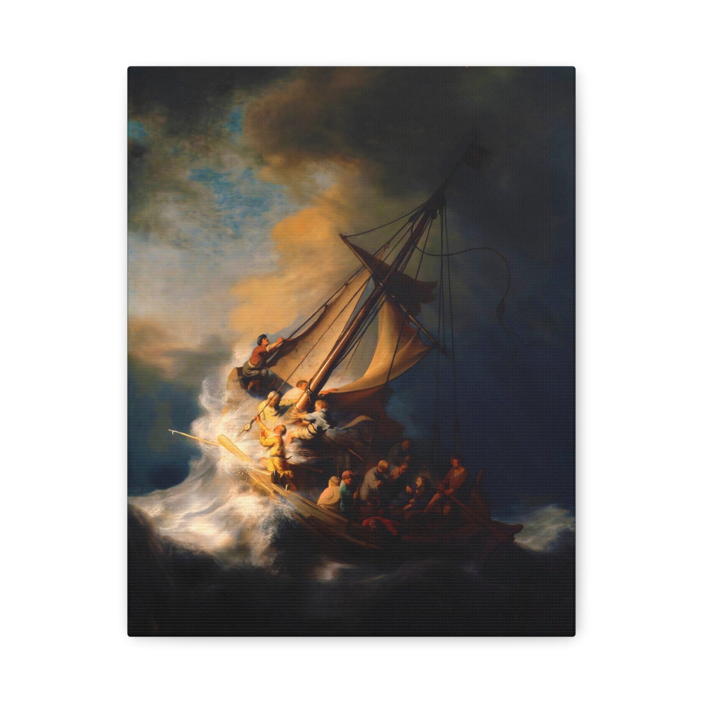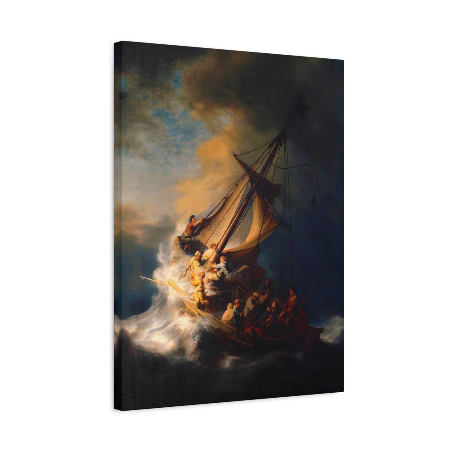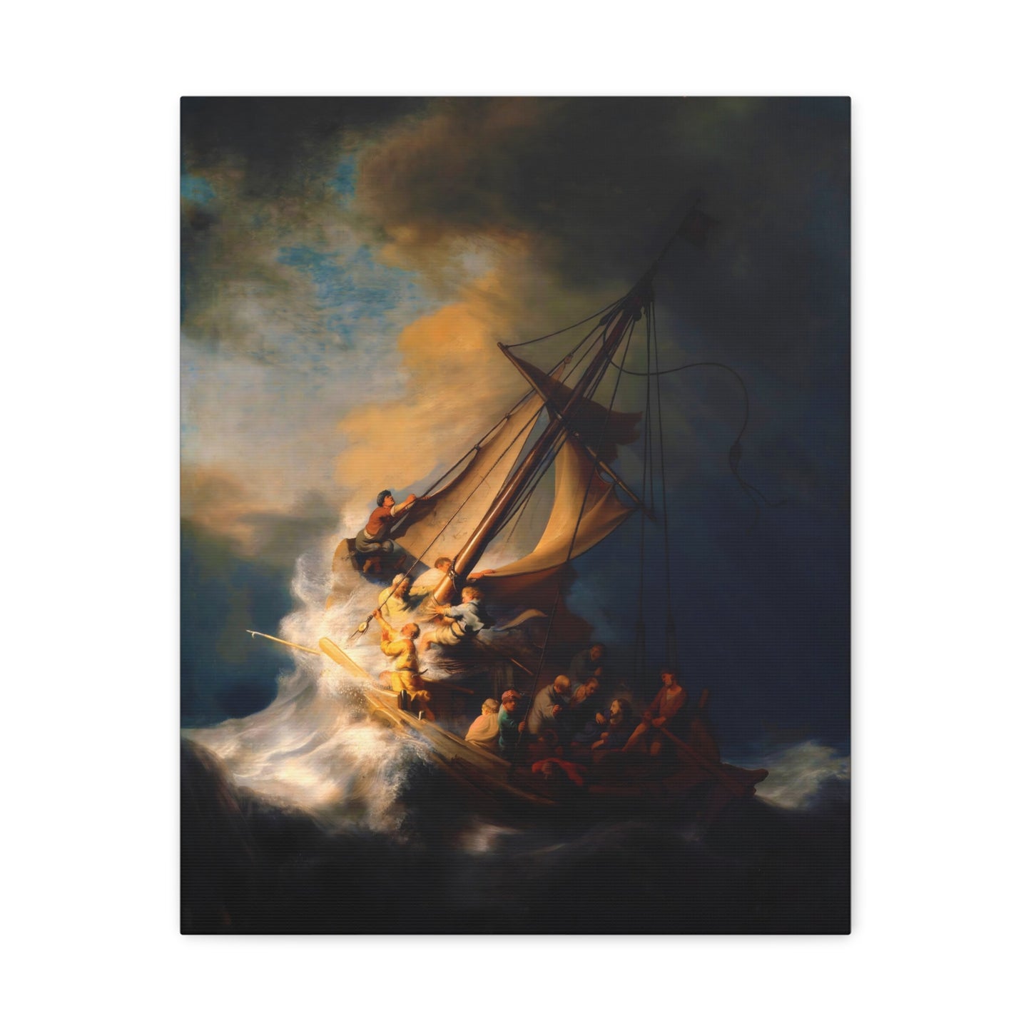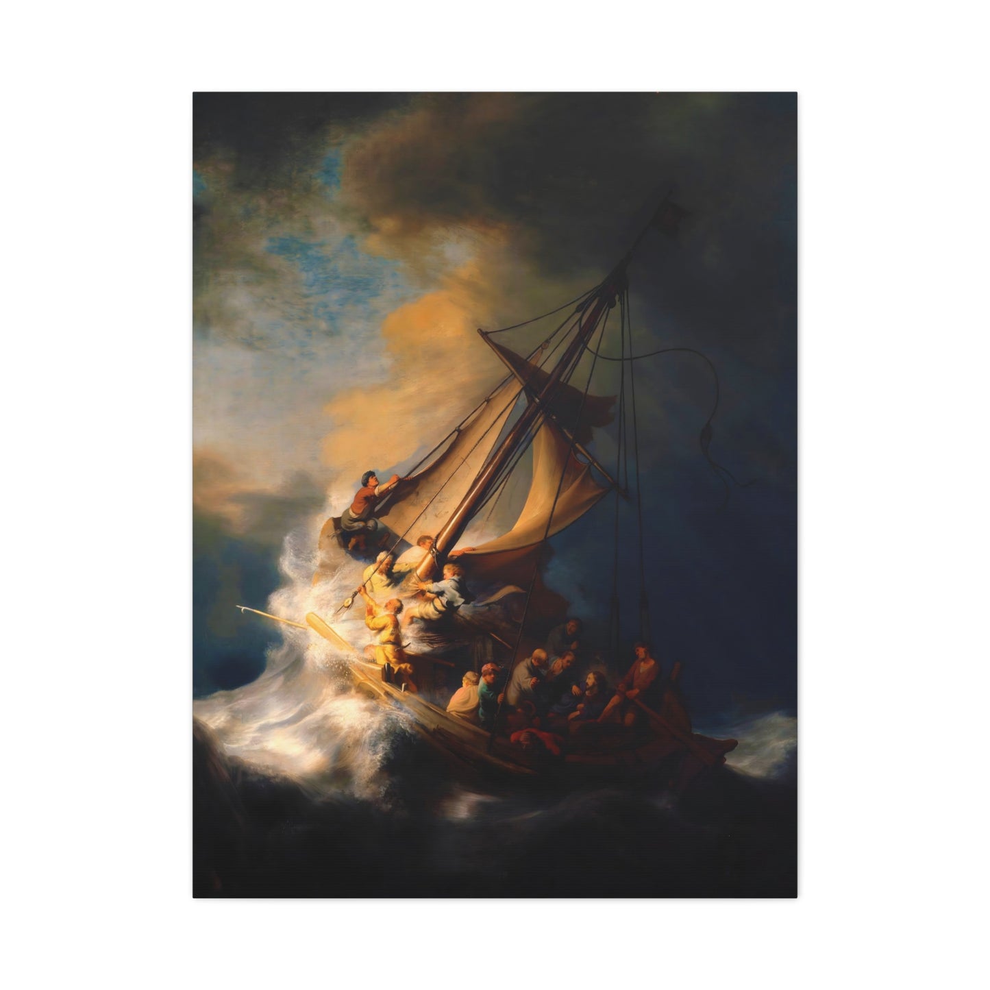 Behold the awe-inspiring The Storm on the Sea of Galilee by Rembrandt, a masterpiece that encapsulates the raw power of nature and the human spirit. Created in the year 1633, this iconic artwork portrays a dramatic scene of a tumultuous sea, a ship in peril, and desperate figures battling the raging storm. The intensity of the composition, skillful use of light and shadow, and Rembrandt's mastery of capturing emotion make this artwork a must-have for art enthusiasts and collectors alike. By owning a canvas art replication of this breathtaking painting, you can invite the energy and drama of this extraordinary moment into your home, creating a focal point that will captivate and inspire. Let the storm come alive on your walls and embark on a visual journey that stirs the senses and leaves a lasting impression. Experience the power and beauty of The Storm on the Sea of Galilee in your own space and revel in the mastery of Rembrandt's brush.