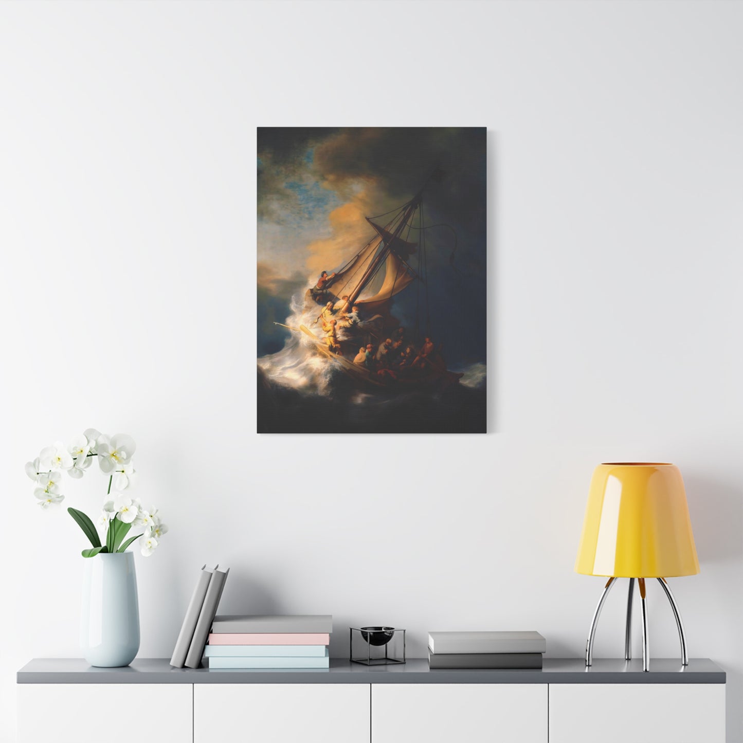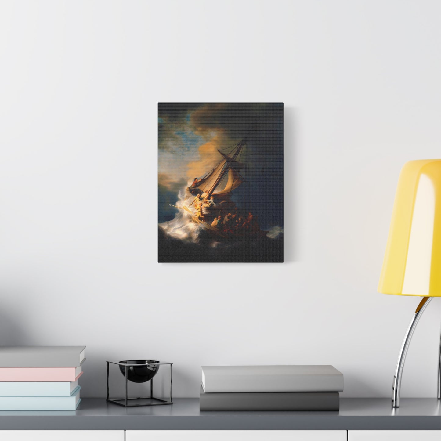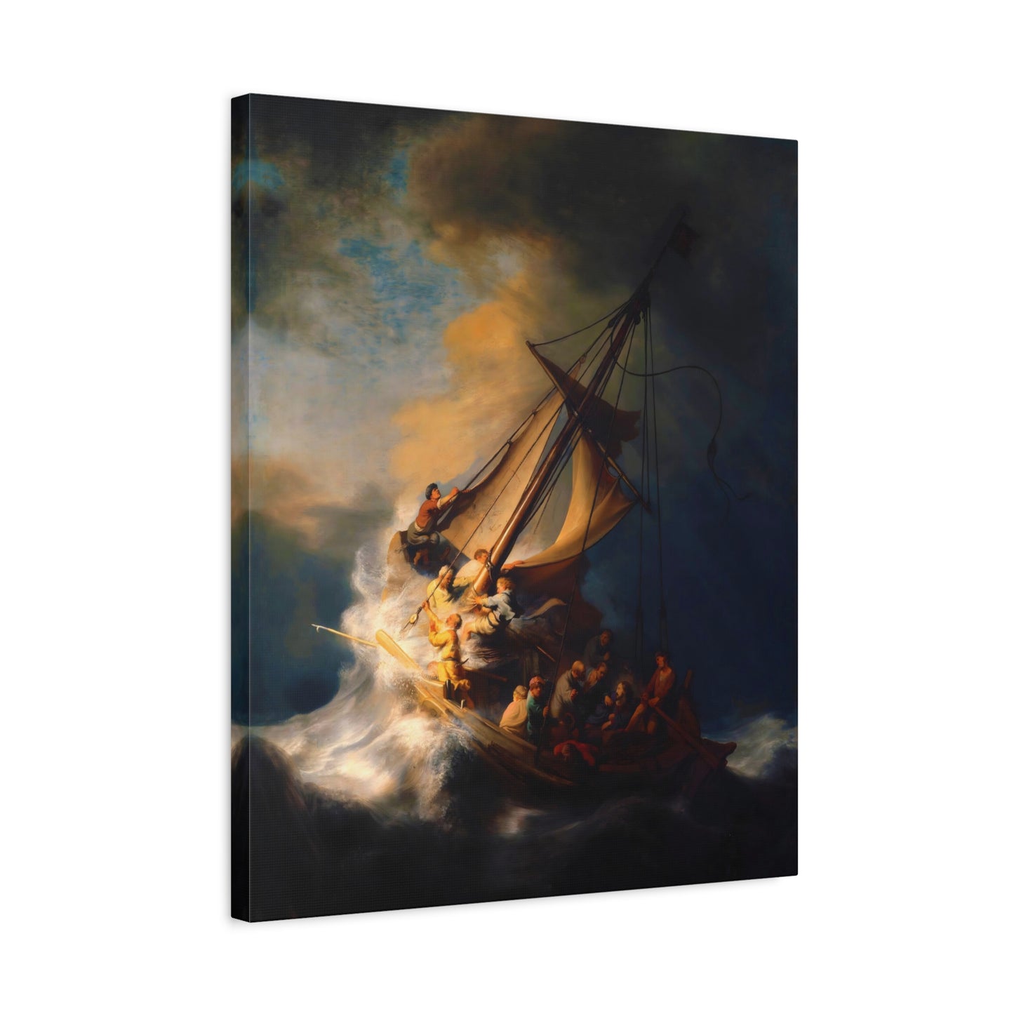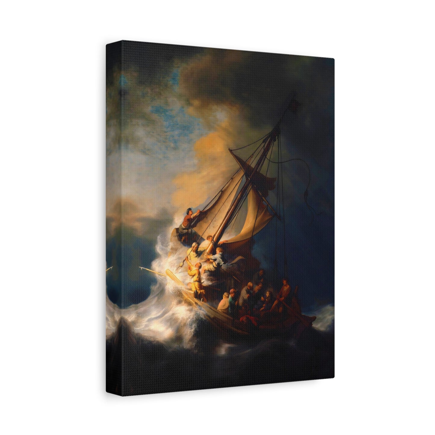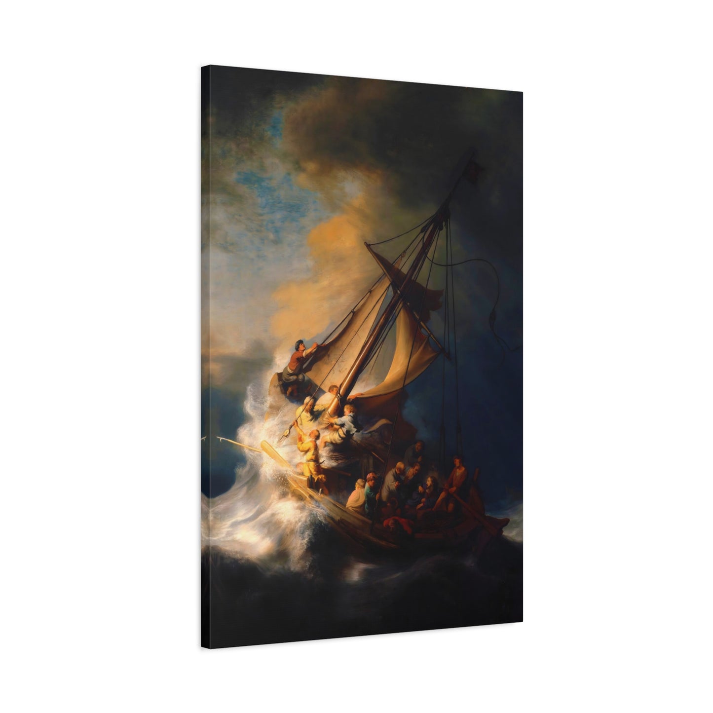 Behold the awe-inspiring The Storm on the Sea of Galilee by Rembrandt, a masterpiece that encapsulates the raw power of nature and the human spirit. Created in the year 1633, this iconic artwork portrays a dramatic scene of a tumultuous sea, a ship in peril, and desperate figures battling the raging storm. The intensity of the composition, skillful use of light and shadow, and Rembrandt's mastery of capturing emotion make this artwork a must-have for art enthusiasts and collectors alike. By owning a canvas art replication of this breathtaking painting, you can invite the energy and drama of this extraordinary moment into your home, creating a focal point that will captivate and inspire. Let the storm come alive on your walls and embark on a visual journey that stirs the senses and leaves a lasting impression. Experience the power and beauty of The Storm on the Sea of Galilee in your own space and revel in the mastery of Rembrandt's brush.