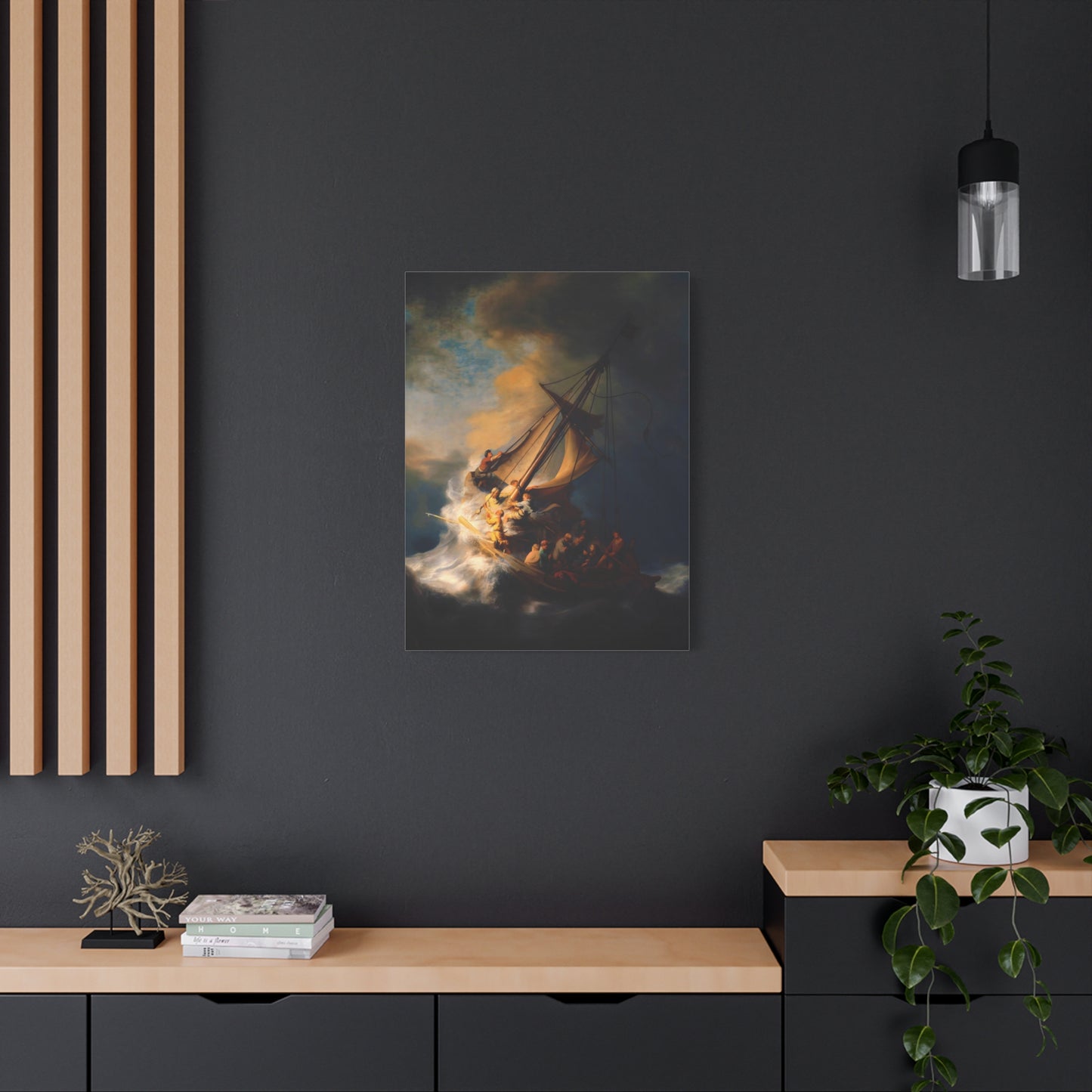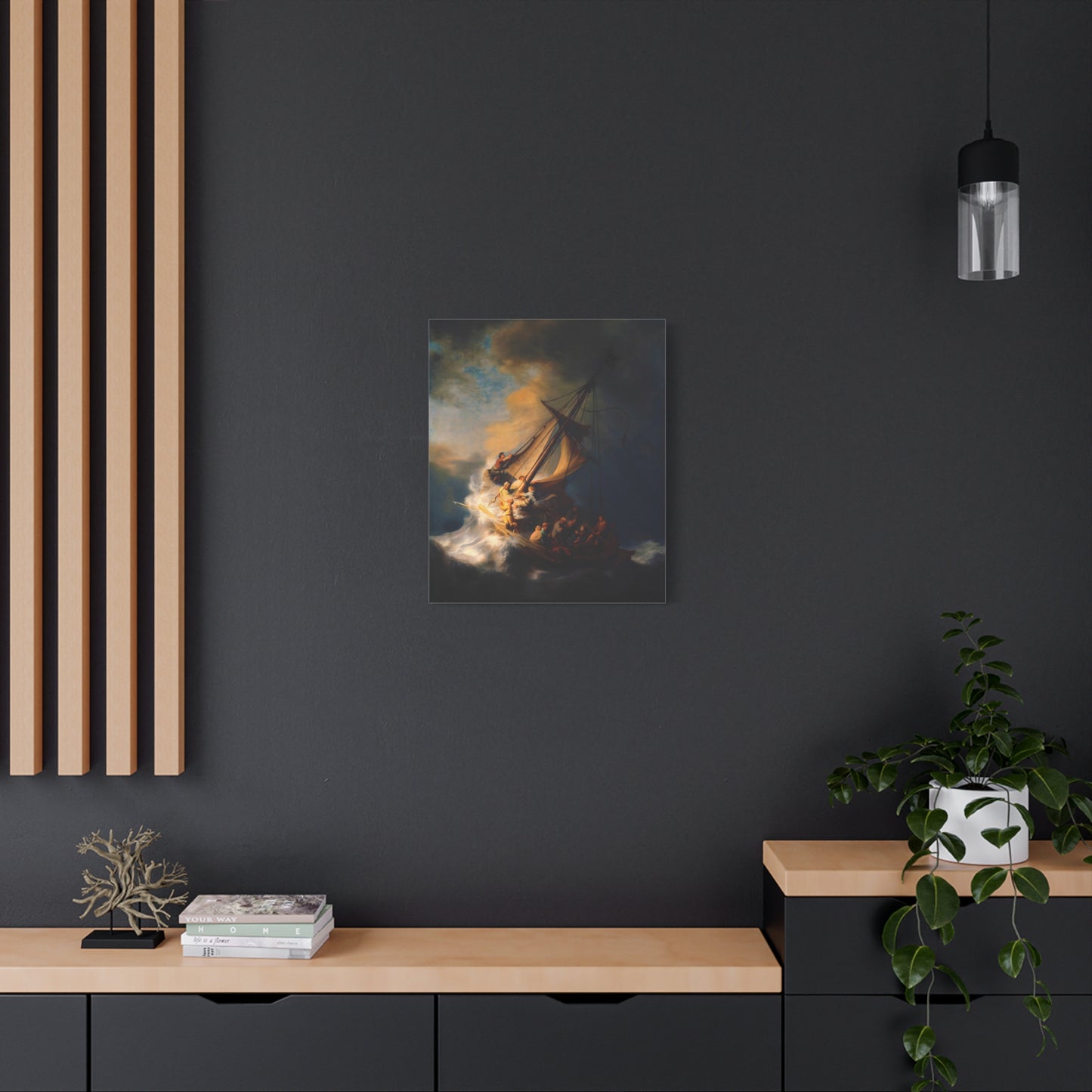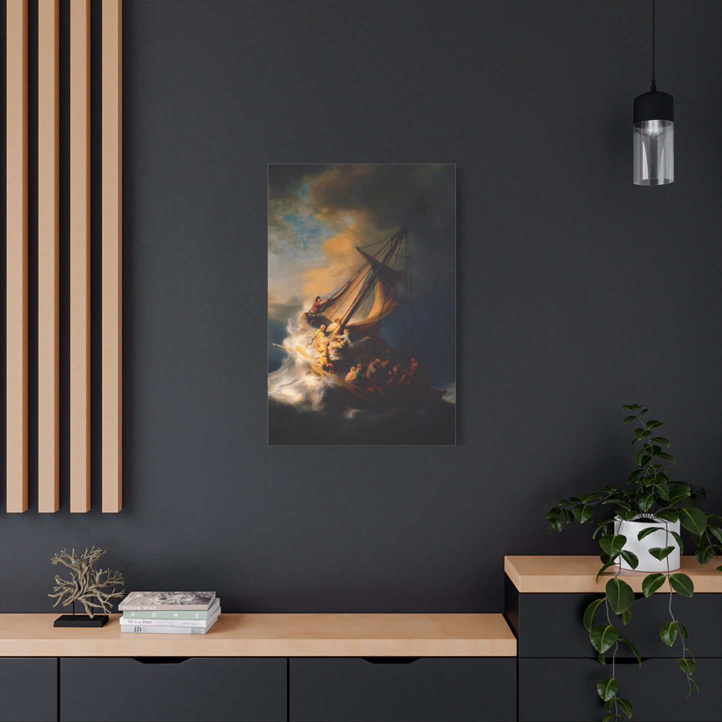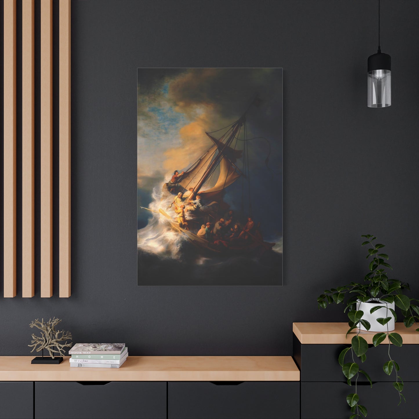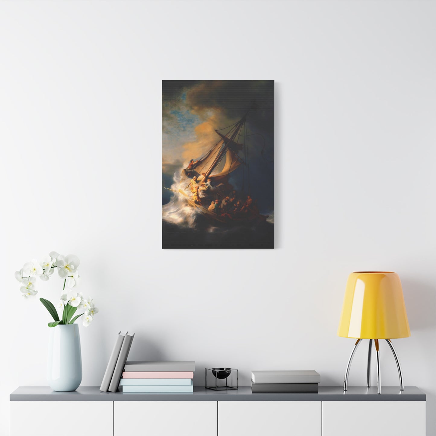 Behold the awe-inspiring The Storm on the Sea of Galilee by Rembrandt, a masterpiece that encapsulates the raw power of nature and the human spirit. Created in the year 1633, this iconic artwork portrays a dramatic scene of a tumultuous sea, a ship in peril, and desperate figures battling the raging storm. The intensity of the composition, skillful use of light and shadow, and Rembrandt's mastery of capturing emotion make this artwork a must-have for art enthusiasts and collectors alike. By owning a canvas art replication of this breathtaking painting, you can invite the energy and drama of this extraordinary moment into your home, creating a focal point that will captivate and inspire. Let the storm come alive on your walls and embark on a visual journey that stirs the senses and leaves a lasting impression. Experience the power and beauty of The Storm on the Sea of Galilee in your own space and revel in the mastery of Rembrandt's brush.