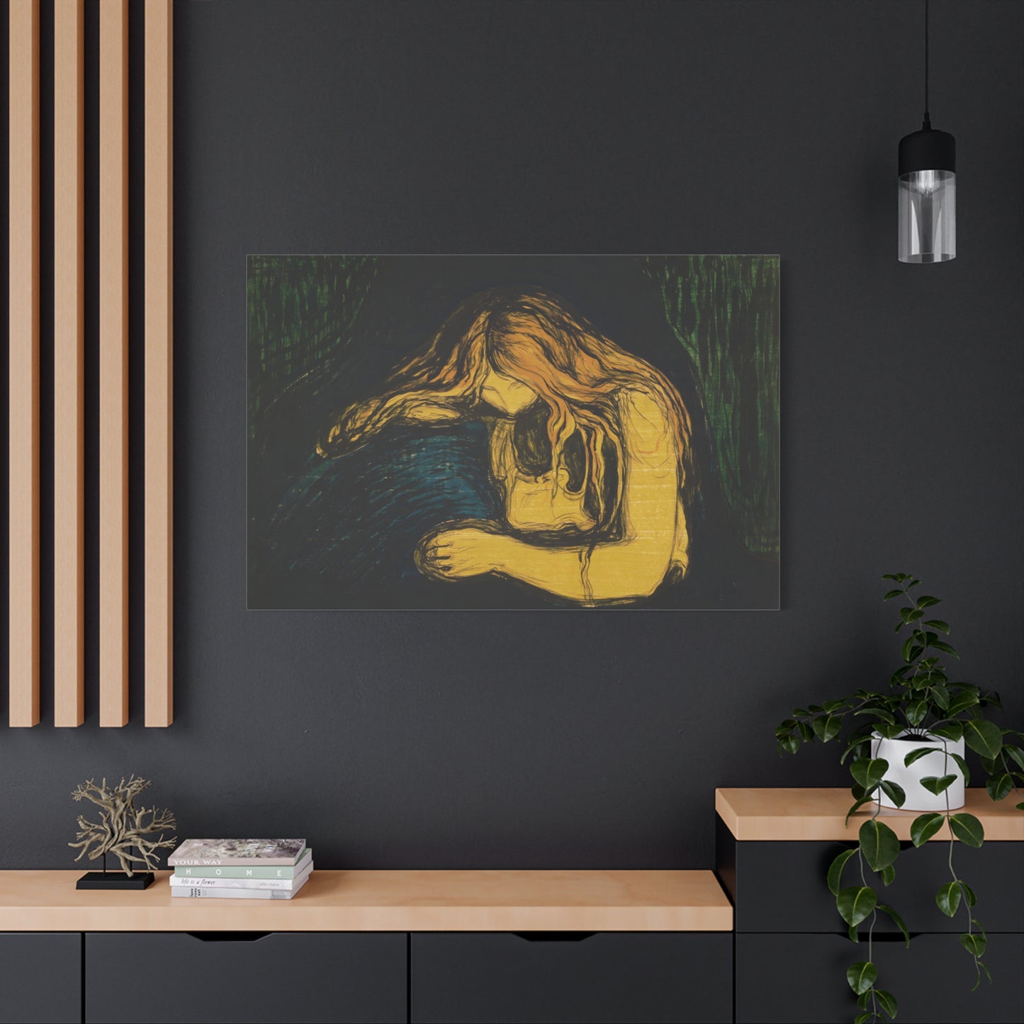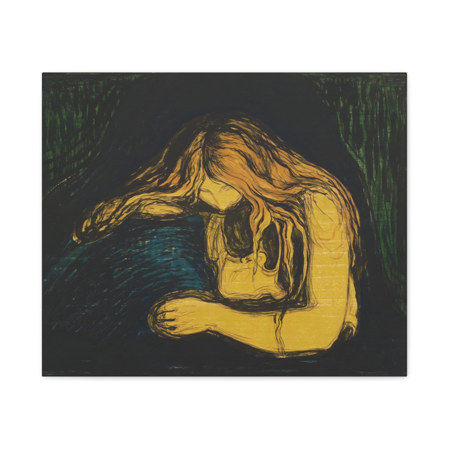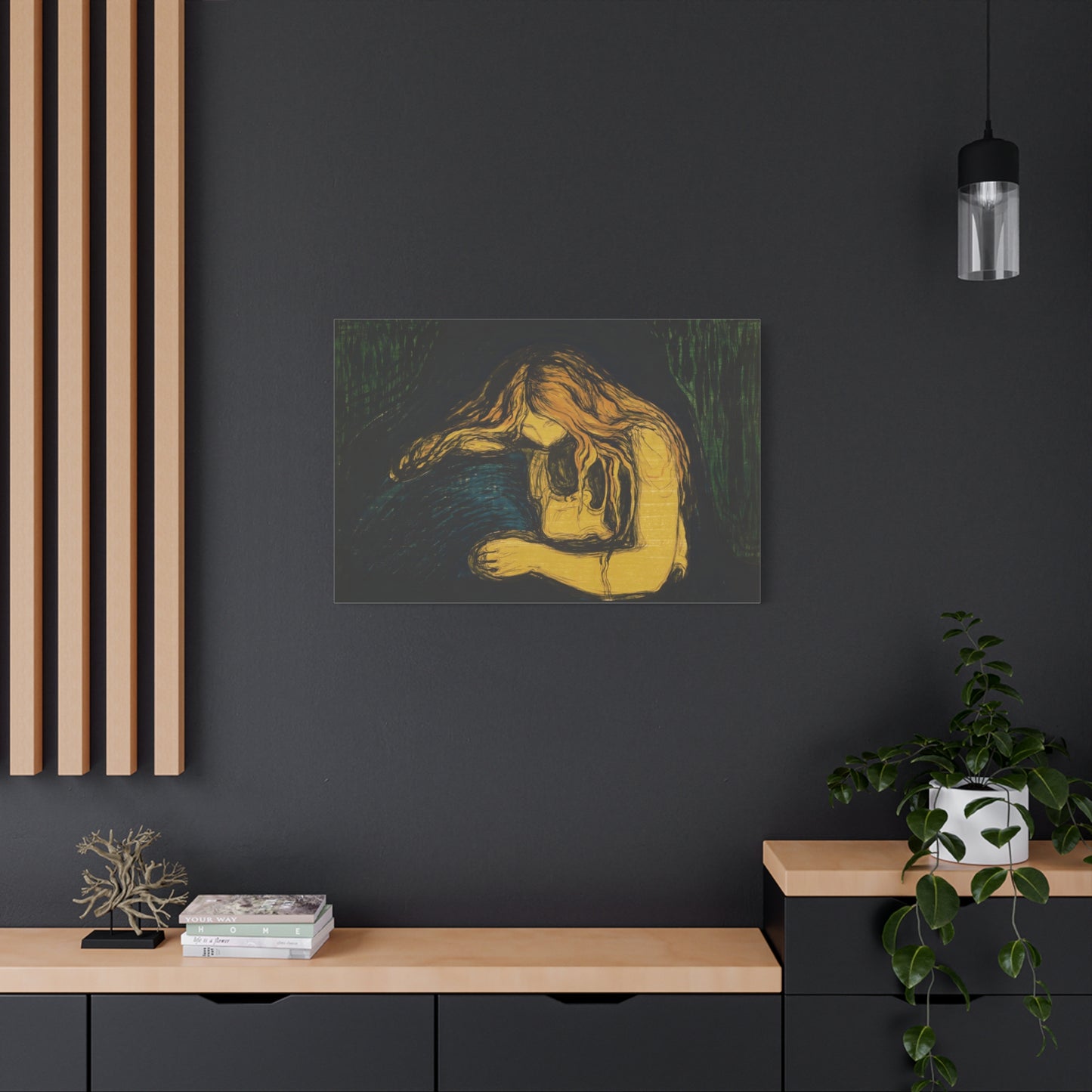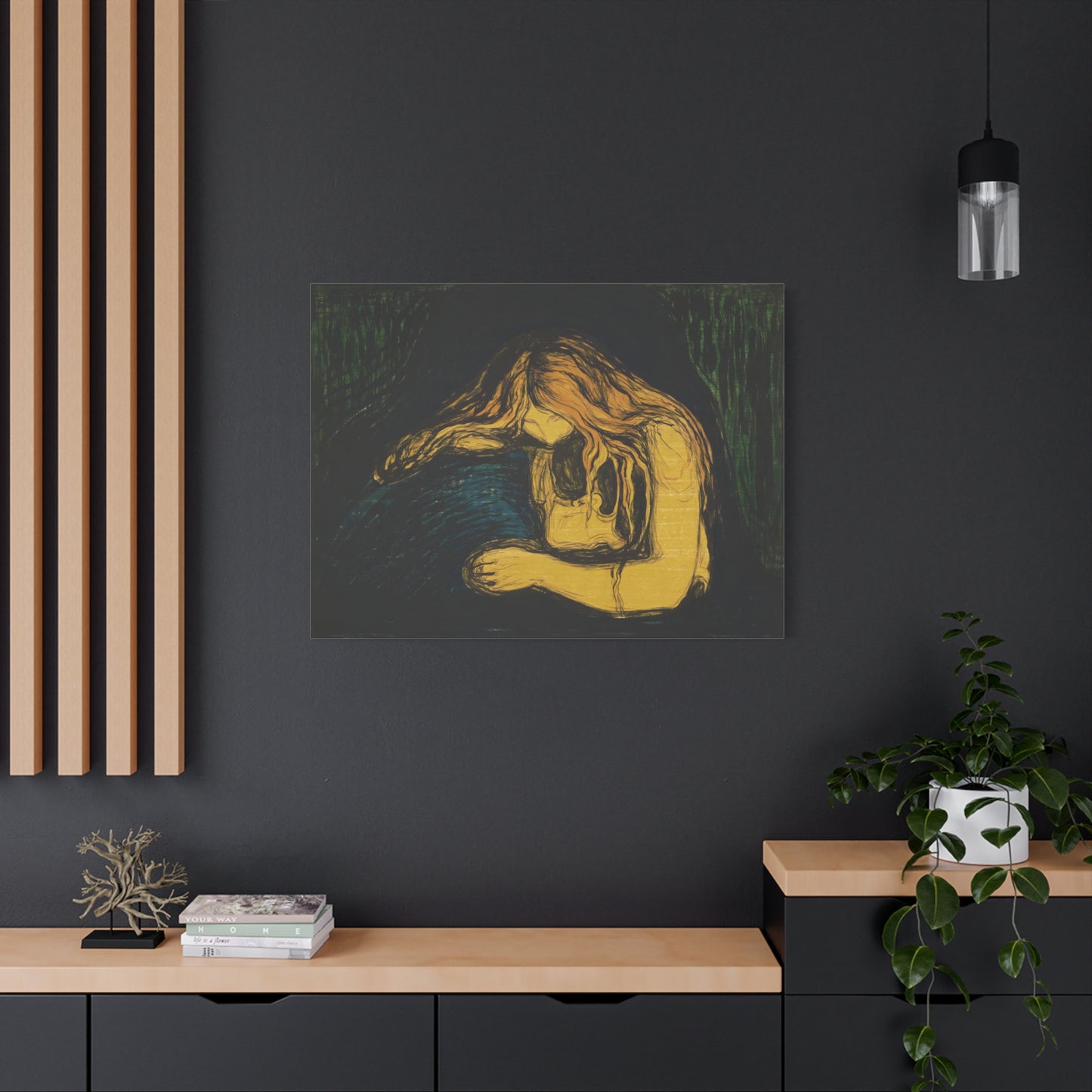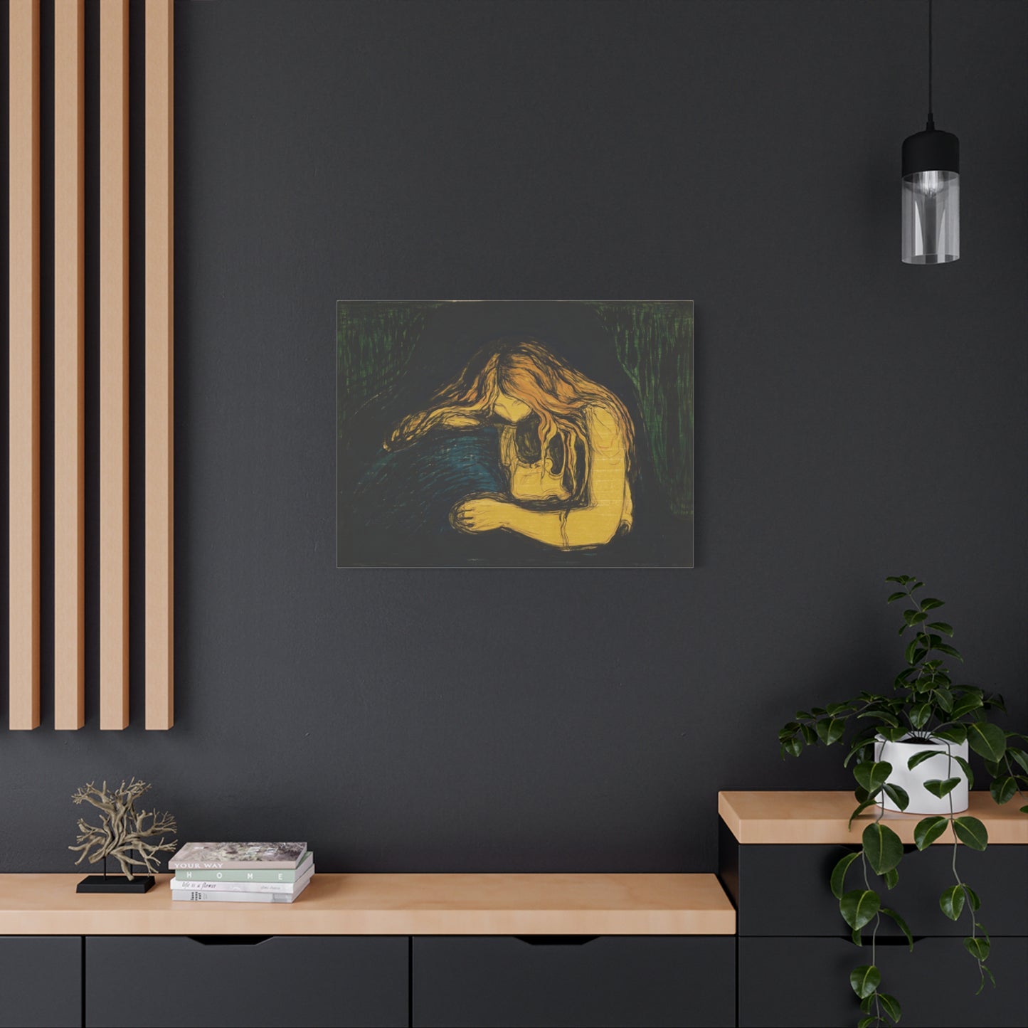 Indulge in the haunting and enigmatic world of Edvard Munch's Vampyr II, a masterpiece created in 1895. This extraordinary artwork captivates with its mysterious atmosphere and unsettling imagery, drawing you into a realm where darkness and allure intertwine. Our meticulously replicated canvas art faithfully captures the essence of Munch's original painting, allowing you to bring this captivating piece into your home. With its evocative symbolism and timeless appeal, Vampyr II adds a touch of intrigue and sophistication to any space. Experience the allure of Munch's mesmerizing masterpiece and let it ignite your imagination with its enigmatic narrative. Transform your home into a haven of artistic intrigue with Vampyr II.