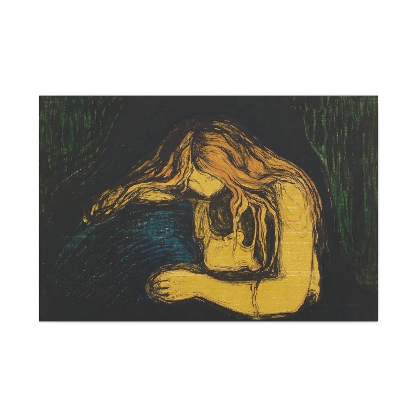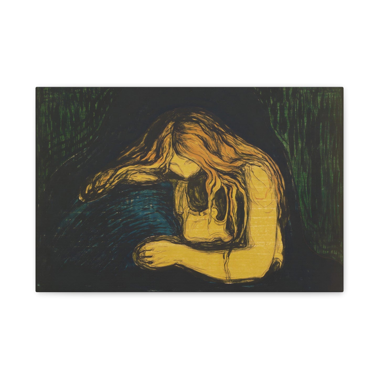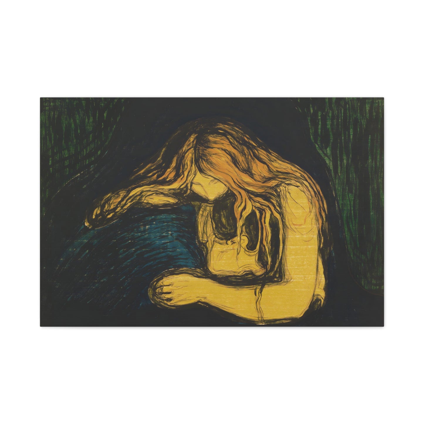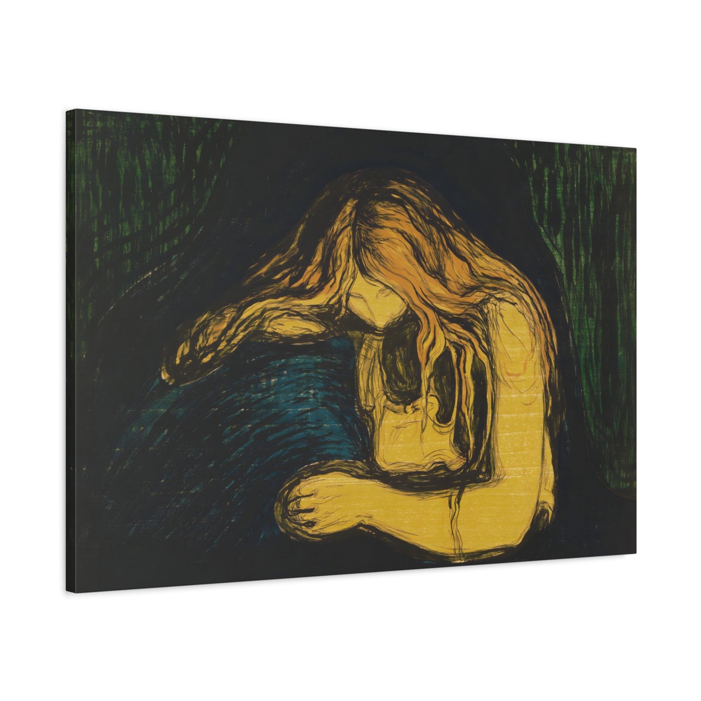 Indulge in the haunting and enigmatic world of Edvard Munch's Vampyr II, a masterpiece created in 1895. This extraordinary artwork captivates with its mysterious atmosphere and unsettling imagery, drawing you into a realm where darkness and allure intertwine. Our meticulously replicated canvas art faithfully captures the essence of Munch's original painting, allowing you to bring this captivating piece into your home. With its evocative symbolism and timeless appeal, Vampyr II adds a touch of intrigue and sophistication to any space. Experience the allure of Munch's mesmerizing masterpiece and let it ignite your imagination with its enigmatic narrative. Transform your home into a haven of artistic intrigue with Vampyr II.