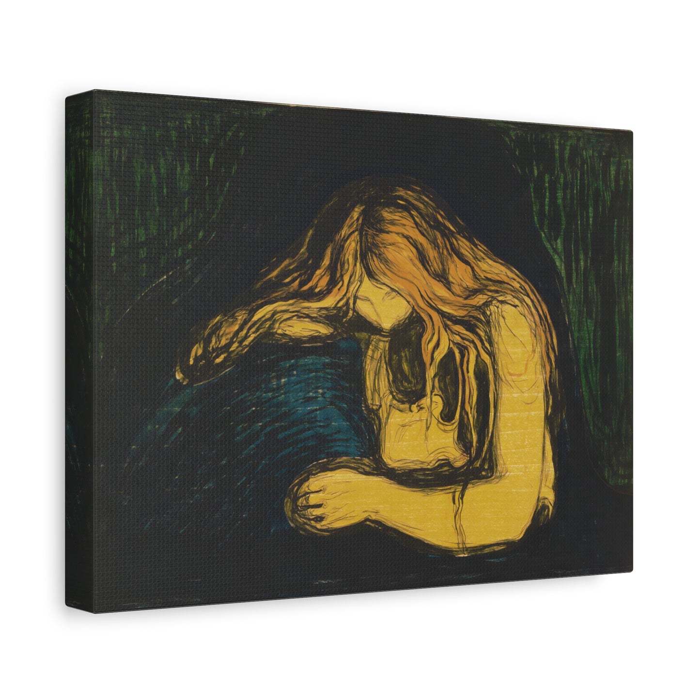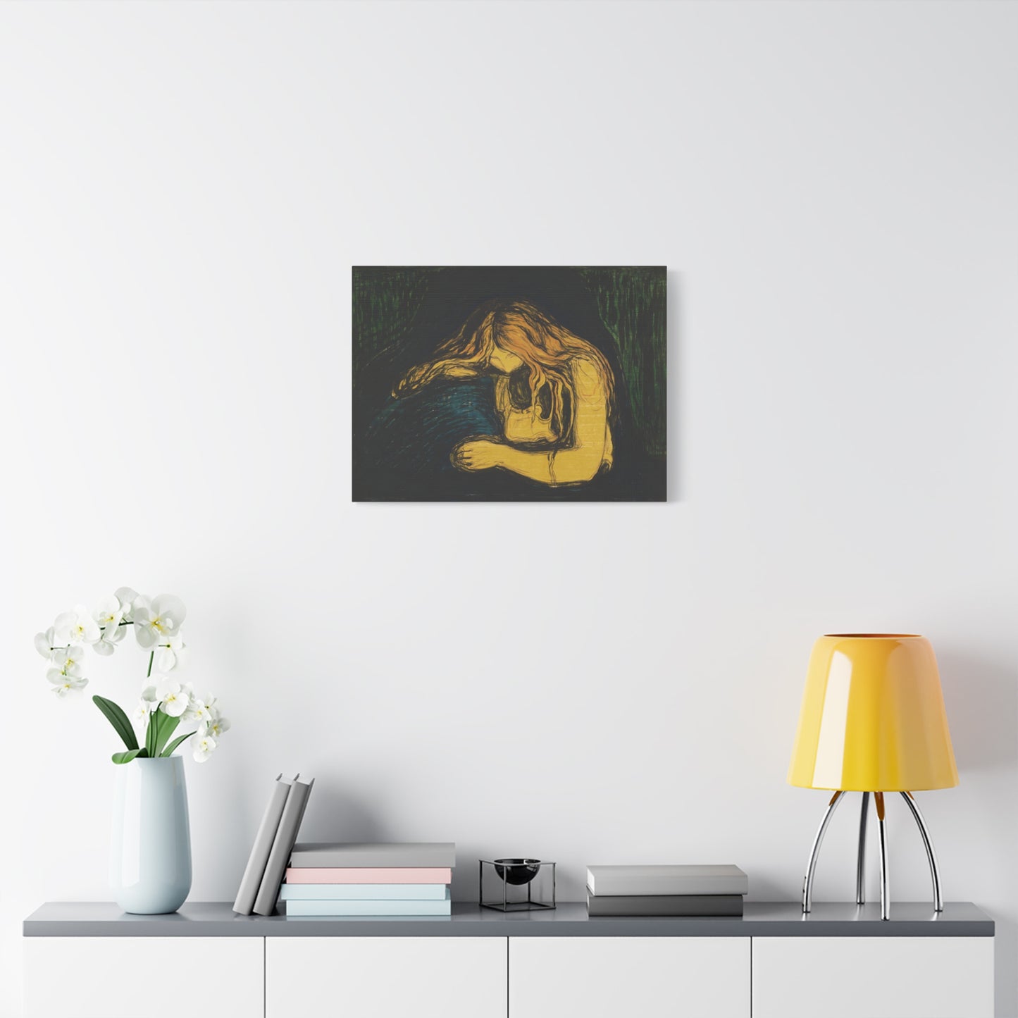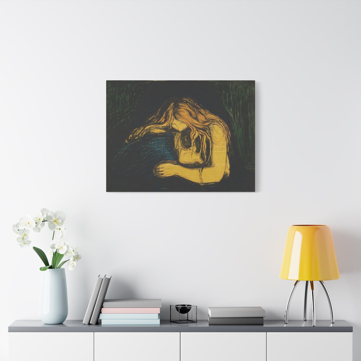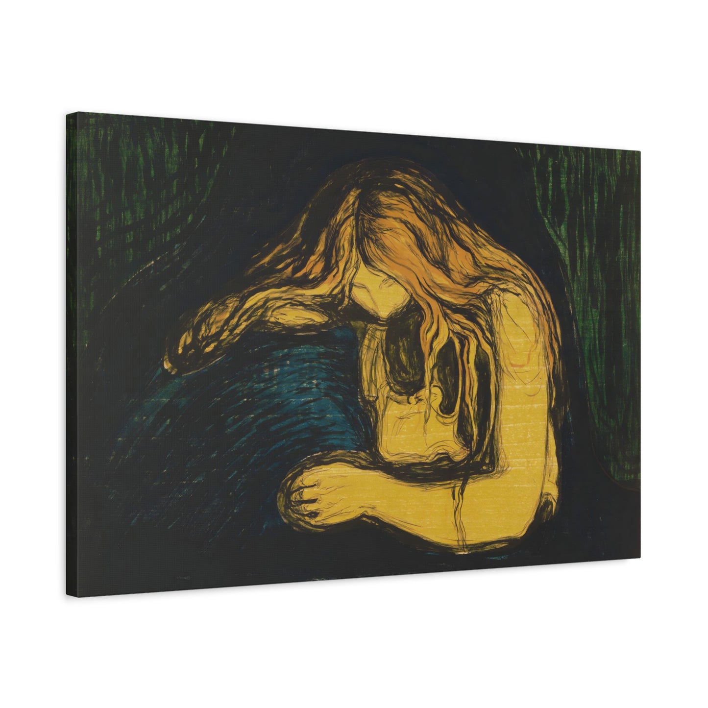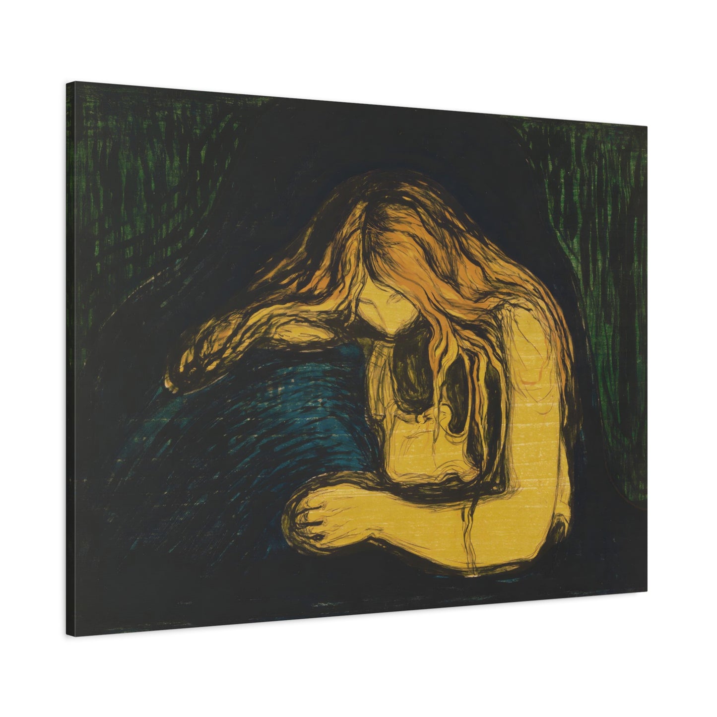 Indulge in the haunting and enigmatic world of Edvard Munch's Vampyr II, a masterpiece created in 1895. This extraordinary artwork captivates with its mysterious atmosphere and unsettling imagery, drawing you into a realm where darkness and allure intertwine. Our meticulously replicated canvas art faithfully captures the essence of Munch's original painting, allowing you to bring this captivating piece into your home. With its evocative symbolism and timeless appeal, Vampyr II adds a touch of intrigue and sophistication to any space. Experience the allure of Munch's mesmerizing masterpiece and let it ignite your imagination with its enigmatic narrative. Transform your home into a haven of artistic intrigue with Vampyr II.