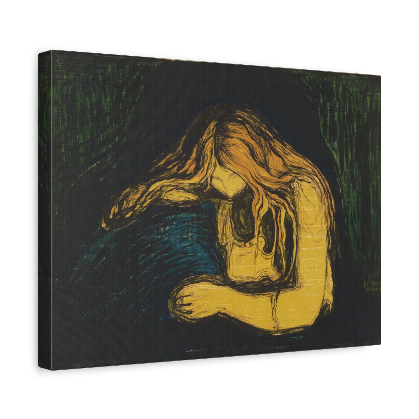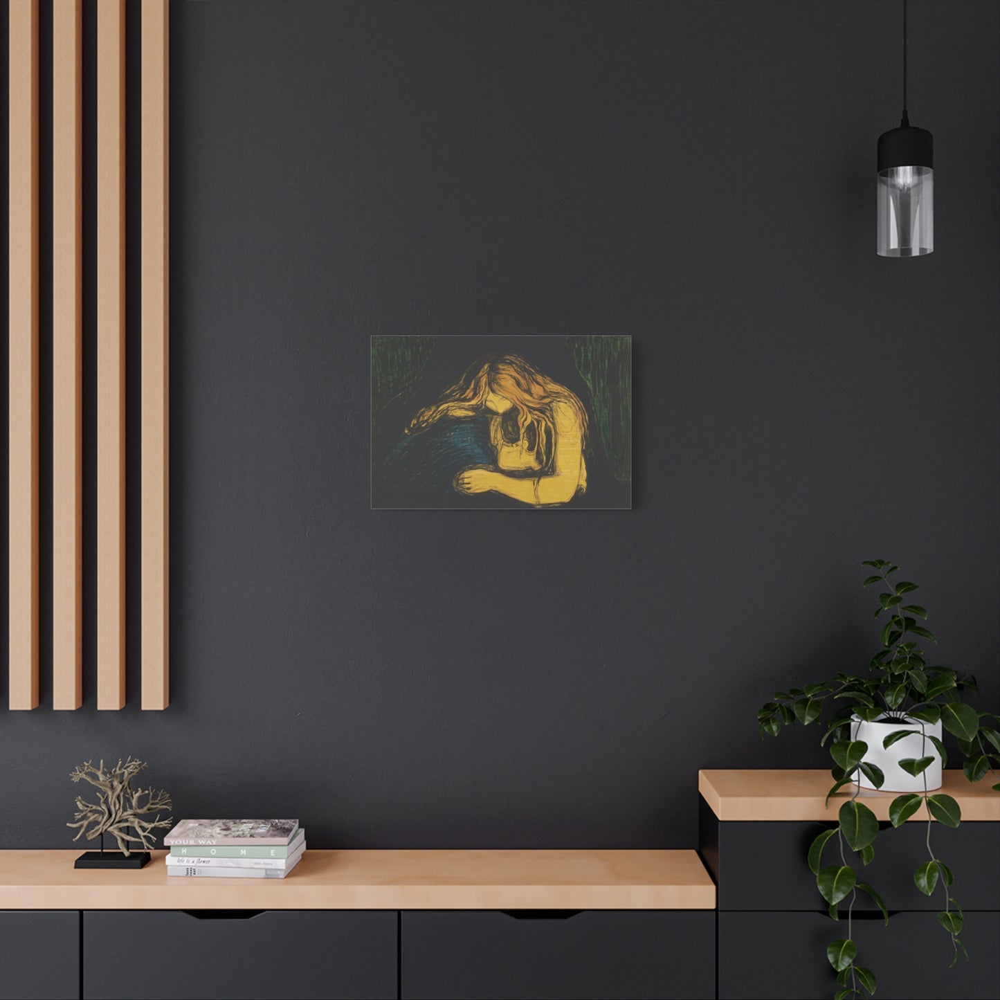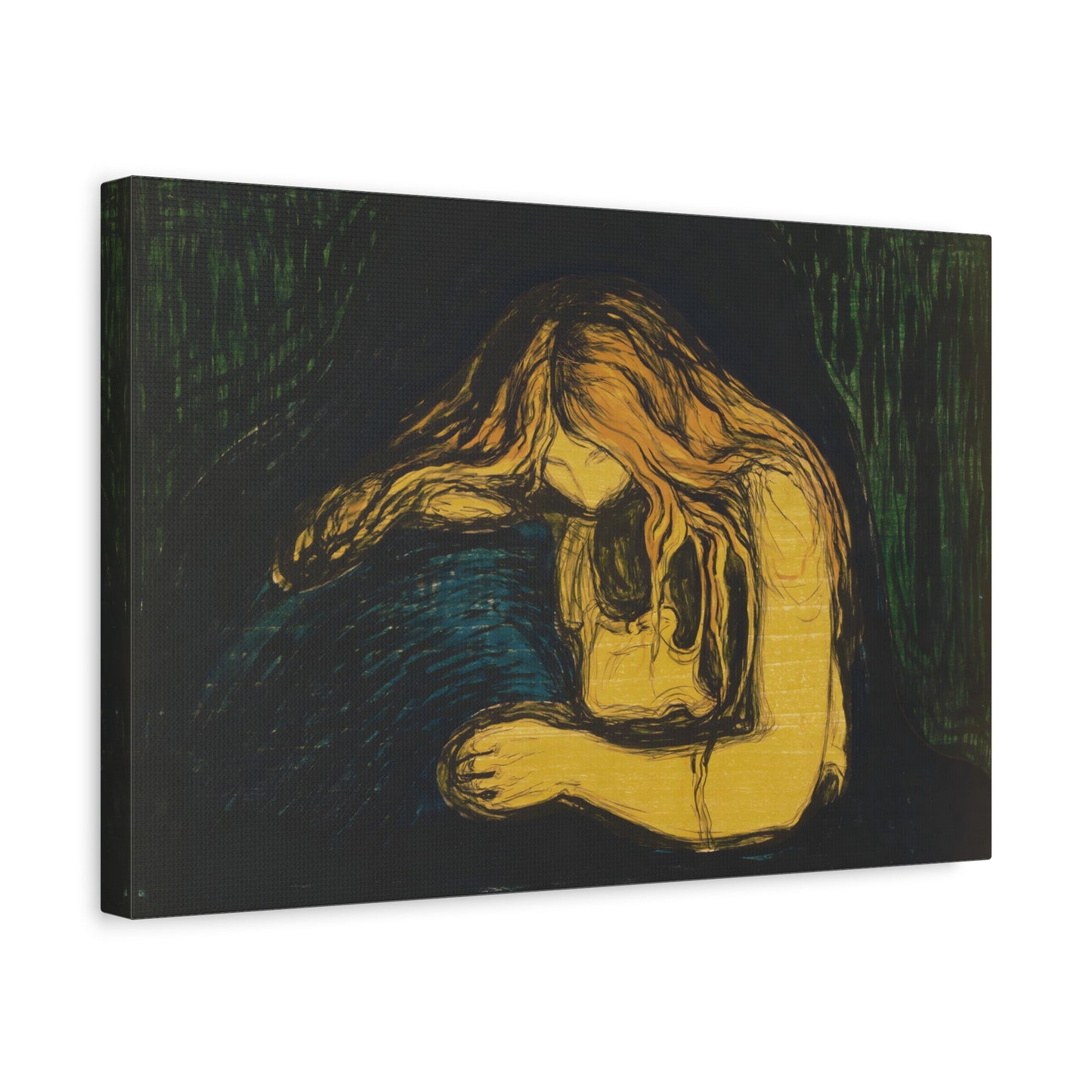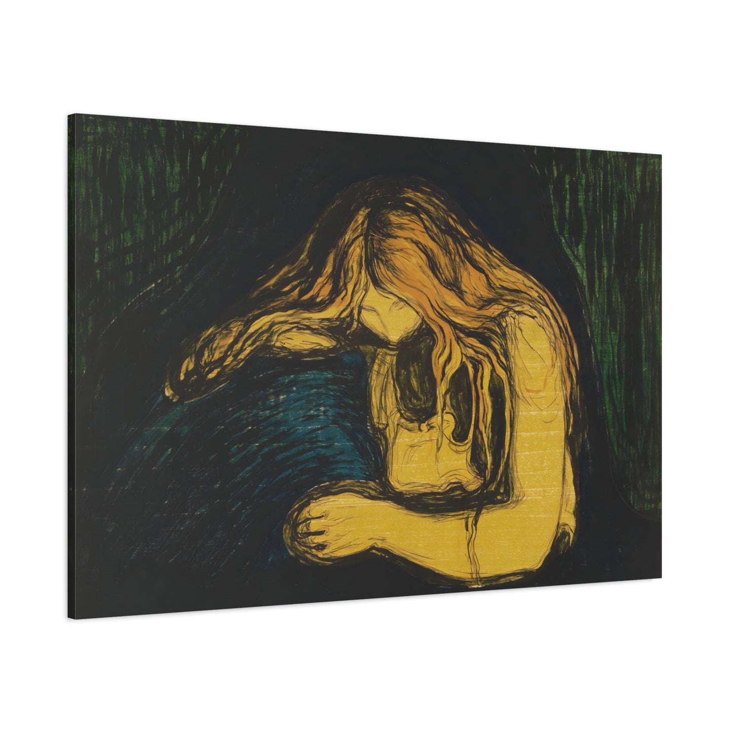 Indulge in the haunting and enigmatic world of Edvard Munch's Vampyr II, a masterpiece created in 1895. This extraordinary artwork captivates with its mysterious atmosphere and unsettling imagery, drawing you into a realm where darkness and allure intertwine. Our meticulously replicated canvas art faithfully captures the essence of Munch's original painting, allowing you to bring this captivating piece into your home. With its evocative symbolism and timeless appeal, Vampyr II adds a touch of intrigue and sophistication to any space. Experience the allure of Munch's mesmerizing masterpiece and let it ignite your imagination with its enigmatic narrative. Transform your home into a haven of artistic intrigue with Vampyr II.