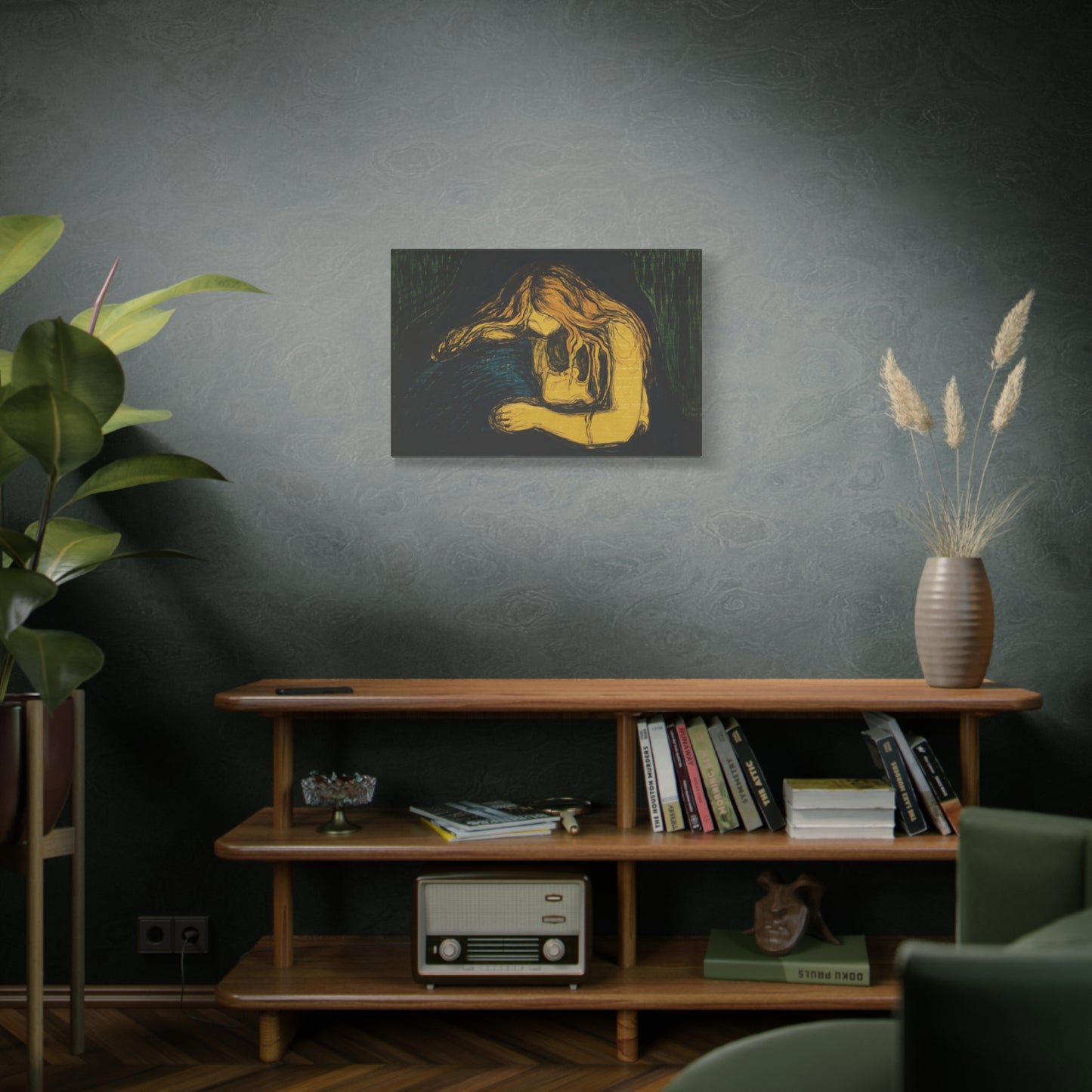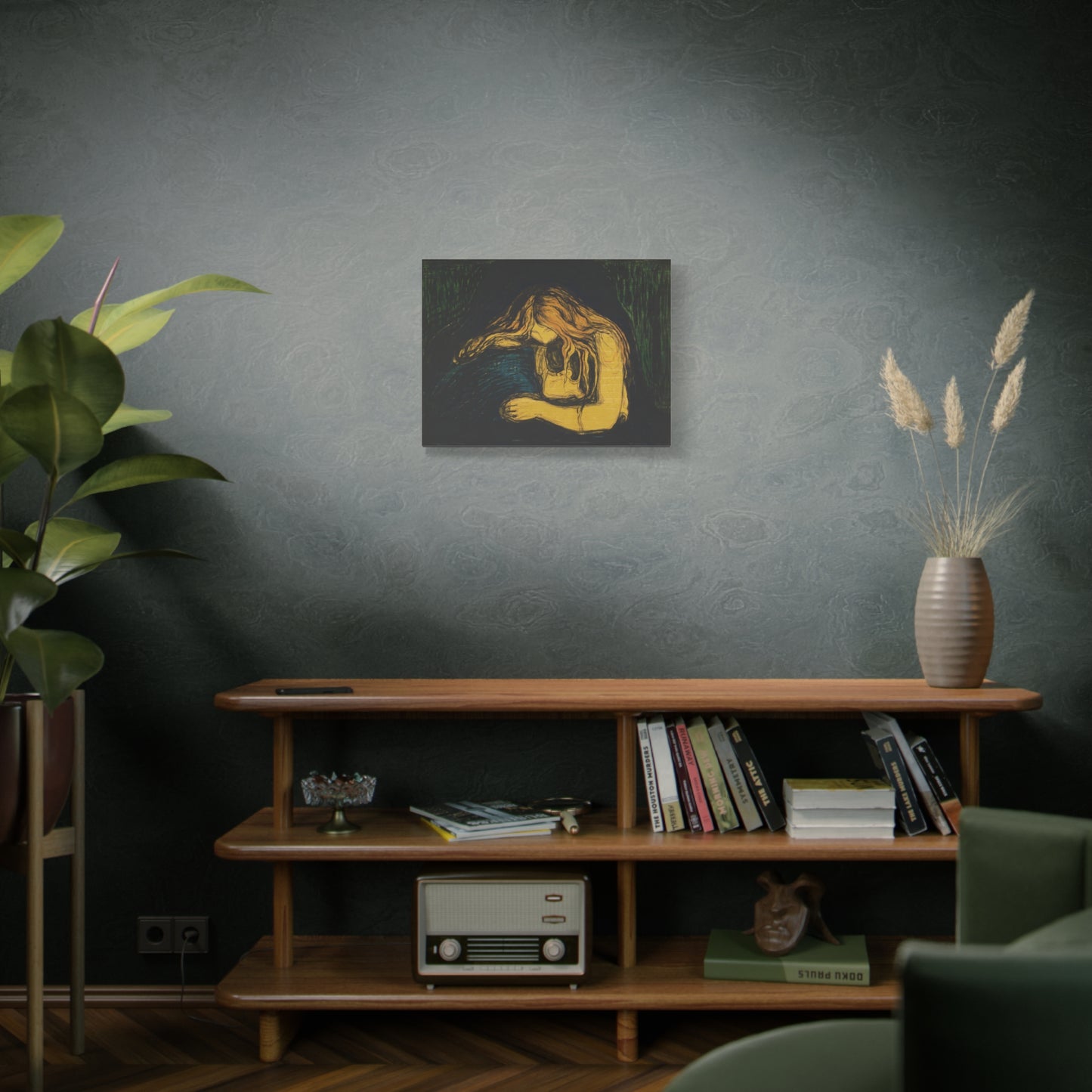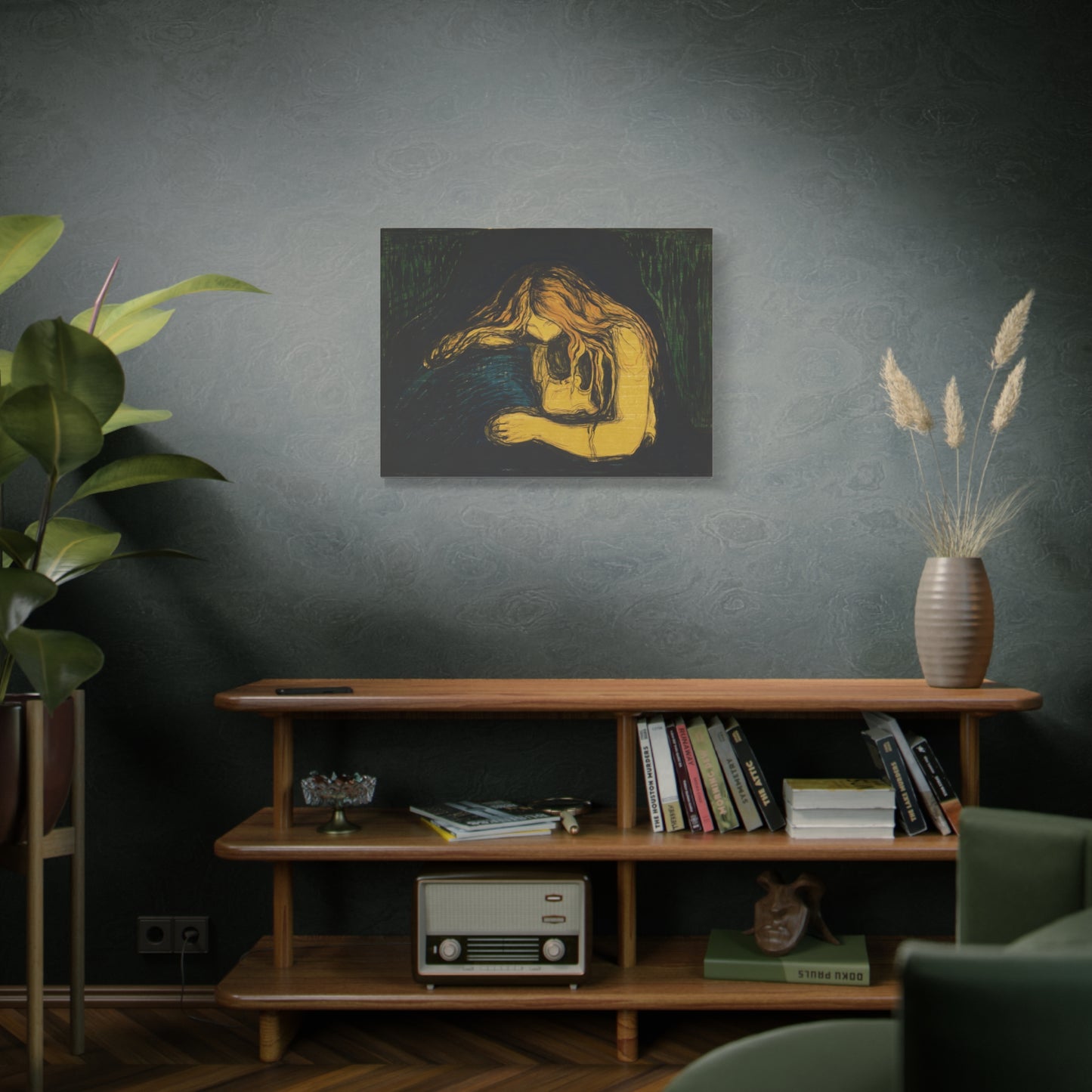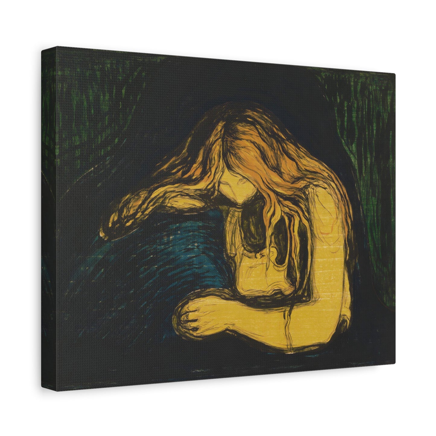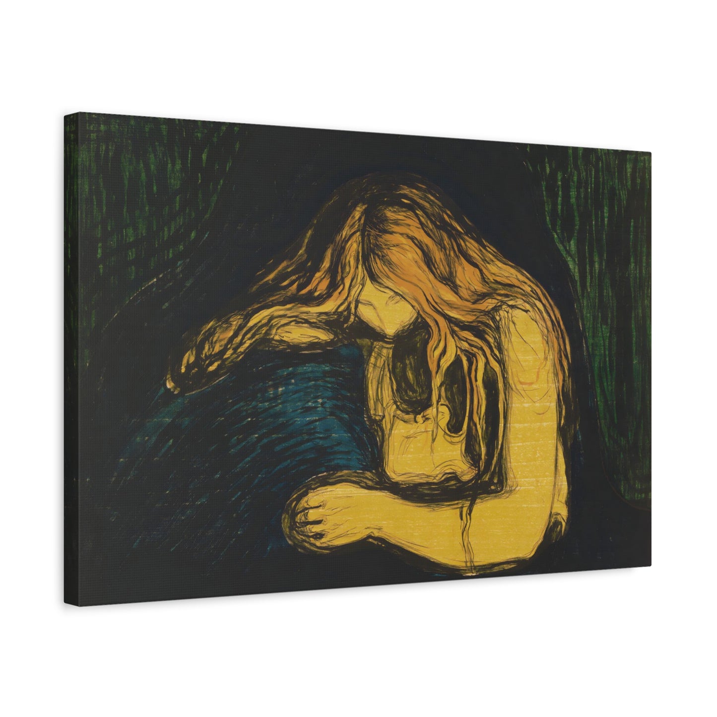 Indulge in the haunting and enigmatic world of Edvard Munch's Vampyr II, a masterpiece created in 1895. This extraordinary artwork captivates with its mysterious atmosphere and unsettling imagery, drawing you into a realm where darkness and allure intertwine. Our meticulously replicated canvas art faithfully captures the essence of Munch's original painting, allowing you to bring this captivating piece into your home. With its evocative symbolism and timeless appeal, Vampyr II adds a touch of intrigue and sophistication to any space. Experience the allure of Munch's mesmerizing masterpiece and let it ignite your imagination with its enigmatic narrative. Transform your home into a haven of artistic intrigue with Vampyr II.