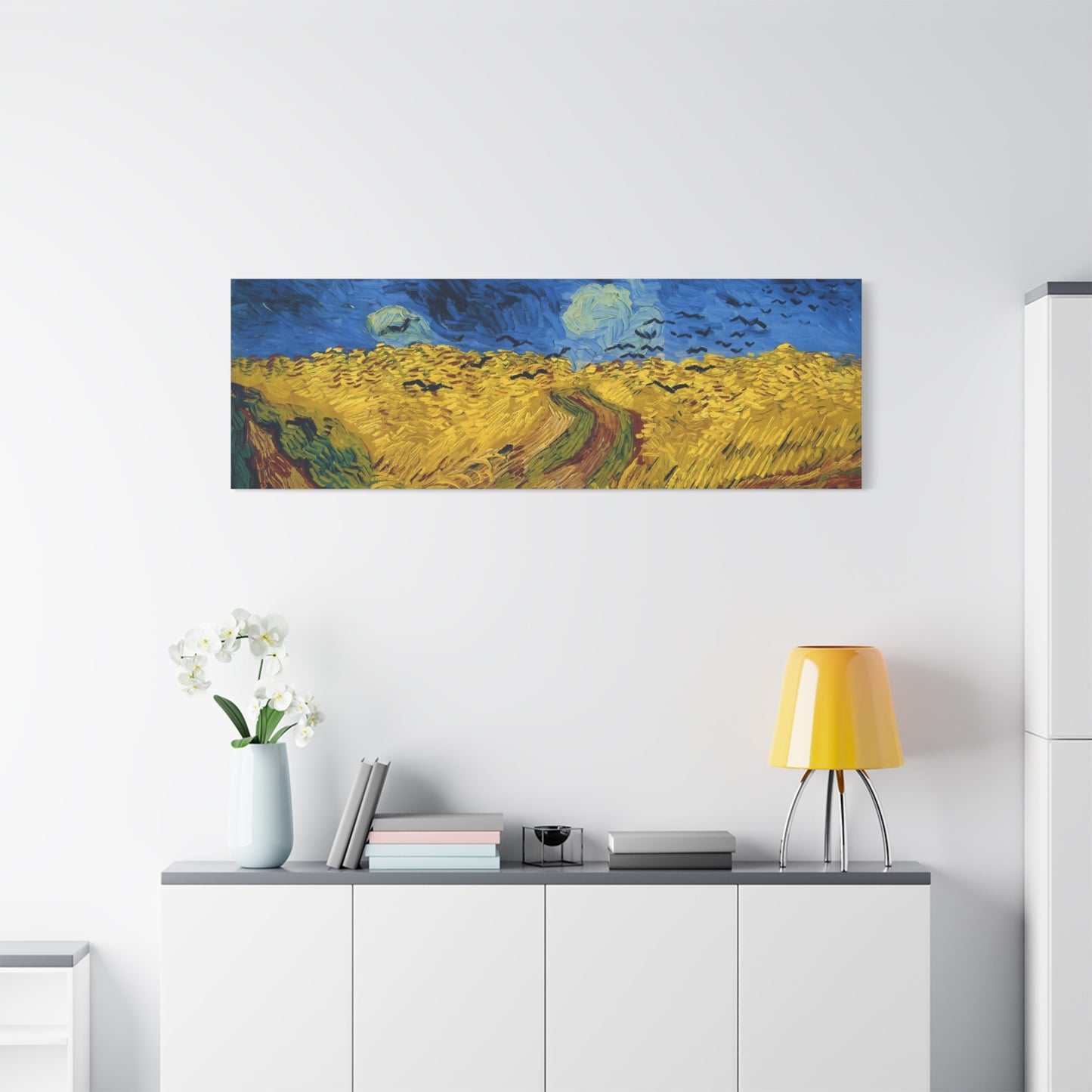 Immerse yourself in the haunting beauty of Vincent van Gogh's Wheatfield with Crows (1890). Created in the final year of his life, this masterpiece captures the essence of Van Gogh's emotional turmoil and artistic brilliance. The dramatic contrast of the swirling sky and golden wheatfield, adorned with ominous crows, evokes a sense of both mystery and melancholy. Owning a canvas art replication of this iconic artwork allows you to bring the profound depth and raw emotion of Wheatfield with Crows into your home. With its timeless appeal and historical significance, this masterpiece will add a touch of contemplation and artistic grandeur to any space. Experience the power of Van Gogh's inner world and let it ignite your imagination and provoke thought.