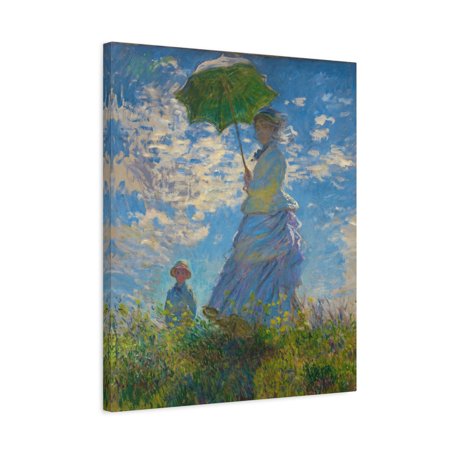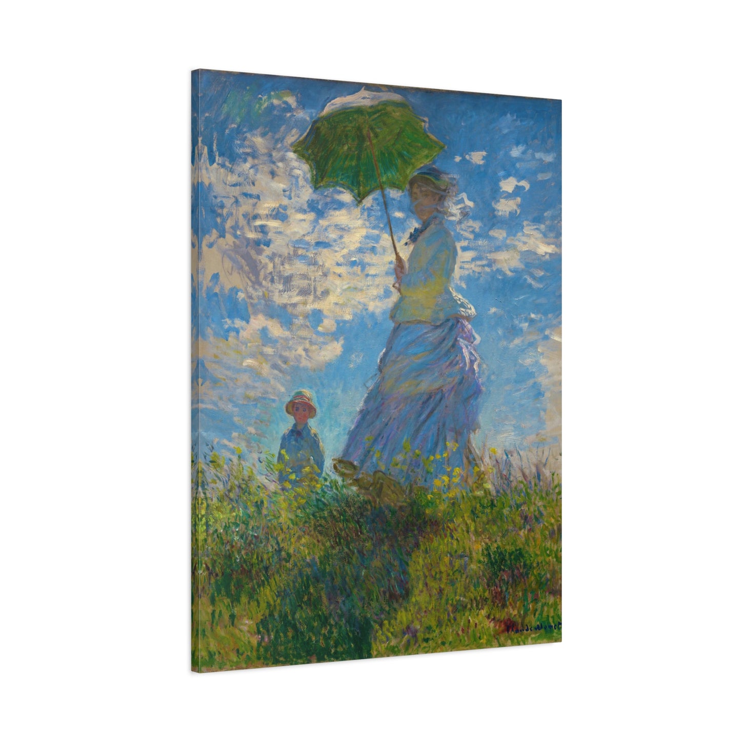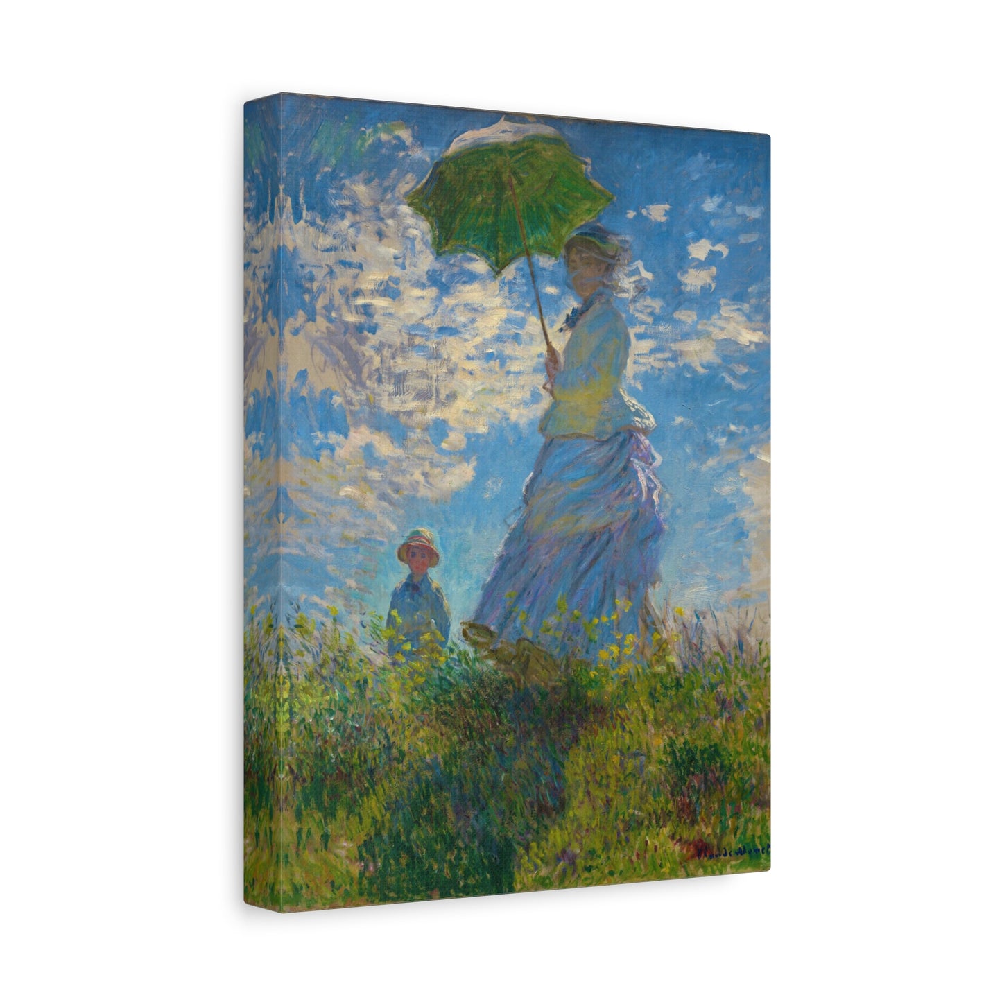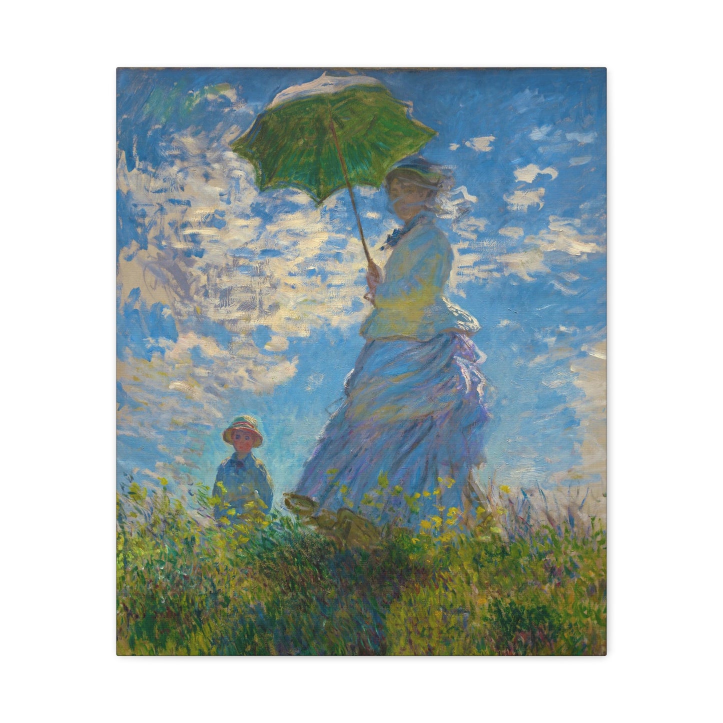 Transport yourself to a sunlit meadow with Claude Monet's Woman with a Parasol. Painted in 1875, this masterpiece captures the essence of a leisurely stroll on a breezy day. The vibrant colors and loose brushstrokes bring the scene to life, as the woman elegantly holds her parasol, casting a beautiful play of light and shadow. Imagine the gentle rustling of the grass and the warmth of the sun on your skin as you gaze upon this enchanting artwork. With a replica of Woman with a Parasol adorning your home, you infuse it with a sense of grace, serenity, and a touch of Impressionist magic. Embrace the joy of Monet's world and let this captivating artwork become the centerpiece of your space.