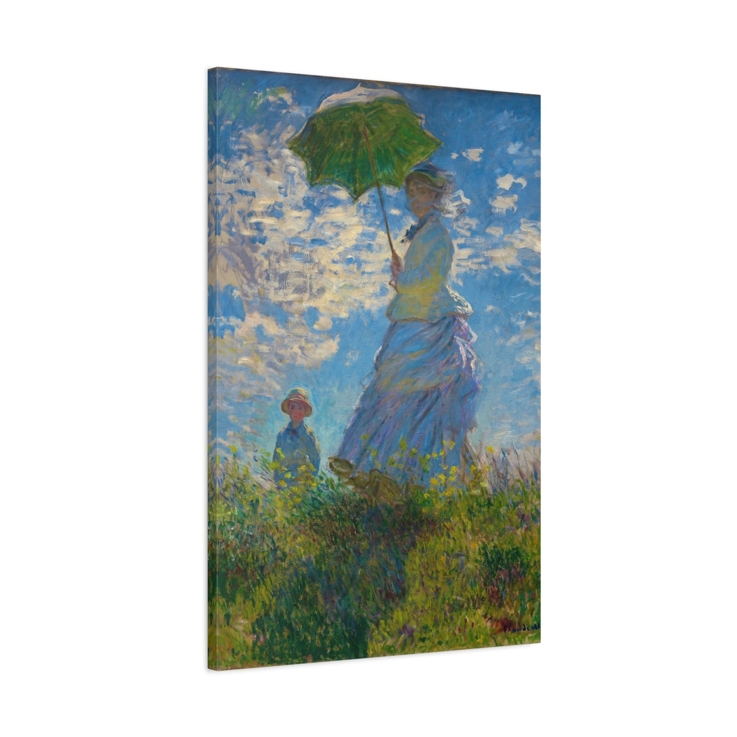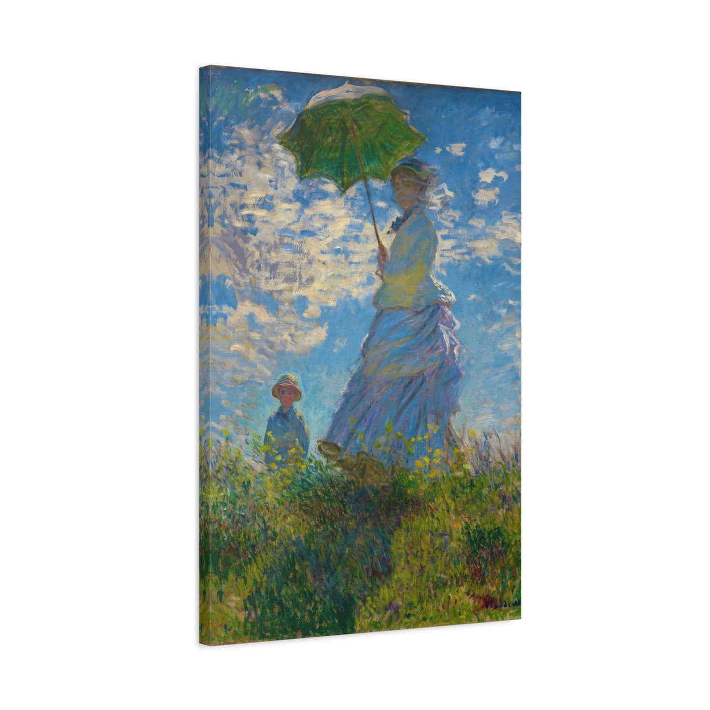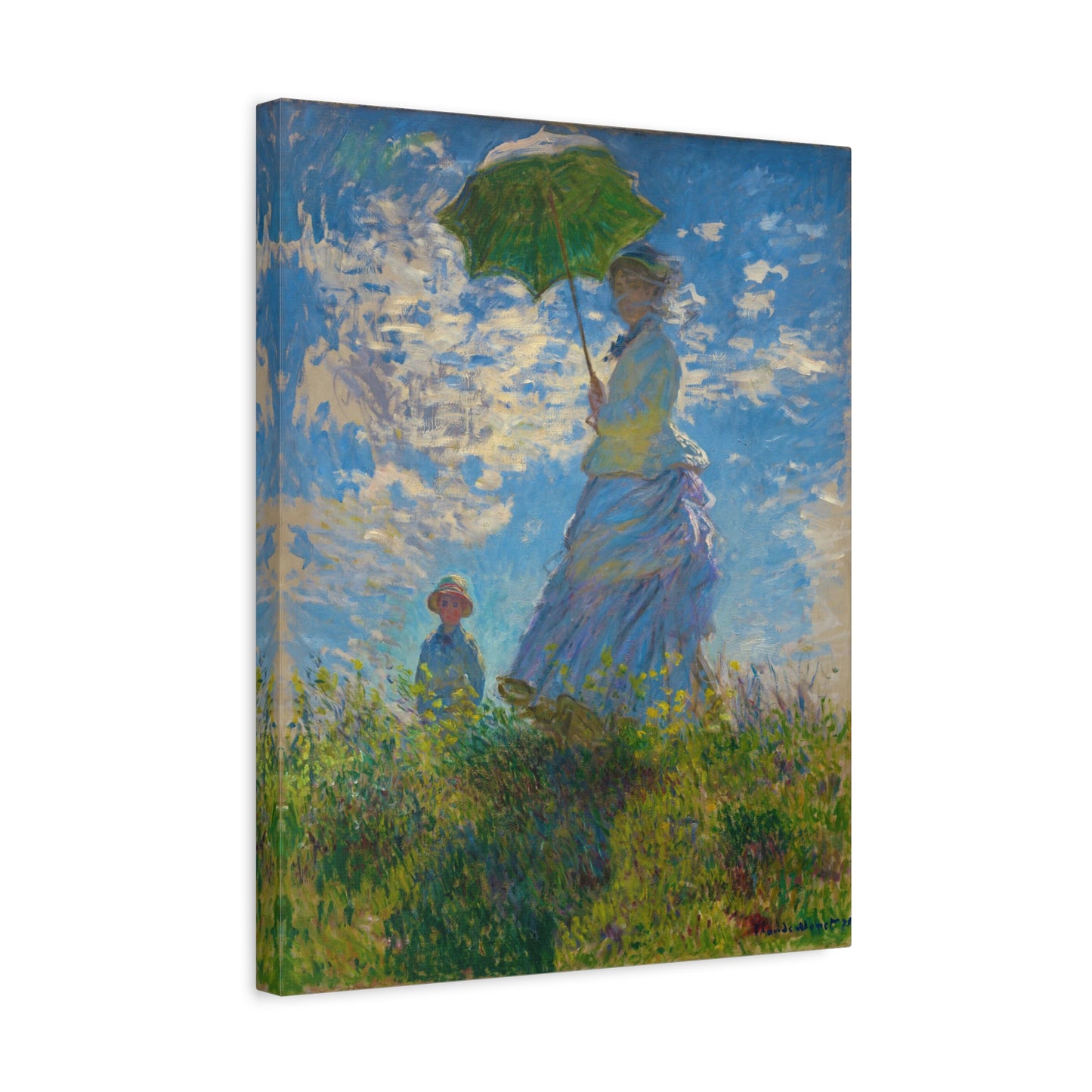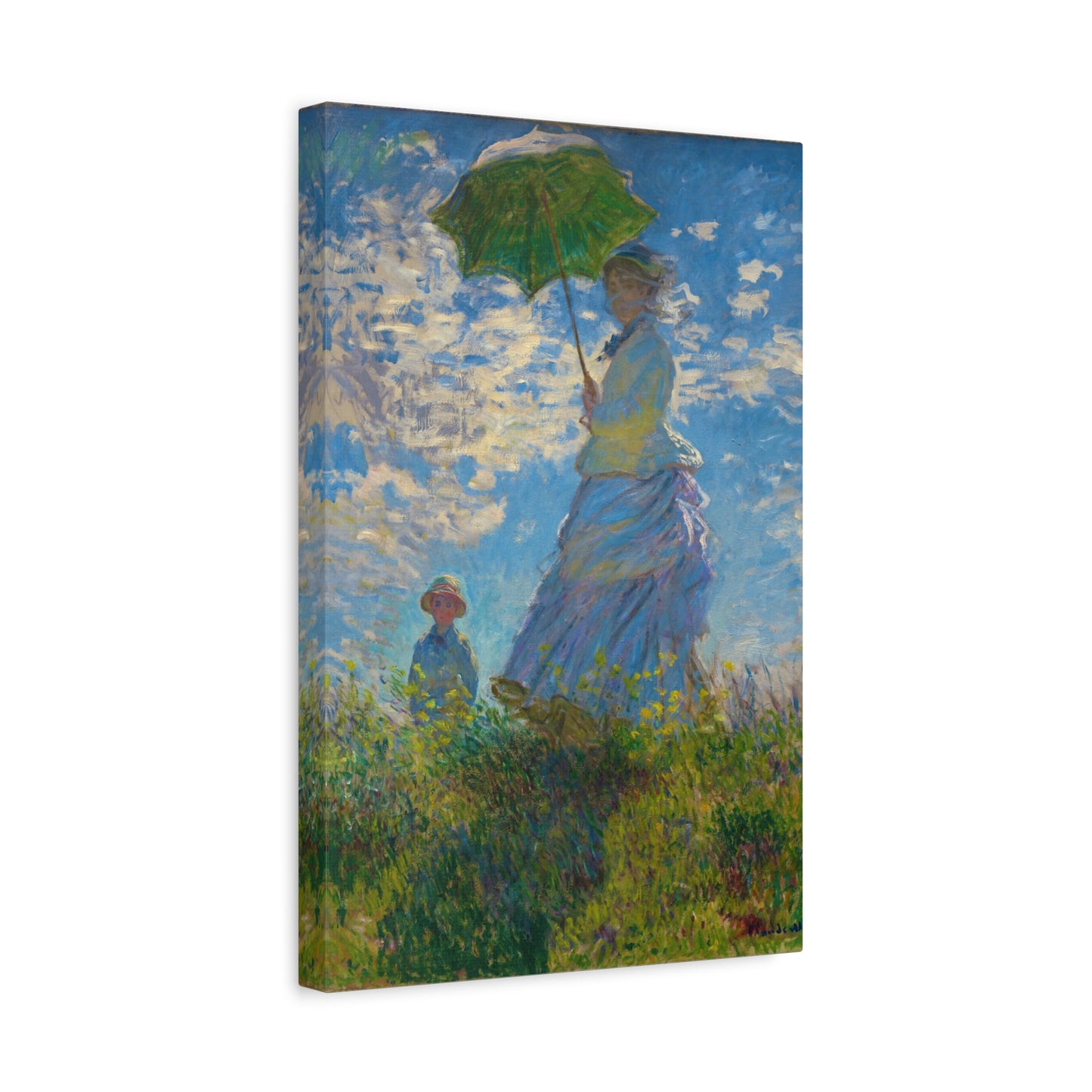 Transport yourself to a sunlit meadow with Claude Monet's Woman with a Parasol. Painted in 1875, this masterpiece captures the essence of a leisurely stroll on a breezy day. The vibrant colors and loose brushstrokes bring the scene to life, as the woman elegantly holds her parasol, casting a beautiful play of light and shadow. Imagine the gentle rustling of the grass and the warmth of the sun on your skin as you gaze upon this enchanting artwork. With a replica of Woman with a Parasol adorning your home, you infuse it with a sense of grace, serenity, and a touch of Impressionist magic. Embrace the joy of Monet's world and let this captivating artwork become the centerpiece of your space.