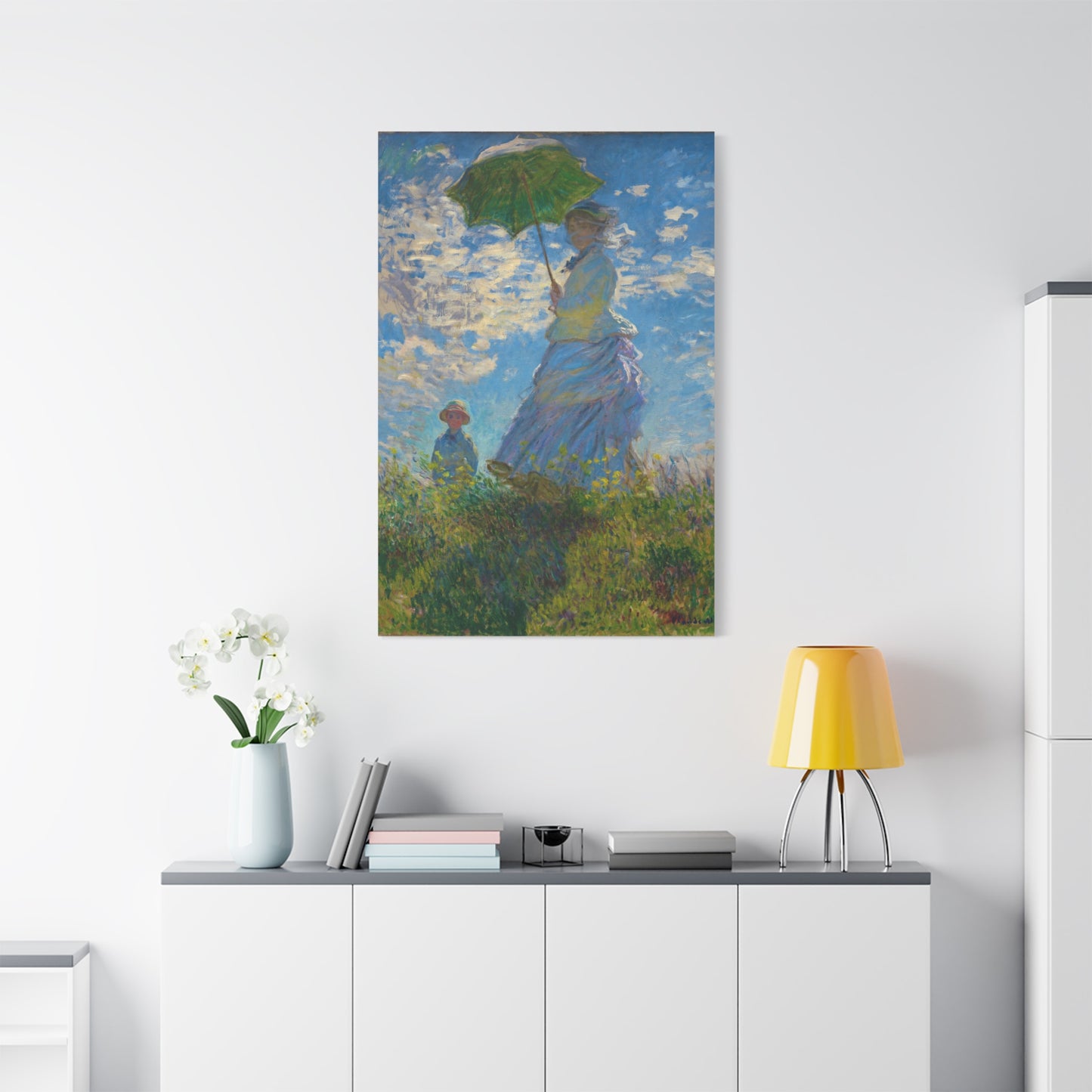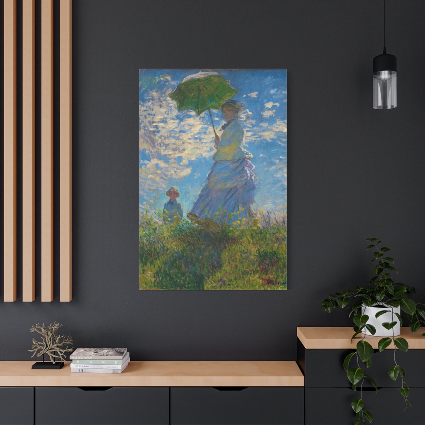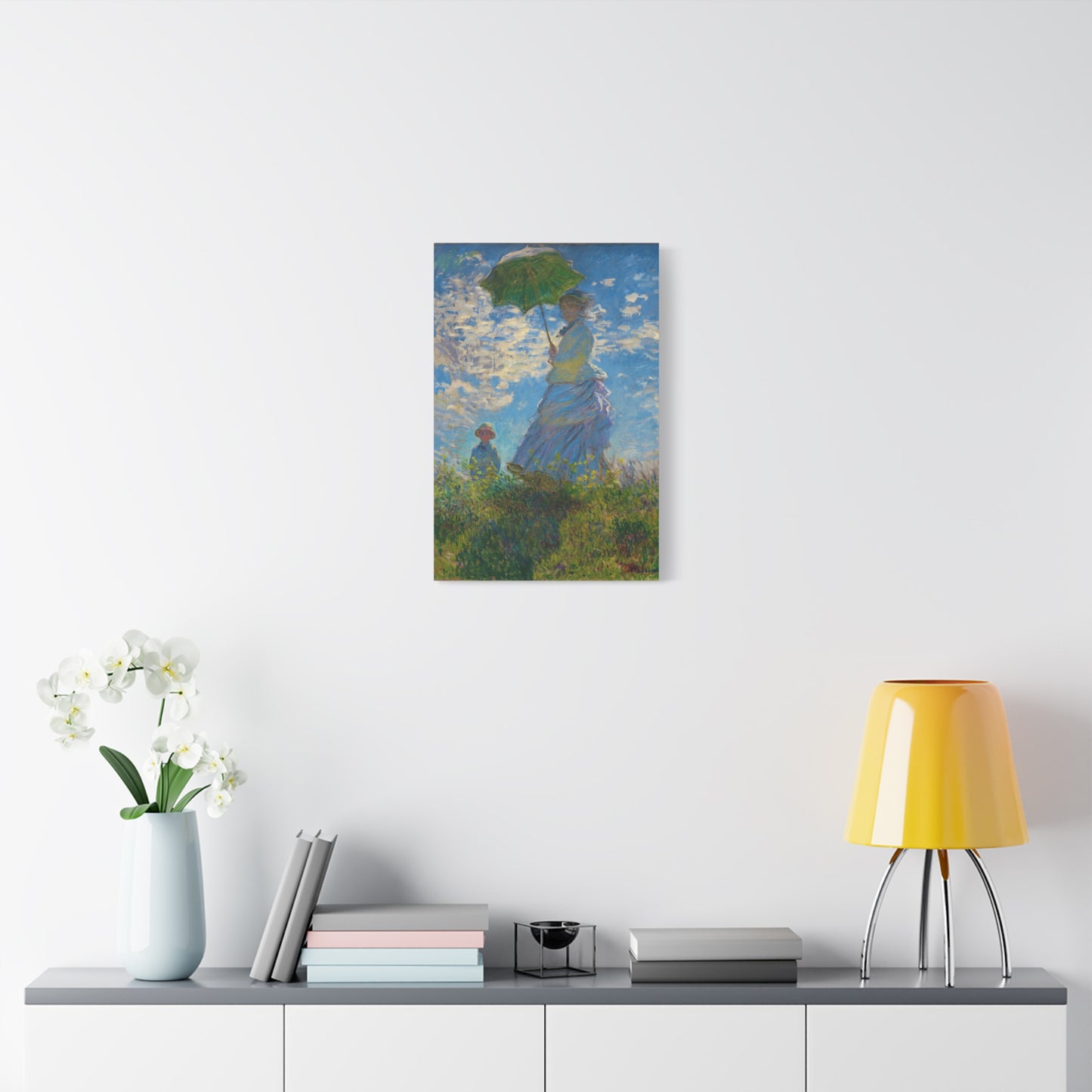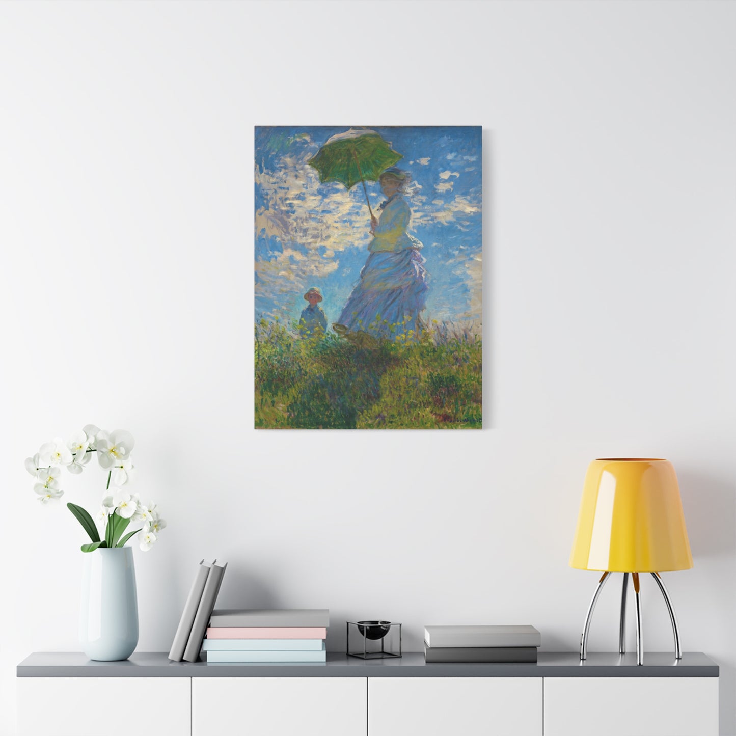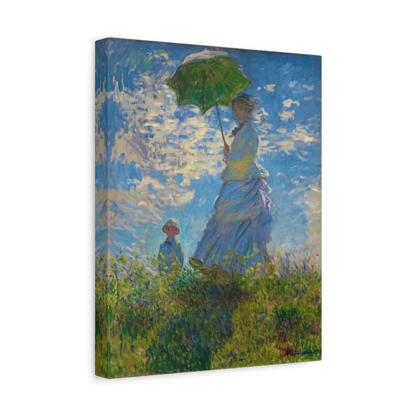Transport yourself to a sunlit meadow with Claude Monet's Woman with a Parasol. Painted in 1875, this masterpiece captures the essence of a leisurely stroll on a breezy day. The vibrant colors and loose brushstrokes bring the scene to life, as the woman elegantly holds her parasol, casting a beautiful play of light and shadow. Imagine the gentle rustling of the grass and the warmth of the sun on your skin as you gaze upon this enchanting artwork. With a replica of Woman with a Parasol adorning your home, you infuse it with a sense of grace, serenity, and a touch of Impressionist magic. Embrace the joy of Monet's world and let this captivating artwork become the centerpiece of your space.