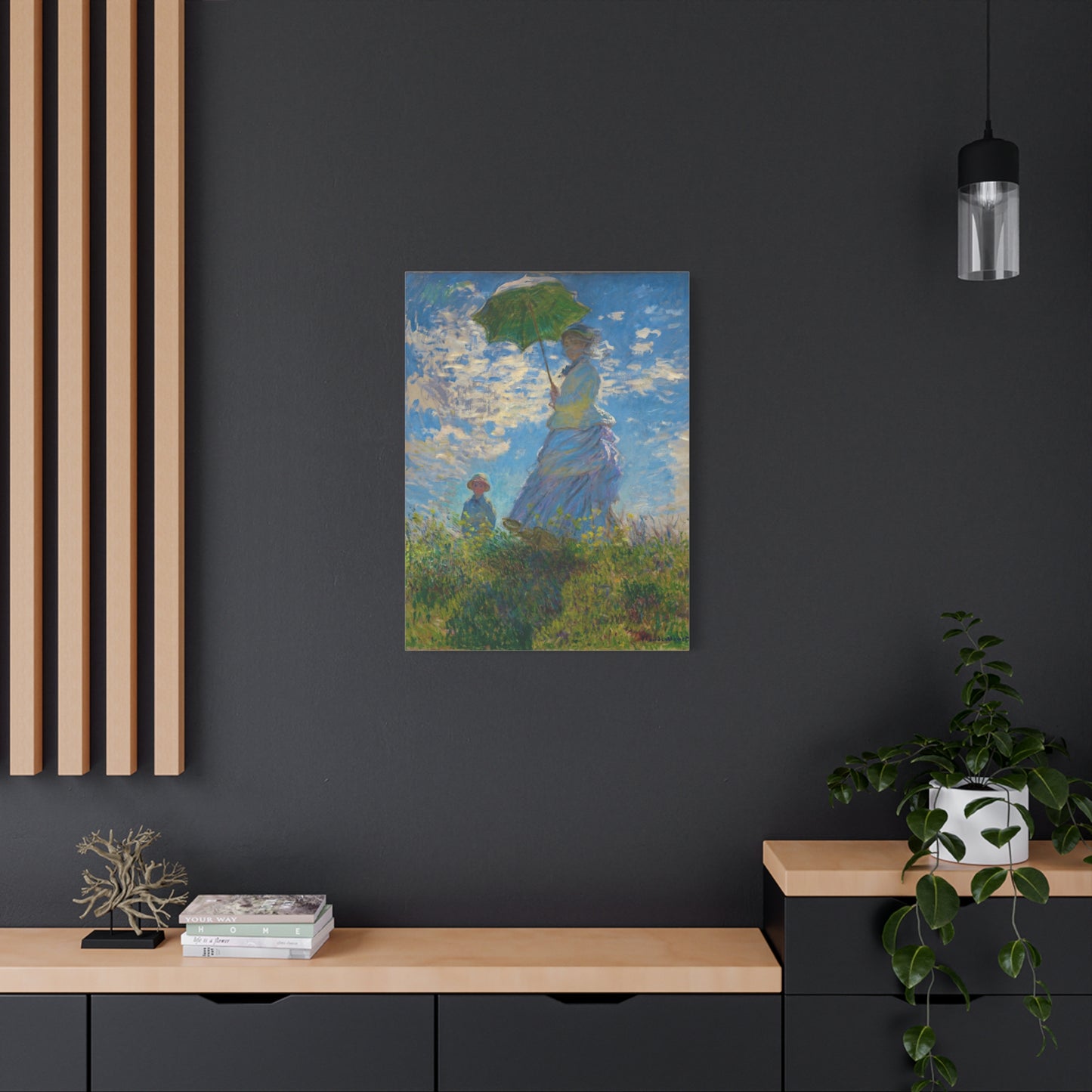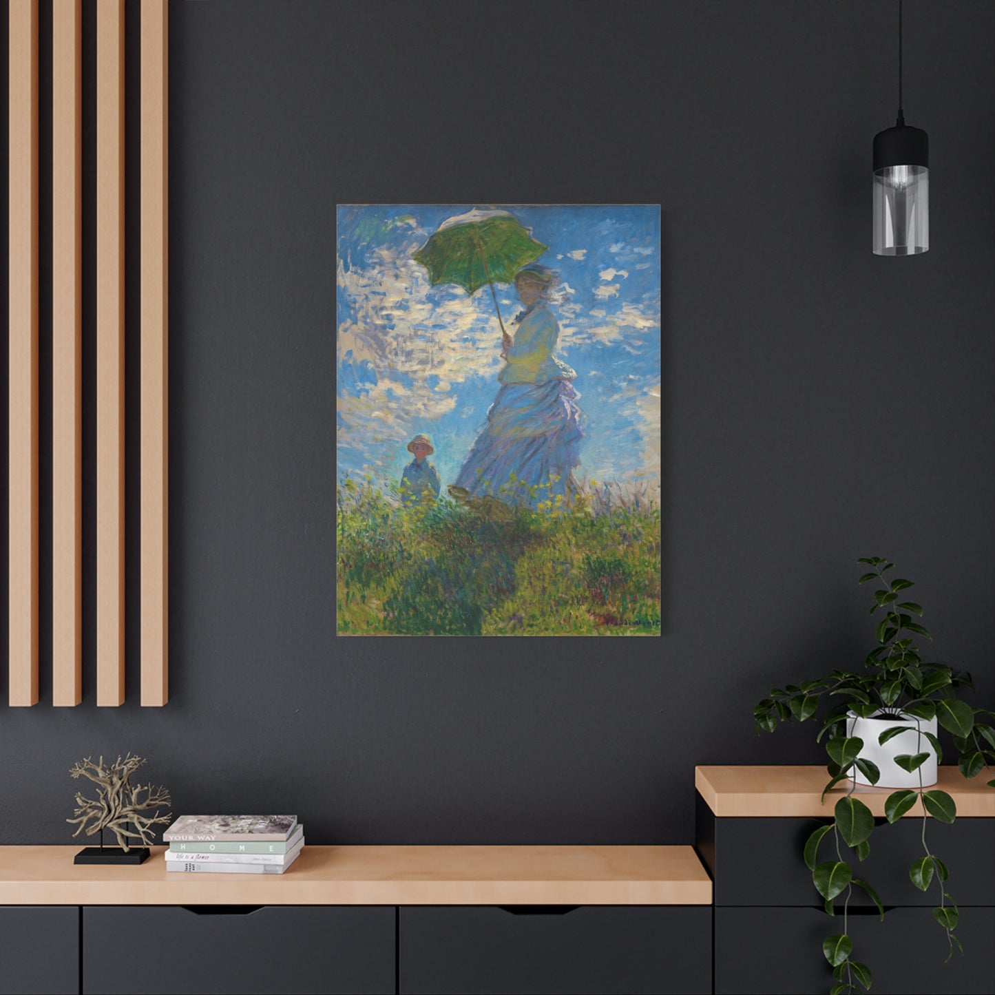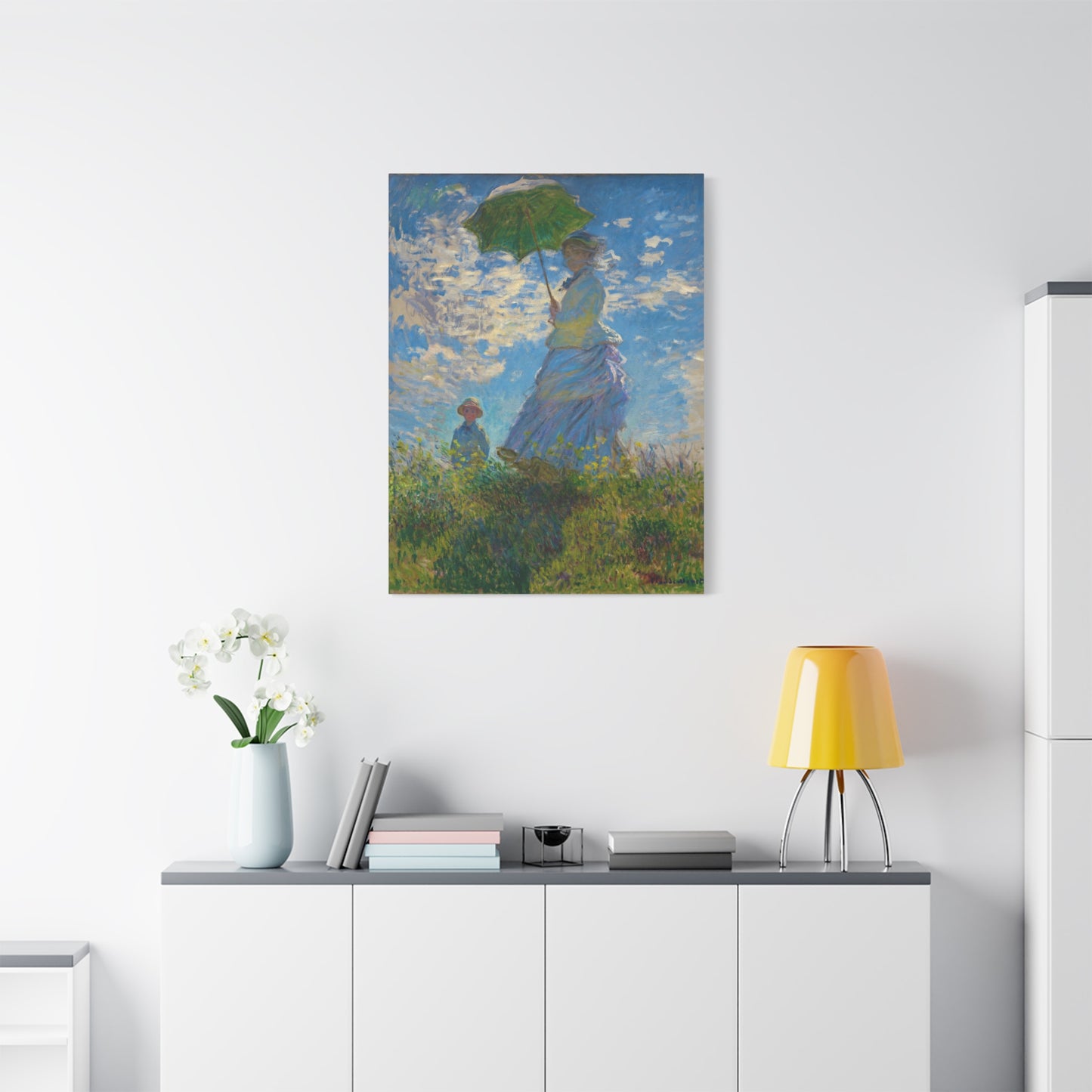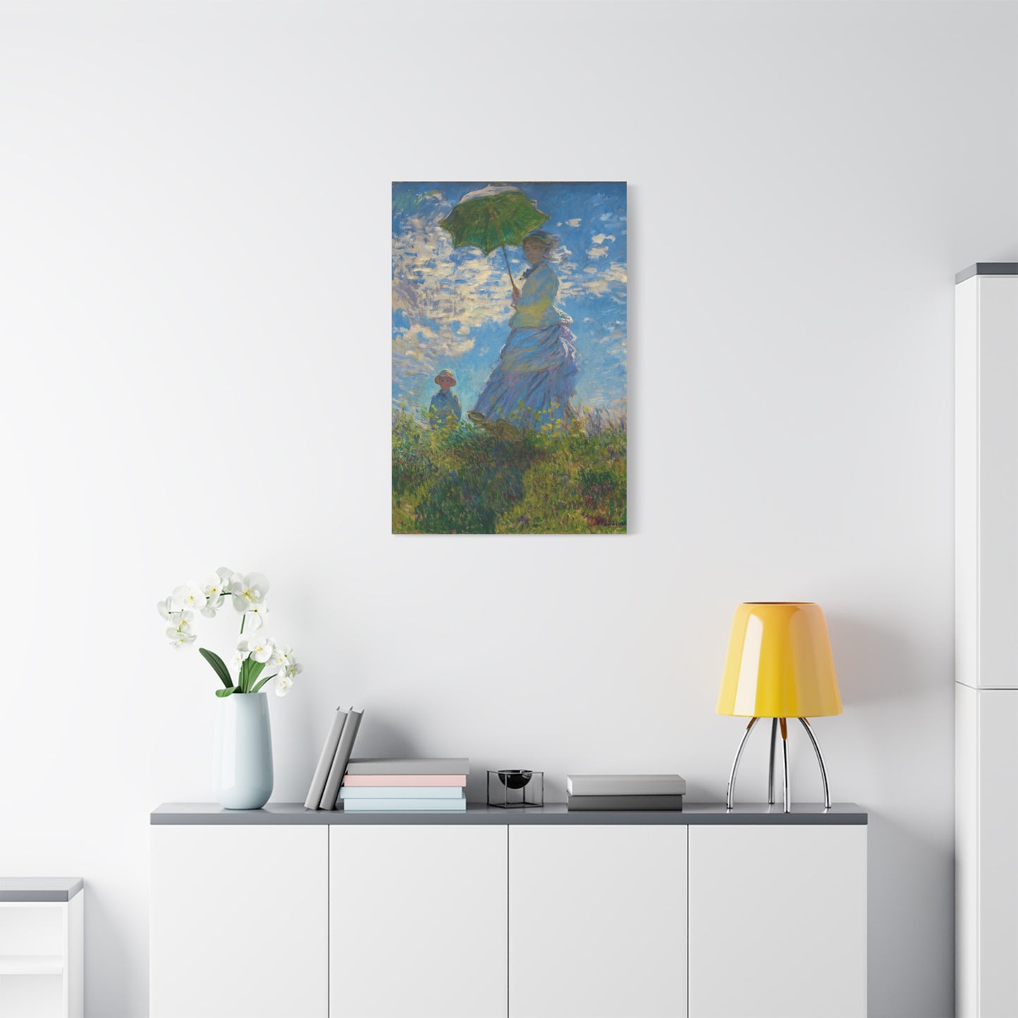 Transport yourself to a sunlit meadow with Claude Monet's Woman with a Parasol. Painted in 1875, this masterpiece captures the essence of a leisurely stroll on a breezy day. The vibrant colors and loose brushstrokes bring the scene to life, as the woman elegantly holds her parasol, casting a beautiful play of light and shadow. Imagine the gentle rustling of the grass and the warmth of the sun on your skin as you gaze upon this enchanting artwork. With a replica of Woman with a Parasol adorning your home, you infuse it with a sense of grace, serenity, and a touch of Impressionist magic. Embrace the joy of Monet's world and let this captivating artwork become the centerpiece of your space.