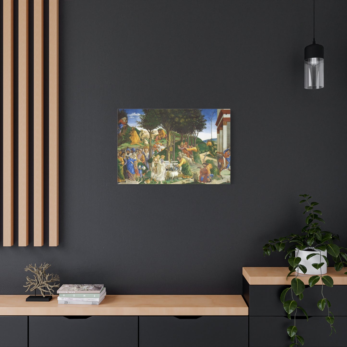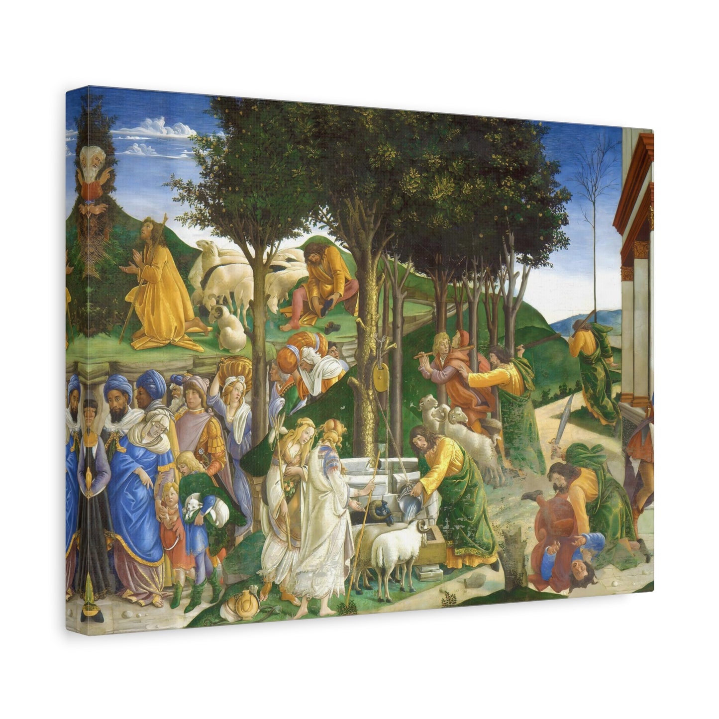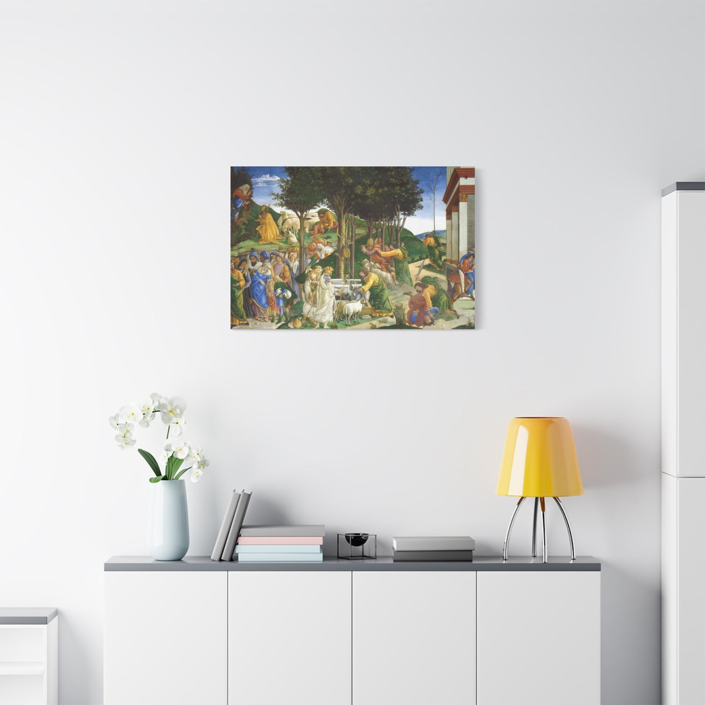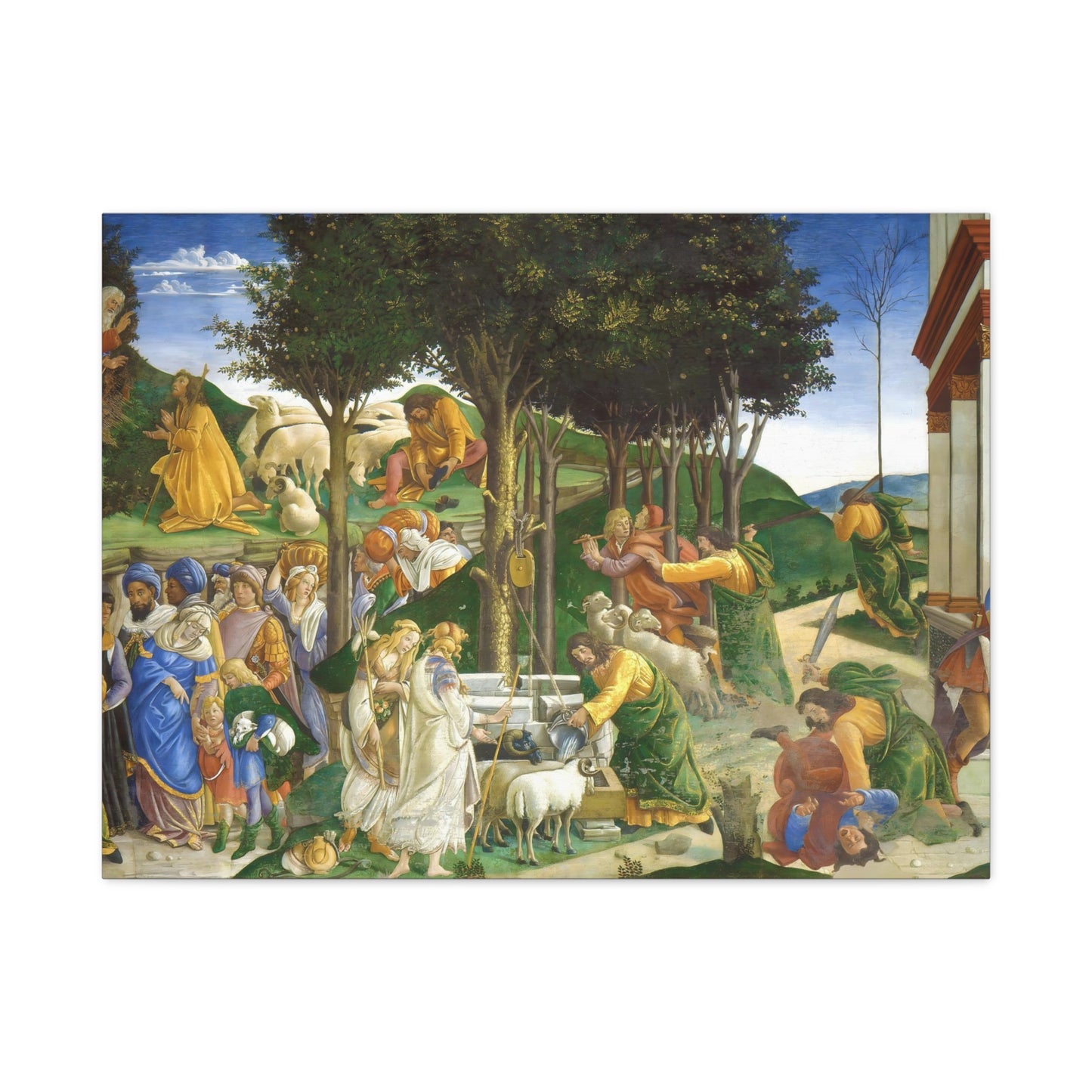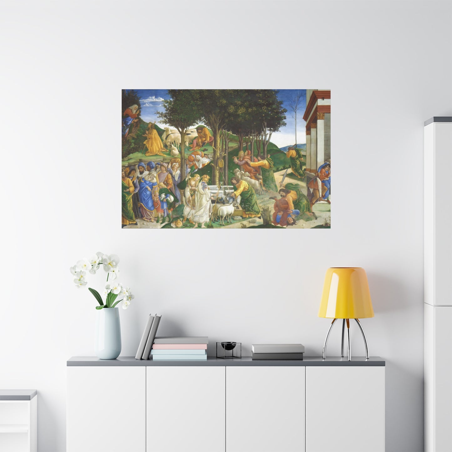 Immerse yourself in the captivating world of Sandro Botticelli's Youth of Moses, a stunning artwork created in the year 1482. This remarkable canvas art replication is a testament to Botticelli's mastery, showcasing his ability to capture the essence of a biblical narrative. With its rich colors, intricate details, and profound symbolism, this artwork will bring a touch of spiritual and historical significance to your home. Let the story of Moses's youth unfold before your eyes, as Botticelli's brushstrokes breathe life into the scene. Owning this masterpiece means owning a piece of art history, a visual treasure that will elevate the ambiance of your space and ignite conversations. Experience the power and beauty of Botticelli's work in your own home and let its timeless allure inspire and captivate you and your guests.