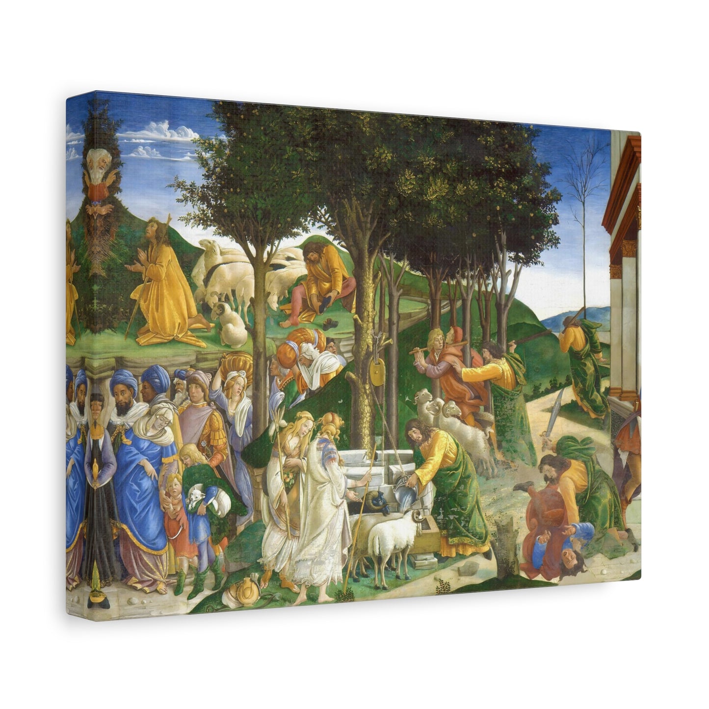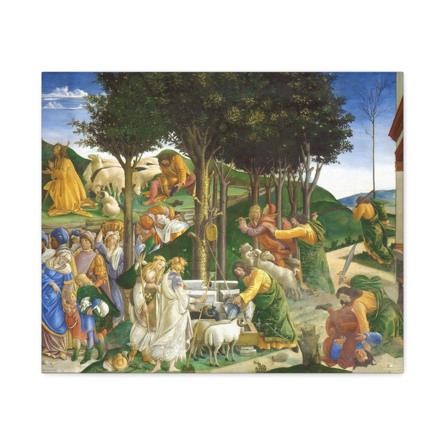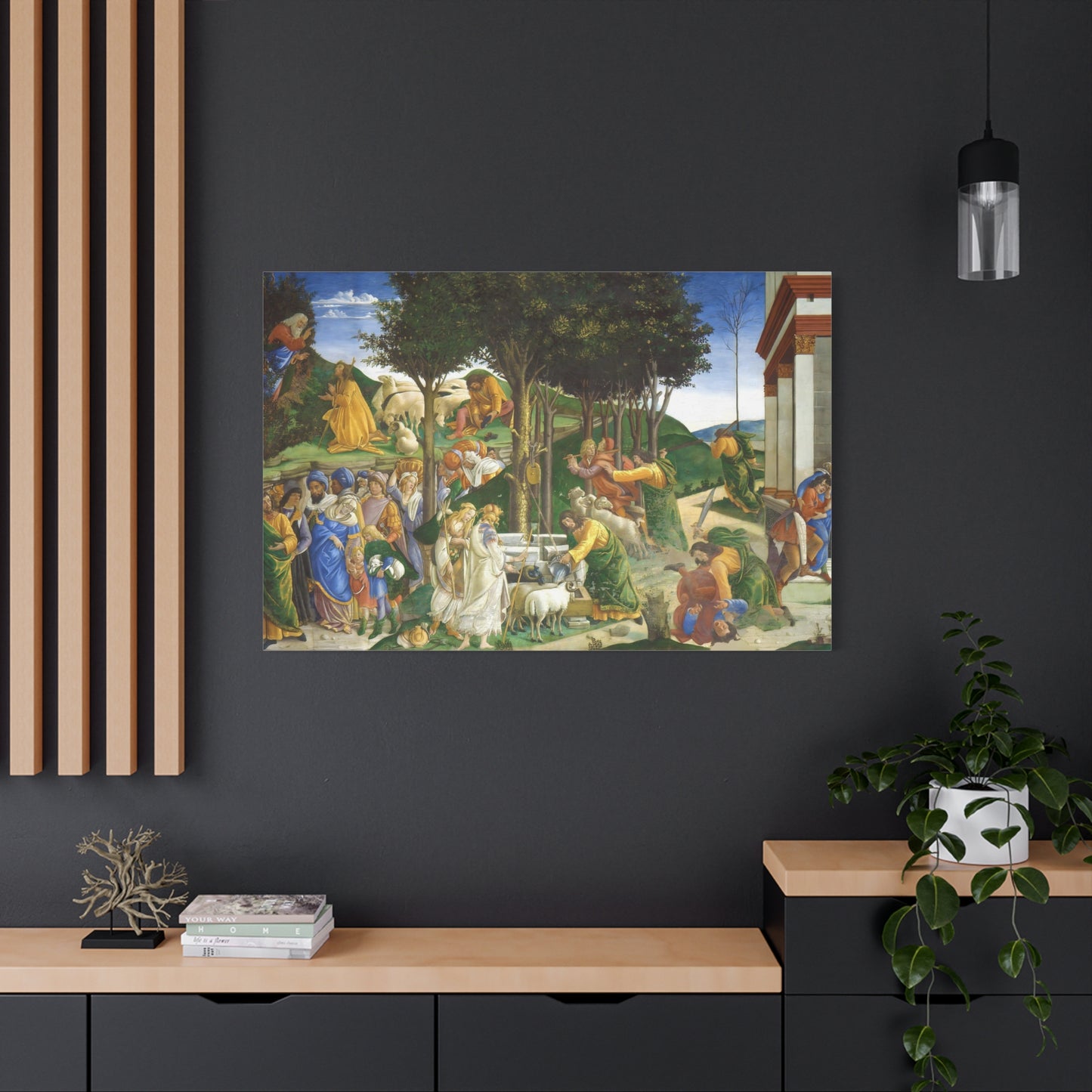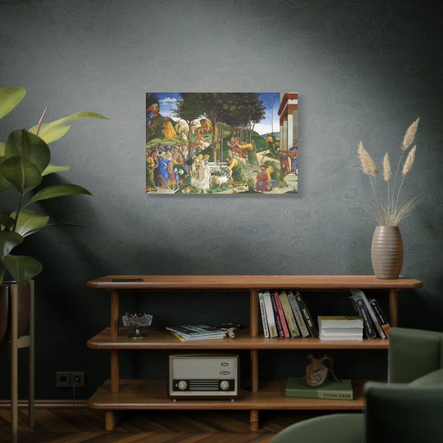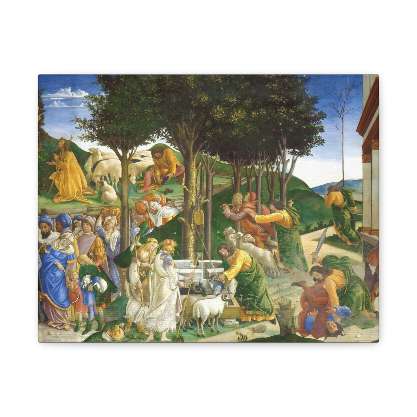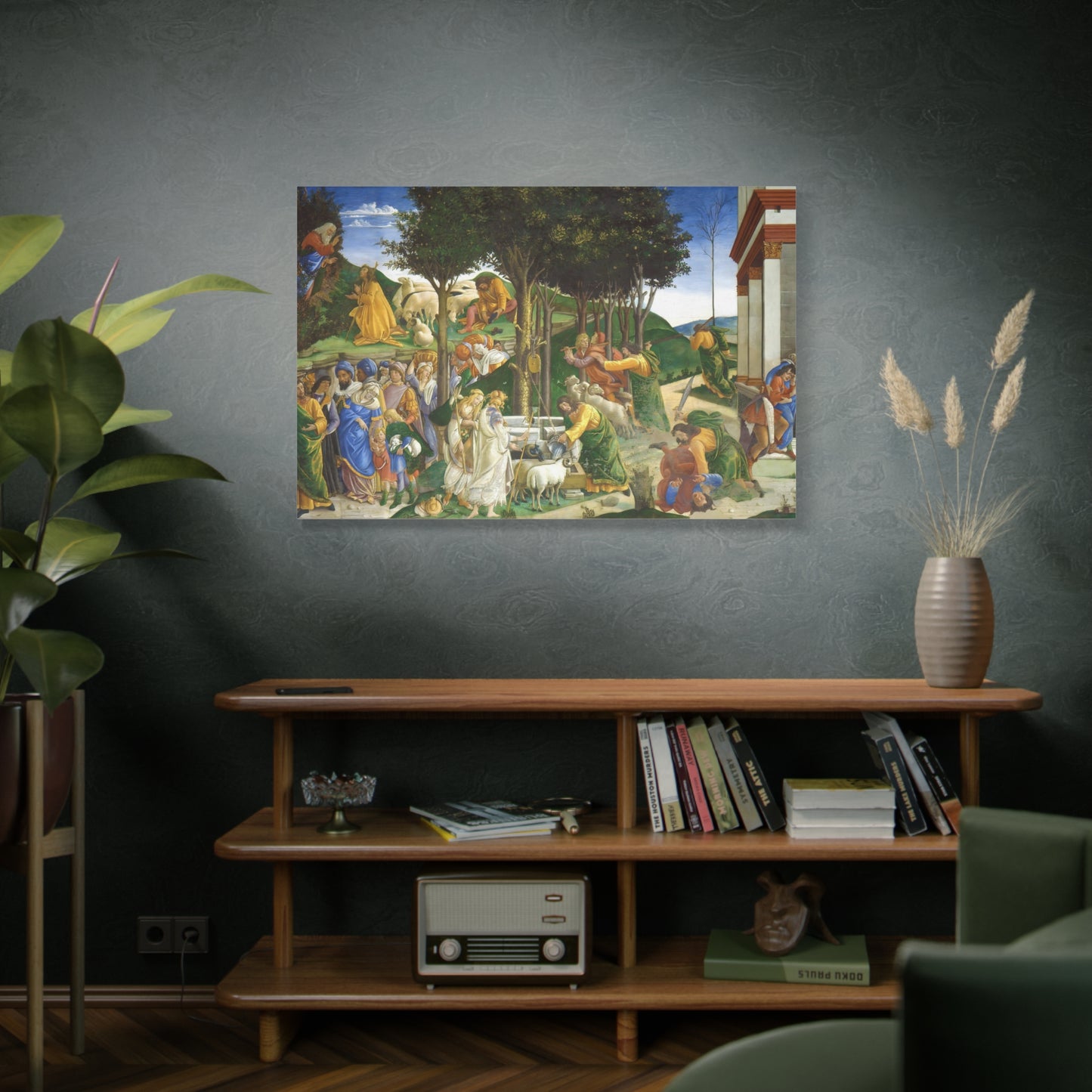 Immerse yourself in the captivating world of Sandro Botticelli's Youth of Moses, a stunning artwork created in the year 1482. This remarkable canvas art replication is a testament to Botticelli's mastery, showcasing his ability to capture the essence of a biblical narrative. With its rich colors, intricate details, and profound symbolism, this artwork will bring a touch of spiritual and historical significance to your home. Let the story of Moses's youth unfold before your eyes, as Botticelli's brushstrokes breathe life into the scene. Owning this masterpiece means owning a piece of art history, a visual treasure that will elevate the ambiance of your space and ignite conversations. Experience the power and beauty of Botticelli's work in your own home and let its timeless allure inspire and captivate you and your guests.