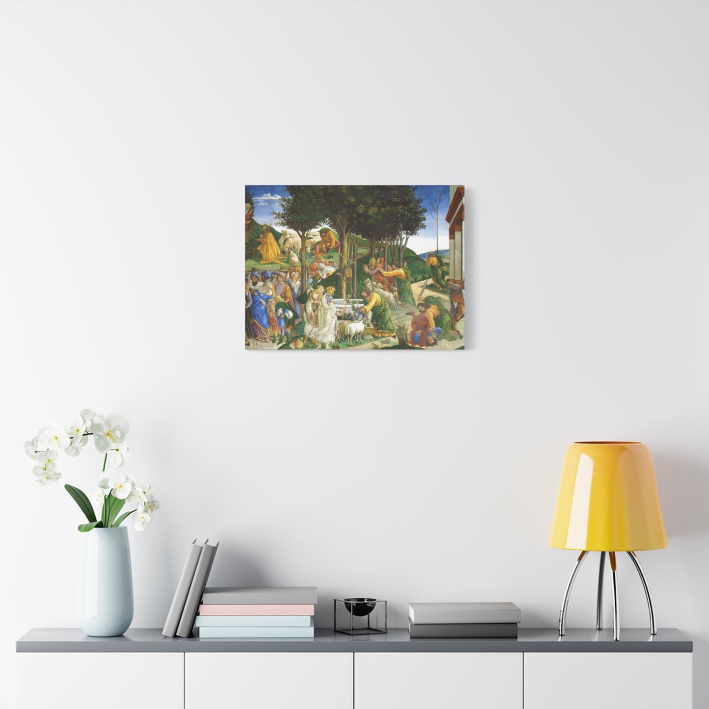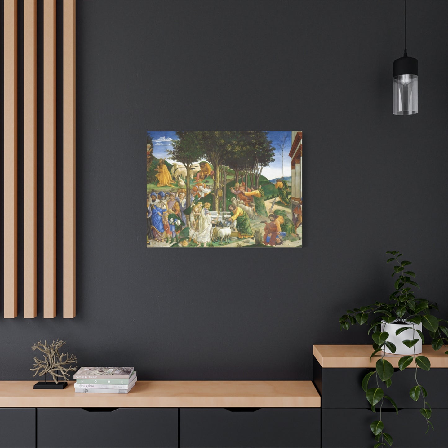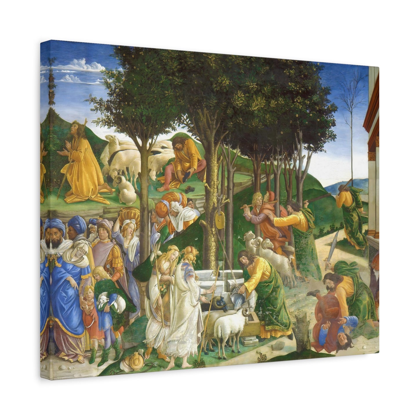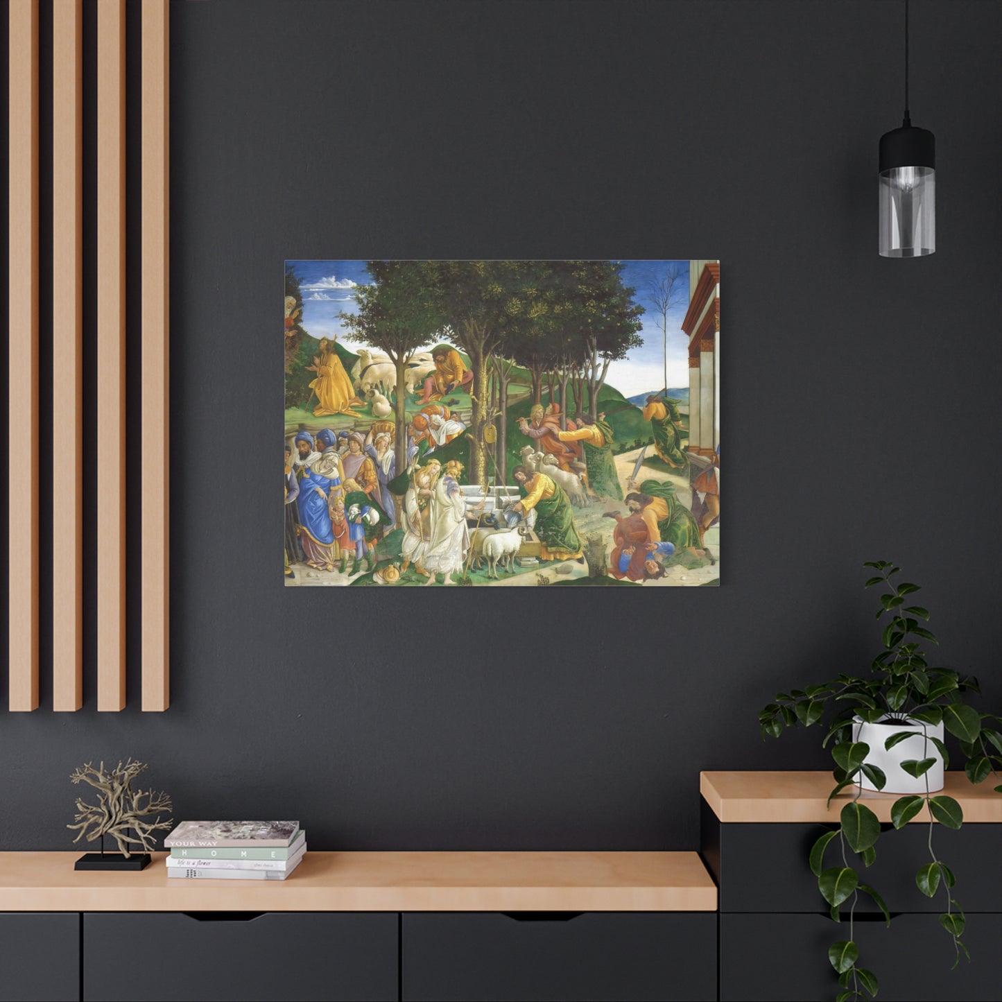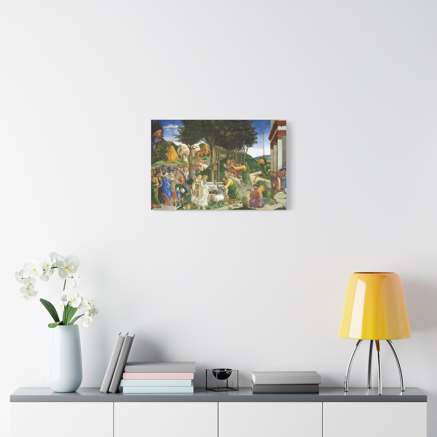 Immerse yourself in the captivating world of Sandro Botticelli's Youth of Moses, a stunning artwork created in the year 1482. This remarkable canvas art replication is a testament to Botticelli's mastery, showcasing his ability to capture the essence of a biblical narrative. With its rich colors, intricate details, and profound symbolism, this artwork will bring a touch of spiritual and historical significance to your home. Let the story of Moses's youth unfold before your eyes, as Botticelli's brushstrokes breathe life into the scene. Owning this masterpiece means owning a piece of art history, a visual treasure that will elevate the ambiance of your space and ignite conversations. Experience the power and beauty of Botticelli's work in your own home and let its timeless allure inspire and captivate you and your guests.