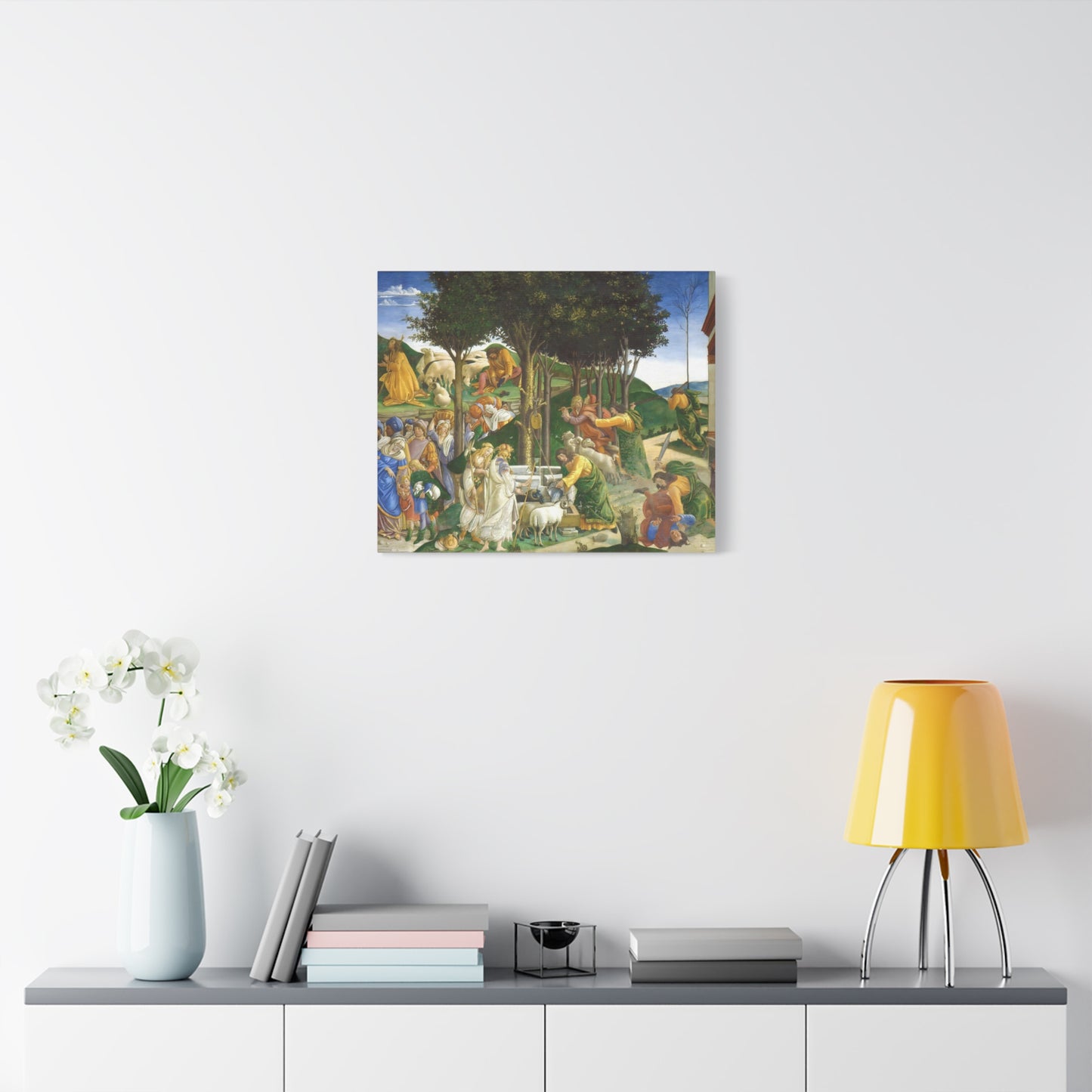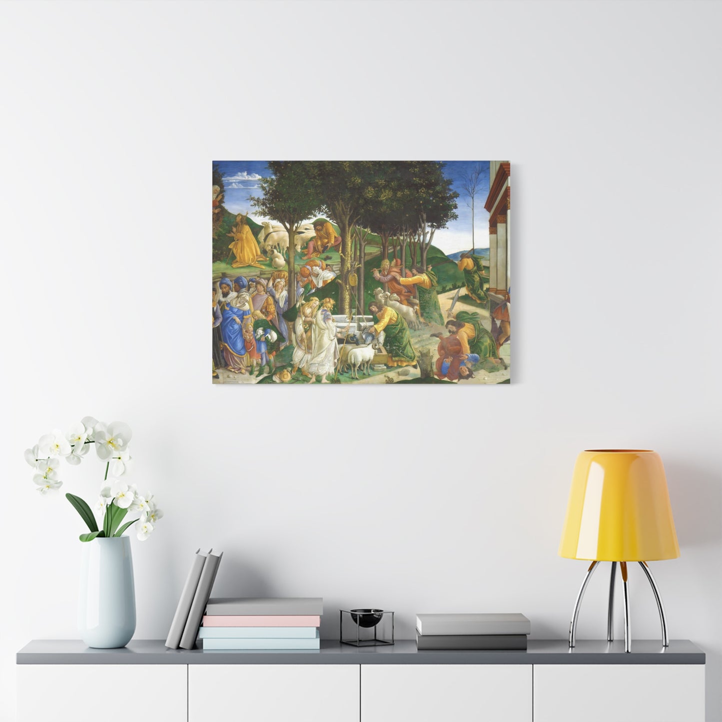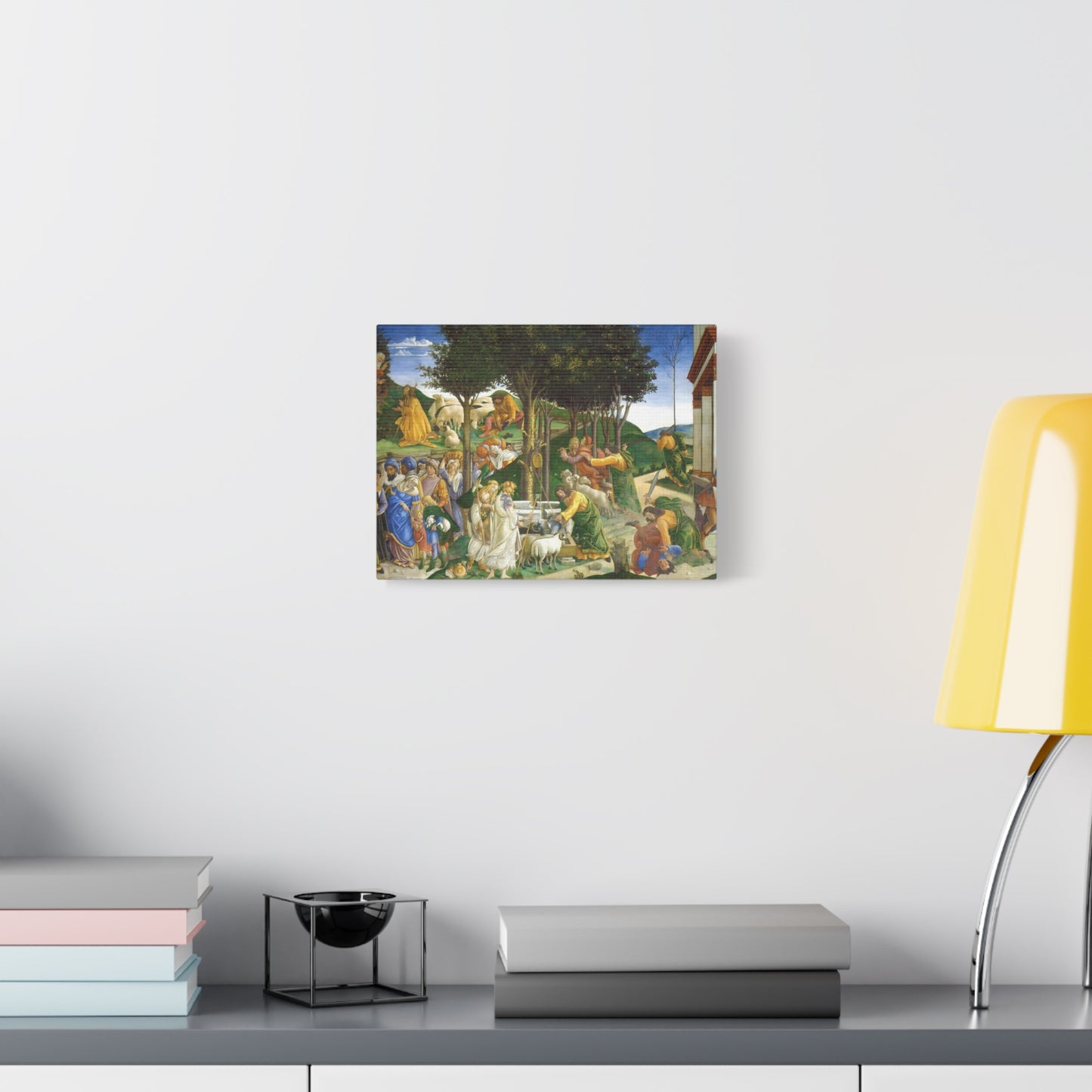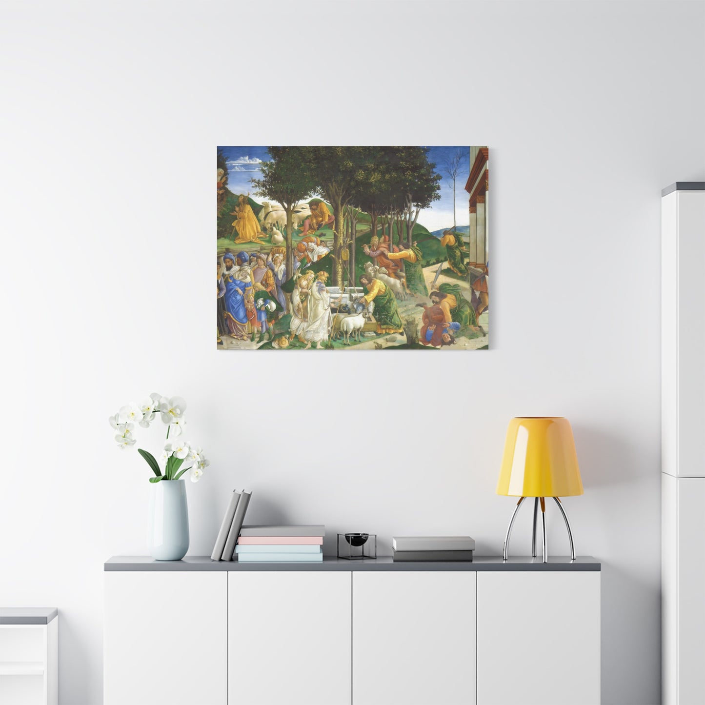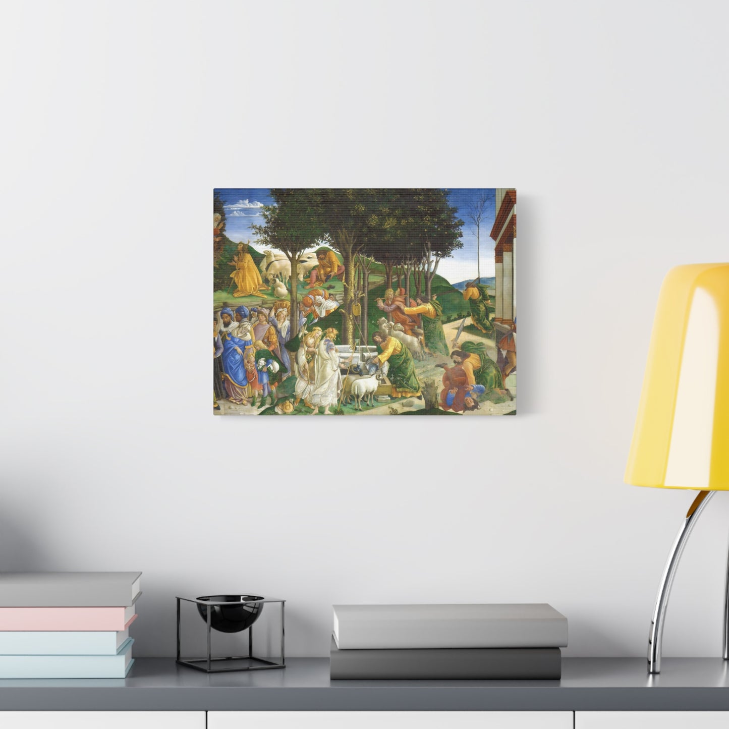 Immerse yourself in the captivating world of Sandro Botticelli's Youth of Moses, a stunning artwork created in the year 1482. This remarkable canvas art replication is a testament to Botticelli's mastery, showcasing his ability to capture the essence of a biblical narrative. With its rich colors, intricate details, and profound symbolism, this artwork will bring a touch of spiritual and historical significance to your home. Let the story of Moses's youth unfold before your eyes, as Botticelli's brushstrokes breathe life into the scene. Owning this masterpiece means owning a piece of art history, a visual treasure that will elevate the ambiance of your space and ignite conversations. Experience the power and beauty of Botticelli's work in your own home and let its timeless allure inspire and captivate you and your guests.
